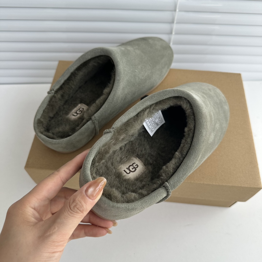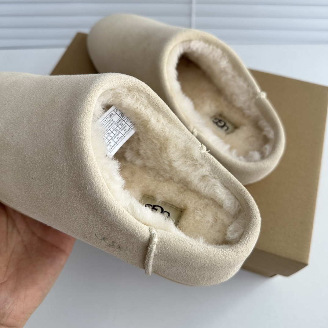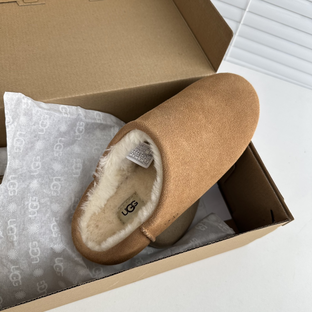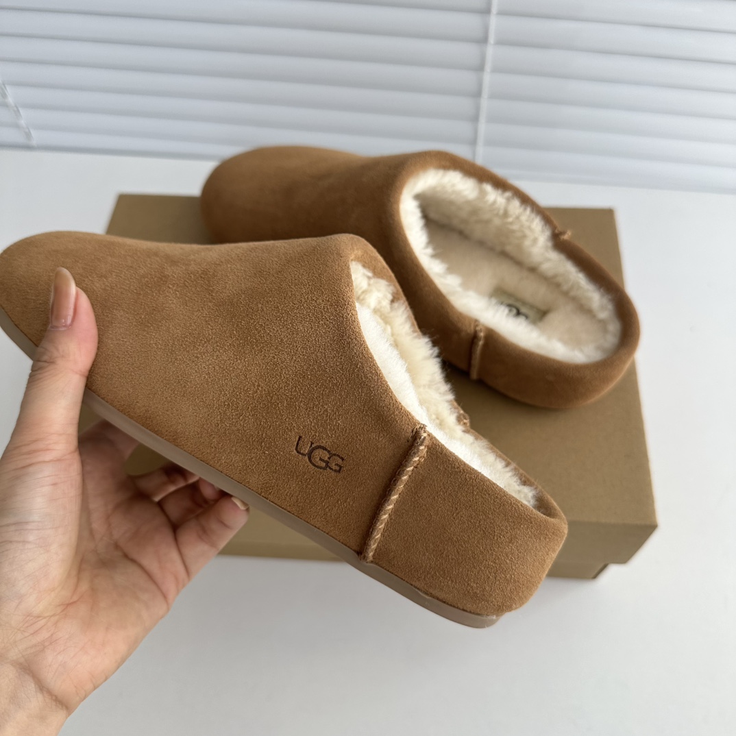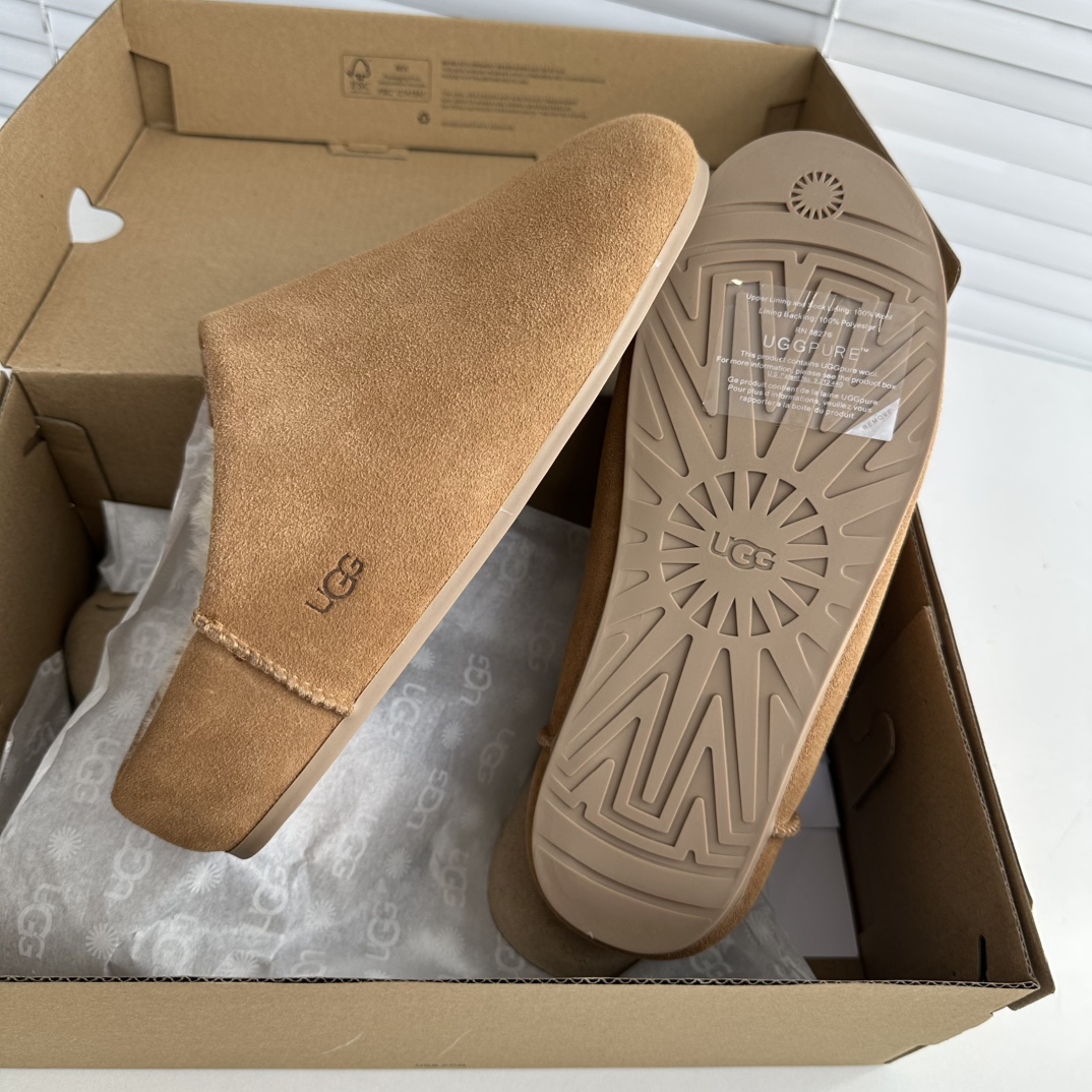 UGG 新款半拖刚到仓就被抢爆!美式复古鞋型自带滤镜,厚实牛翻毛鞋面摸上去全是质感,后跟热压花 logo 低调又显贵 内里踮脚是品牌专用隆丰羊皮毛一体!跟经典款同源的材质,软乎乎贴脚还能自然吸湿,早秋微凉天光脚穿都暖烘烘