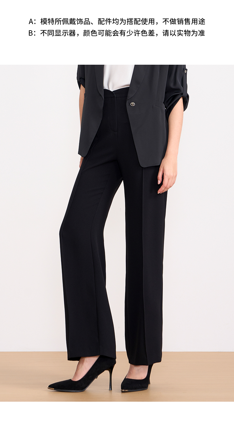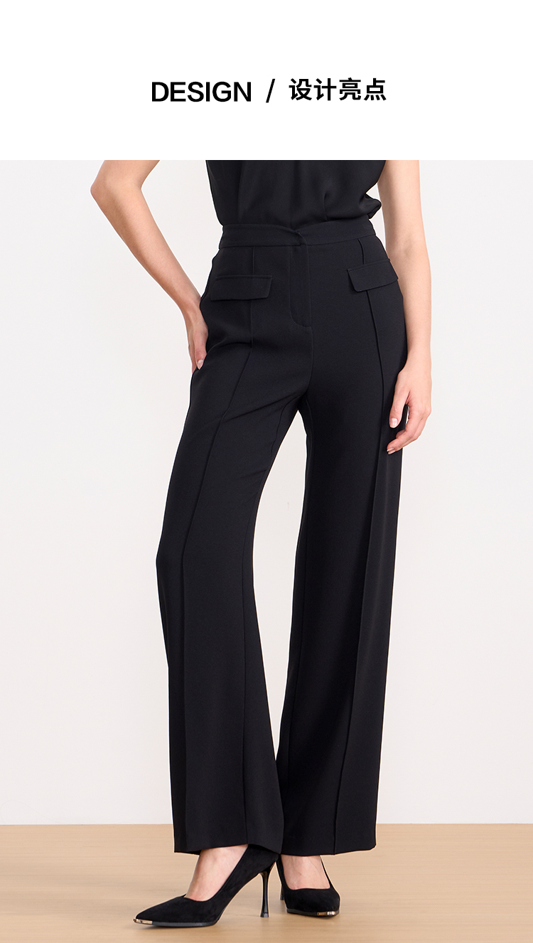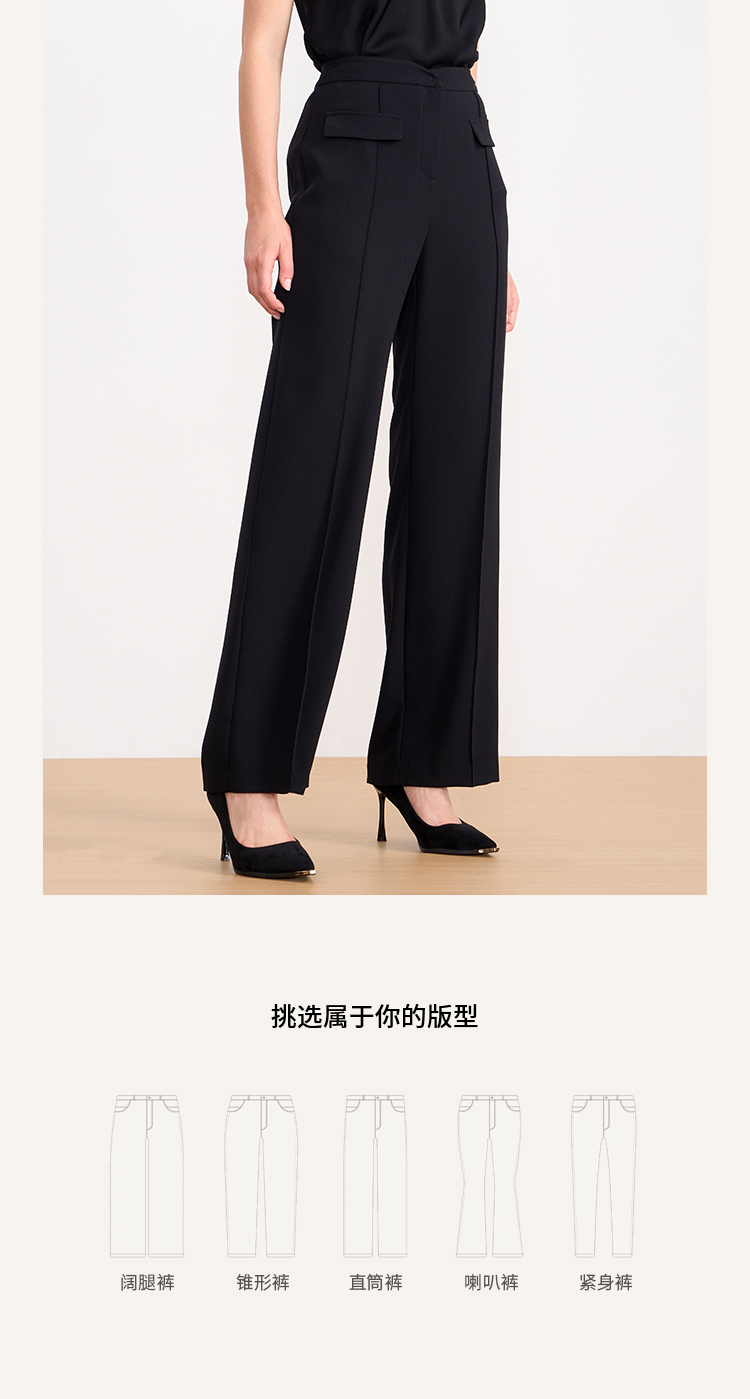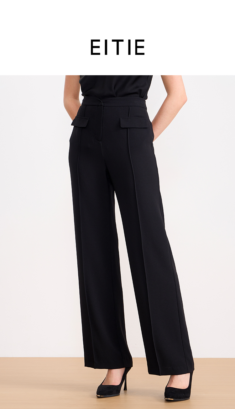 EITIE爱特爱夏季新款显瘦气质通勤舒适百搭黑色长裤7805509