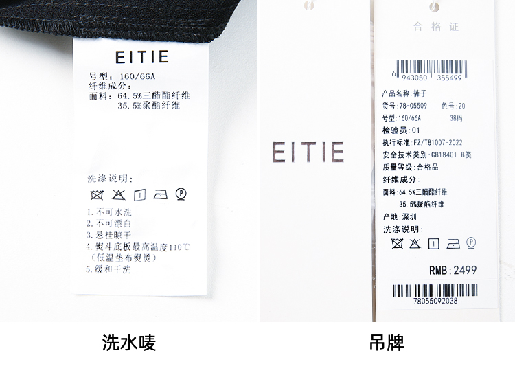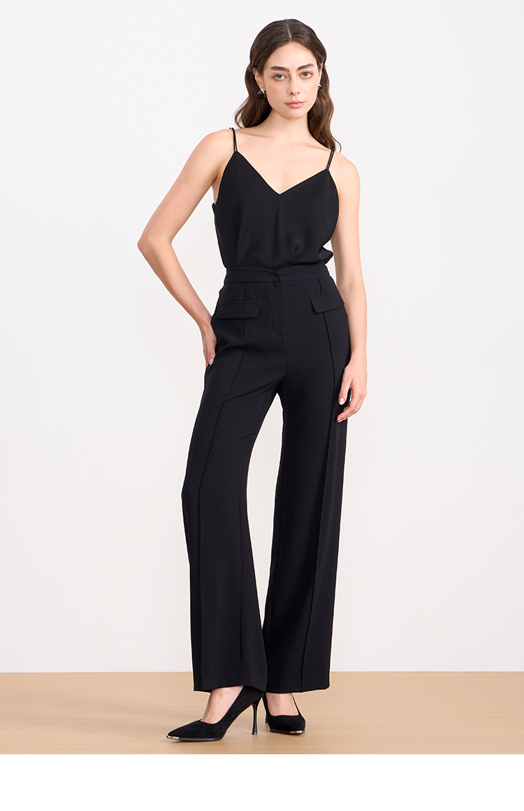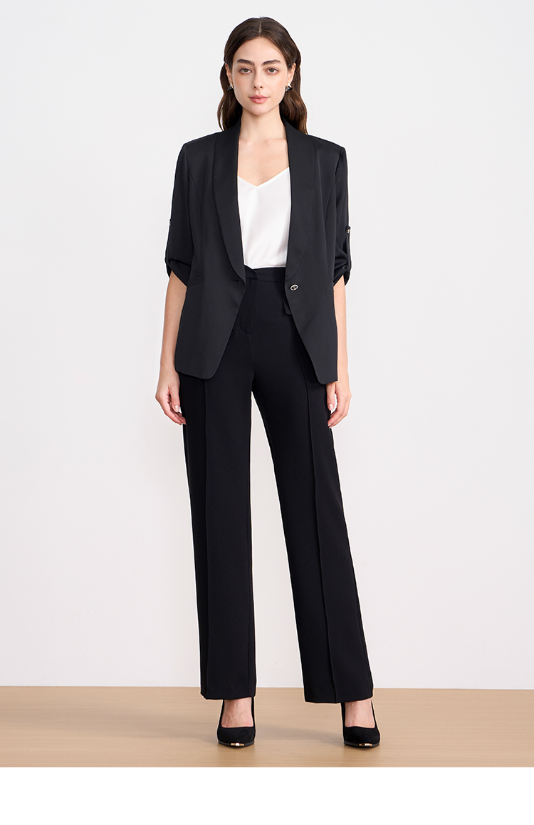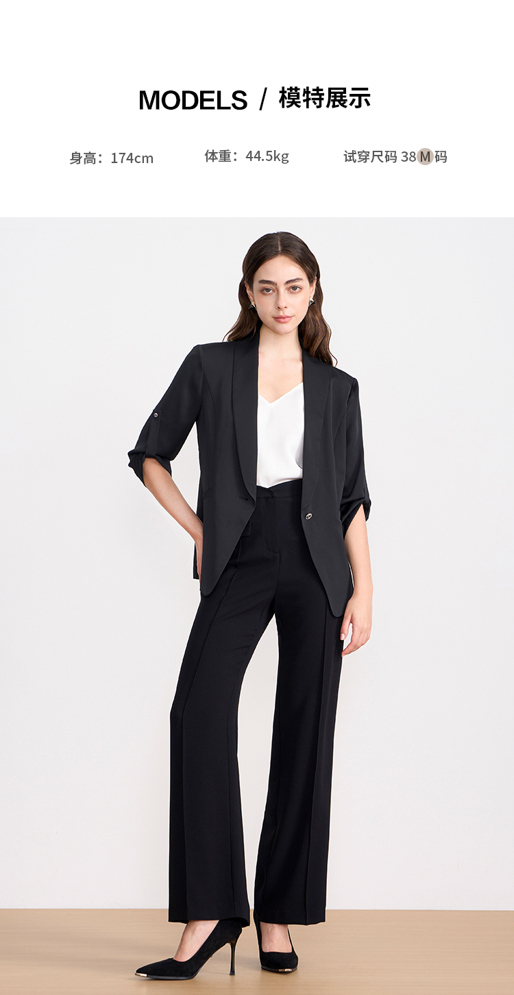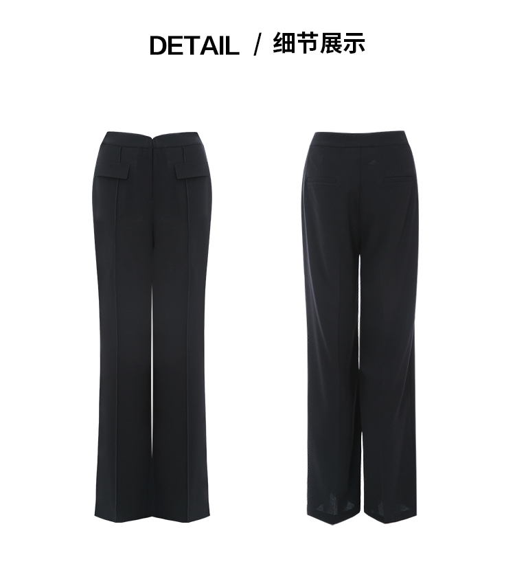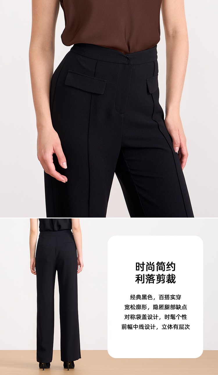 EITIE爱特爱夏季新款显瘦气质通勤舒适百搭黑色长裤7805509