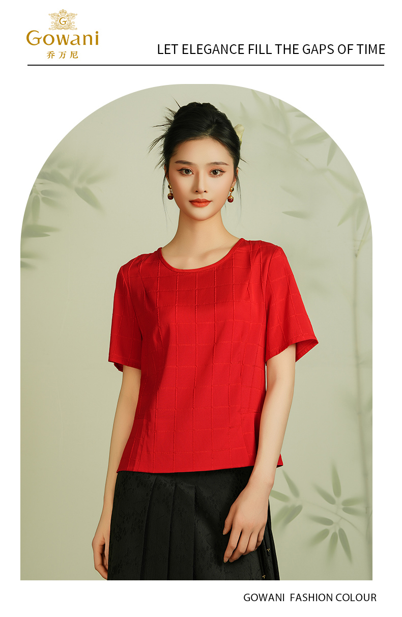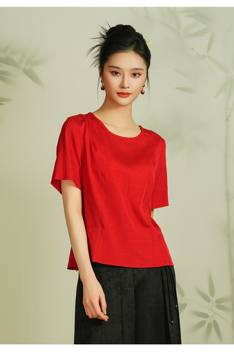 乔万尼圆领真丝小衫宽松显瘦短袖T恤ES2C183