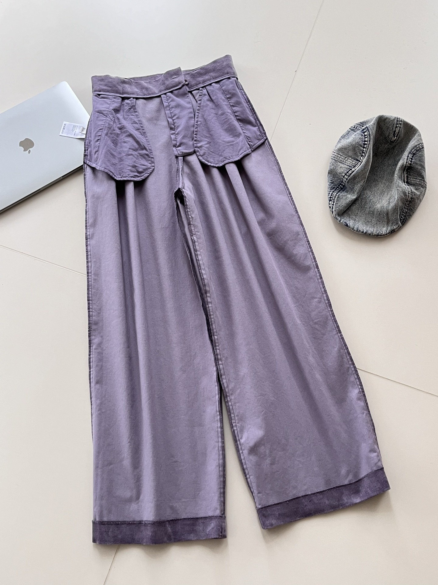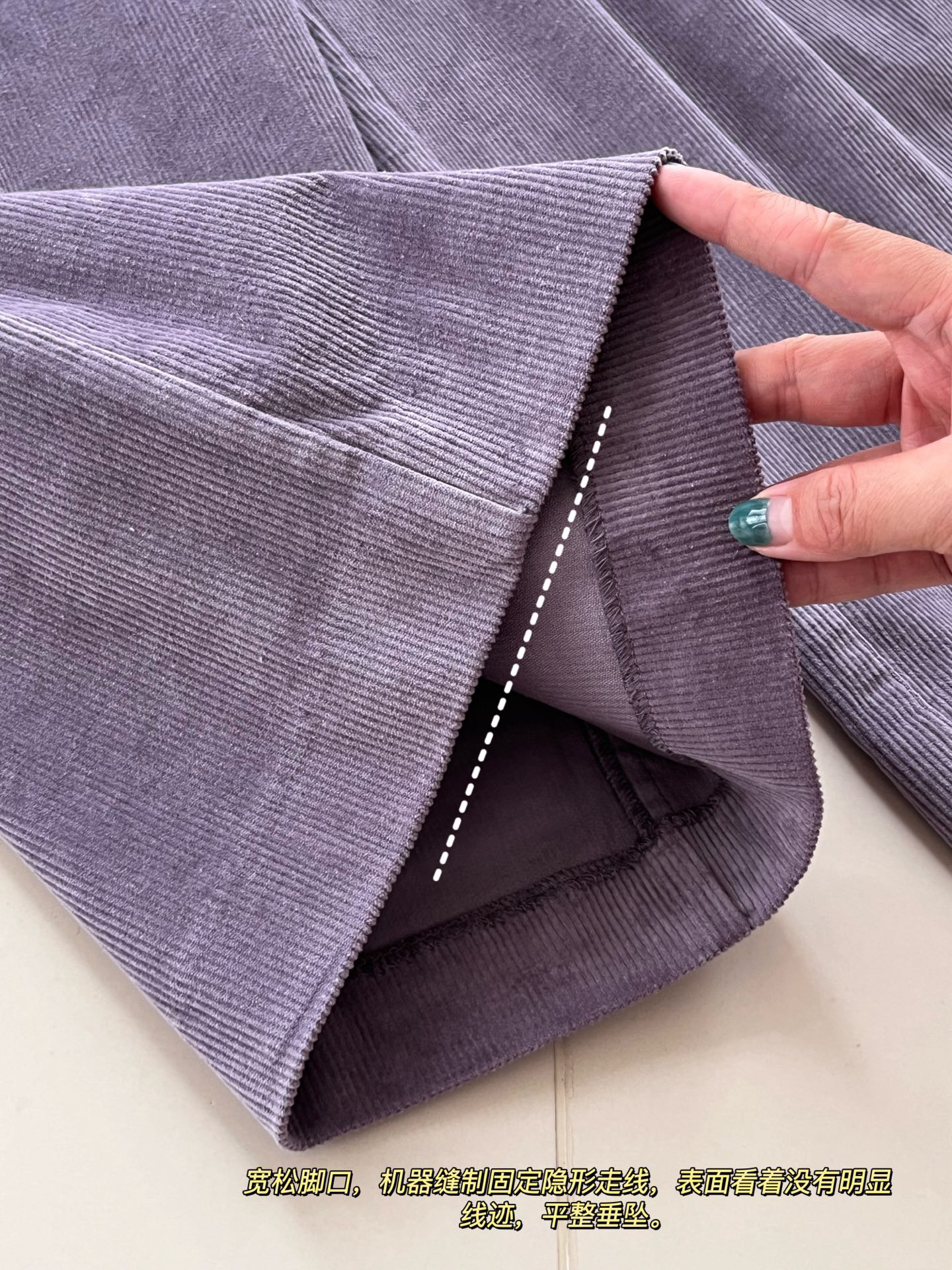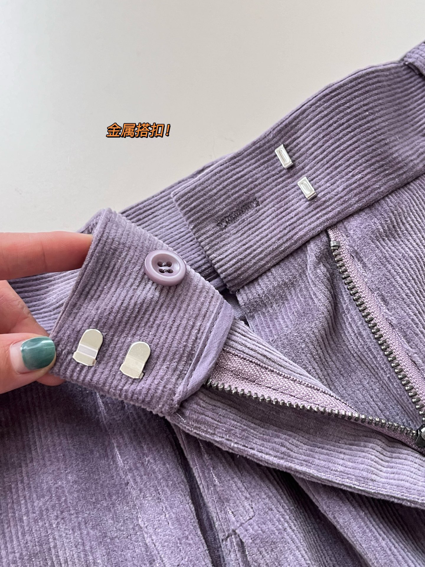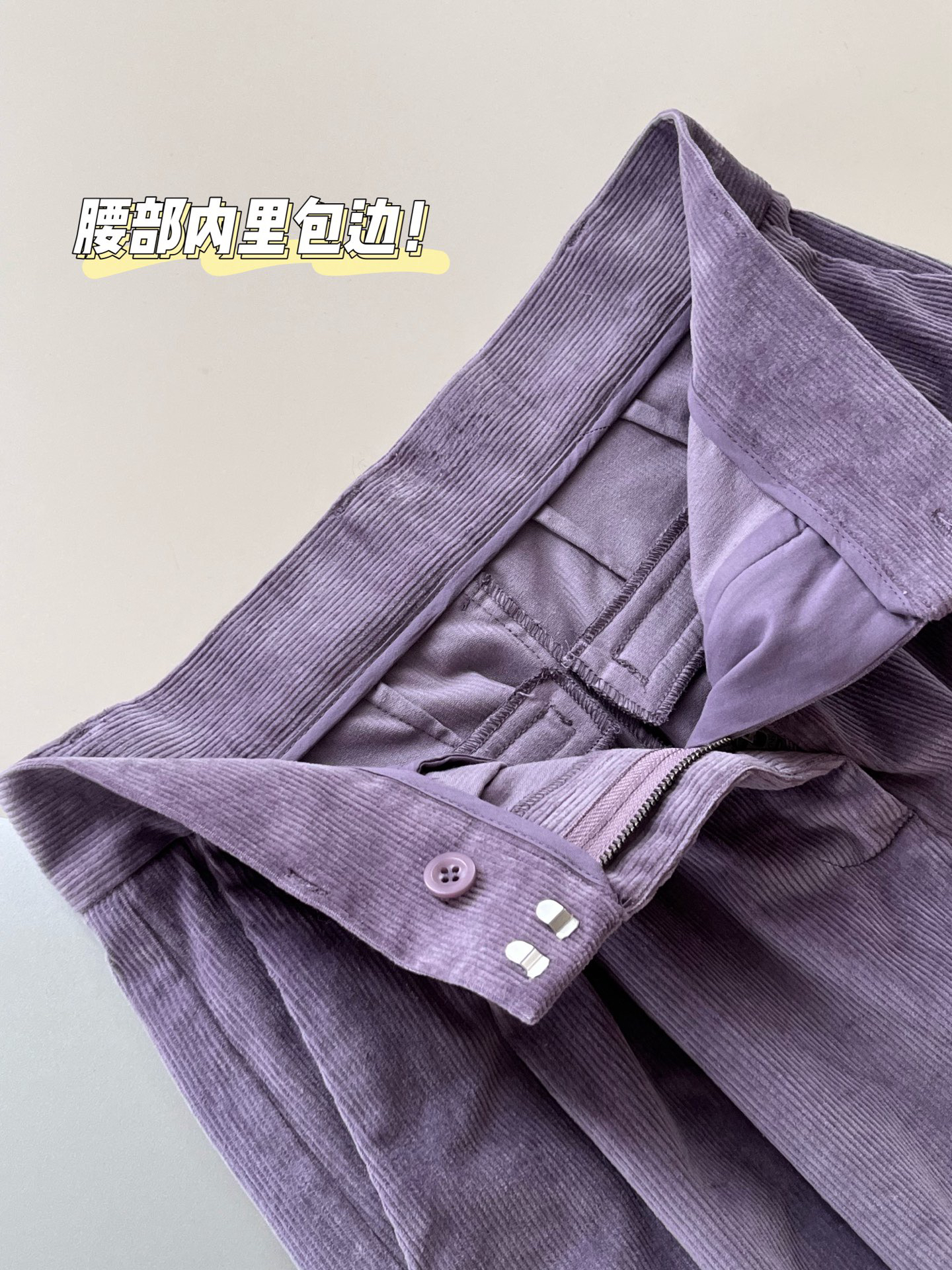 杨采钰法国𝐁𝐒灯芯绒紫色宽松收褶直筒阔腿裤