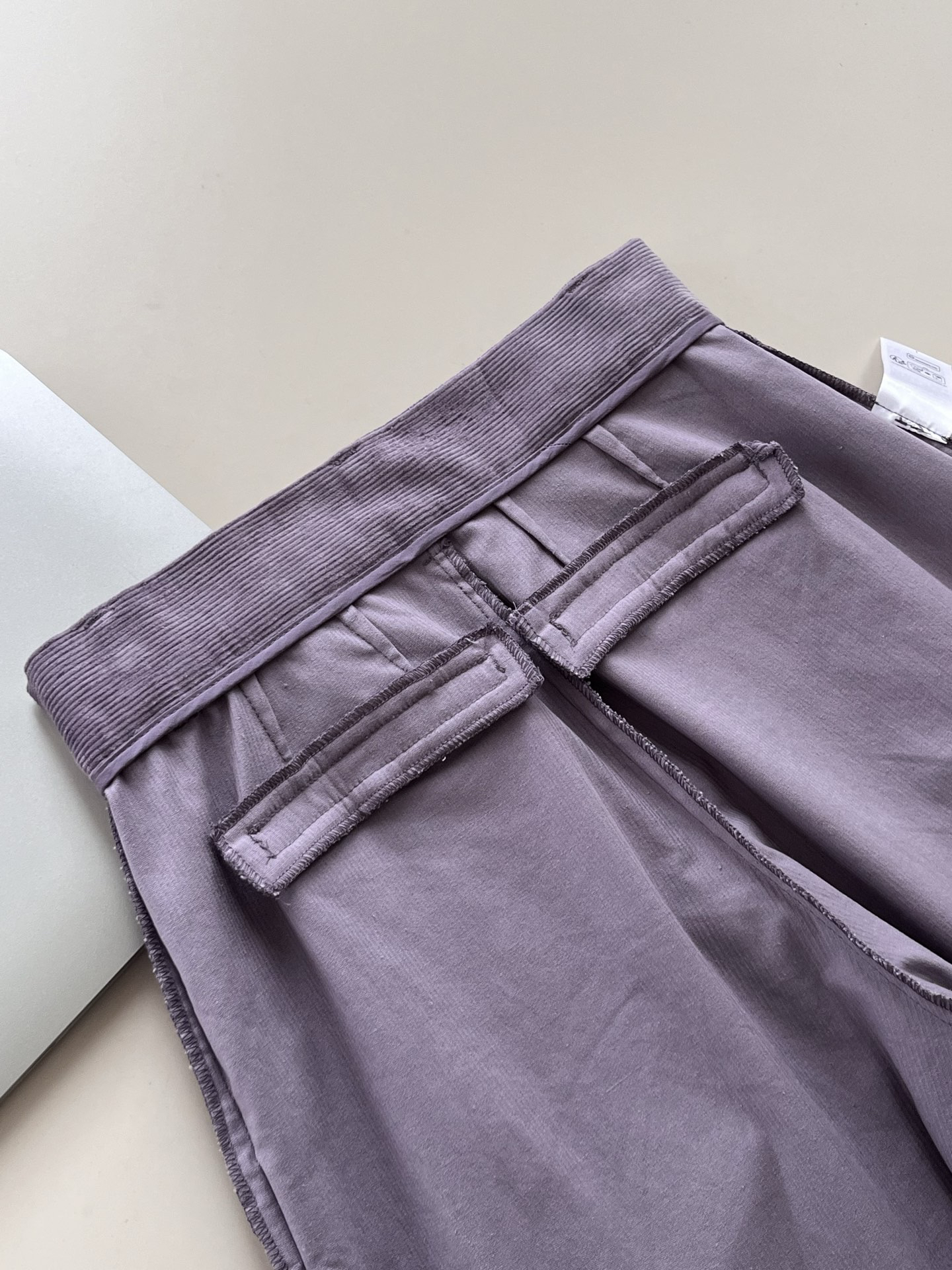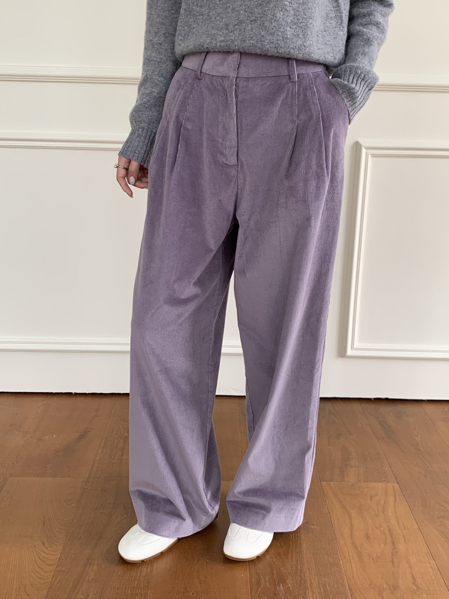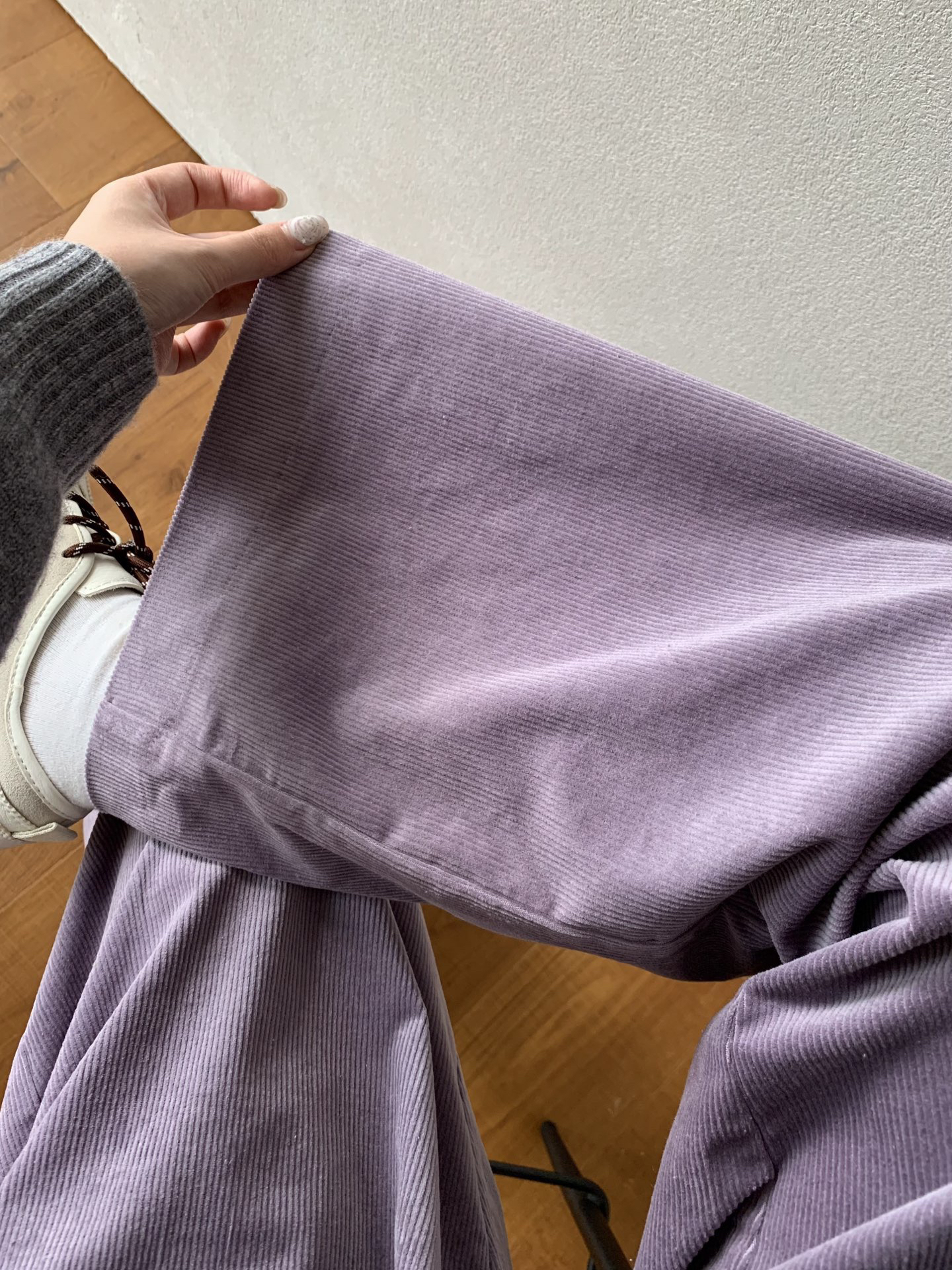 杨采钰法国𝐁𝐒灯芯绒紫色宽松收褶直筒阔腿裤