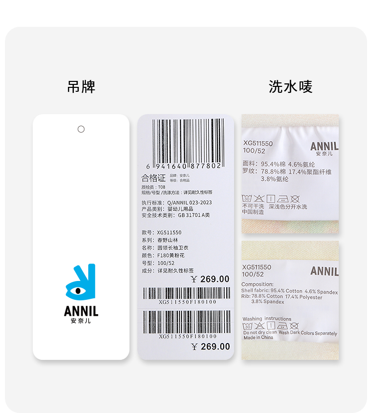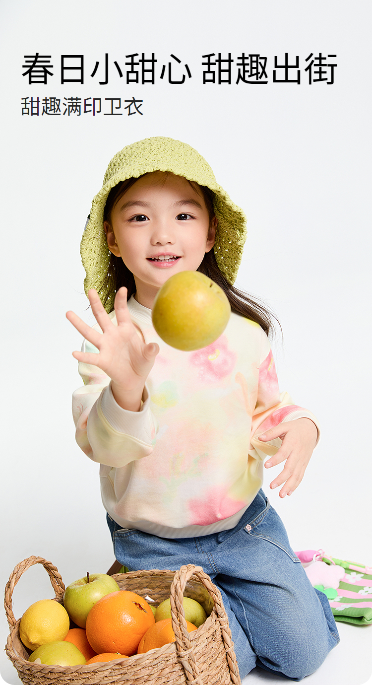 女童圆领长袖卫衣春季新款安奈儿童装实体店同款XG511550