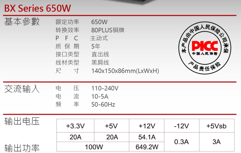 【现货】秋名山650W(实跑850W)真3C真80PLUS日系电容直出ATX3.0电源支持pcie5.0
