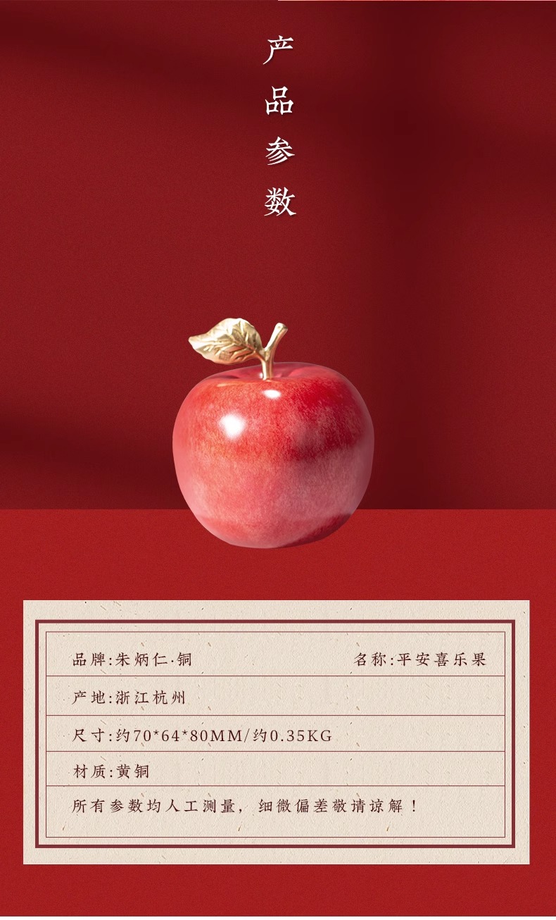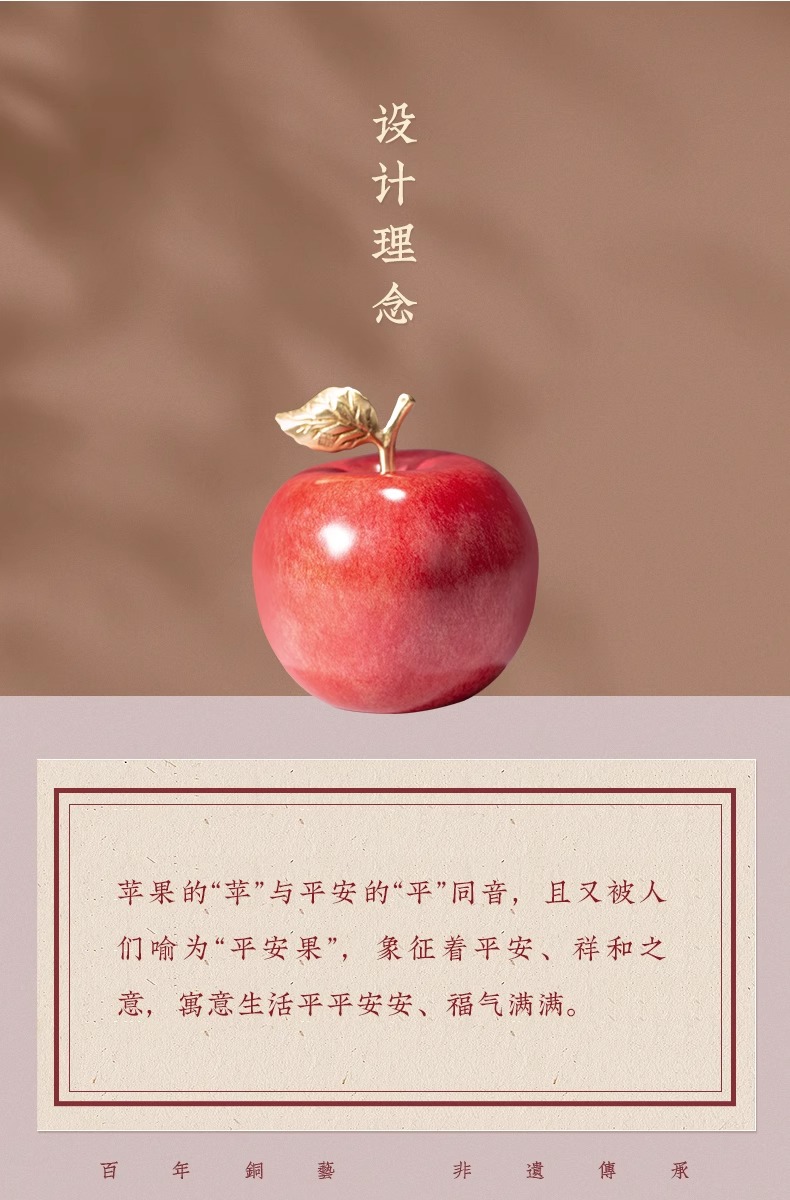 朱炳仁铜 平安喜乐果铜苹果家居饰品桌面装饰品摆件圣诞节礼品