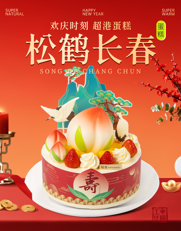 松鹤长春 生日蛋糕