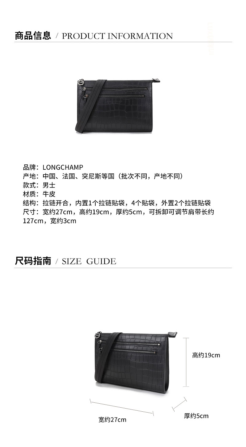 【国内现货】Longchamp/珑骧 2021款 男士CROCO BLOCK系列牛皮单肩斜挎包 20003 945