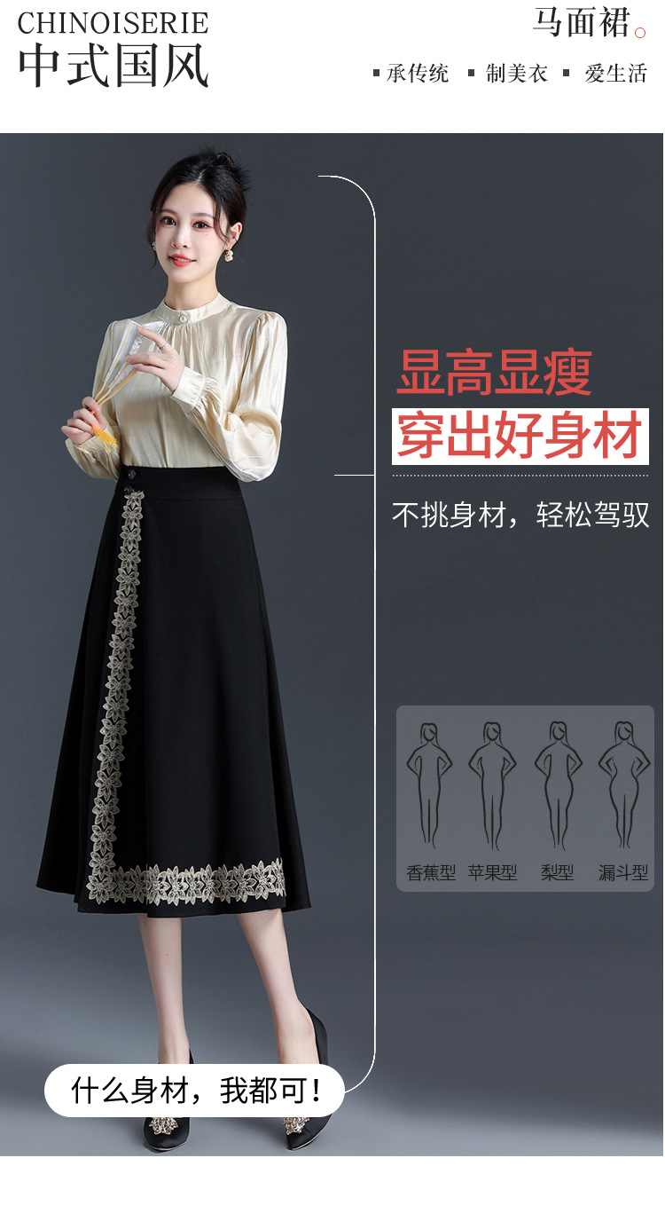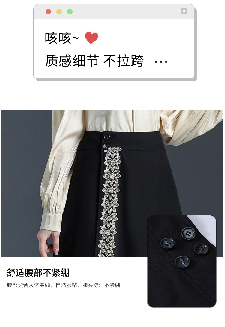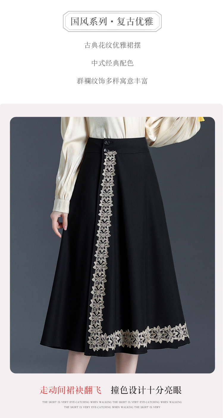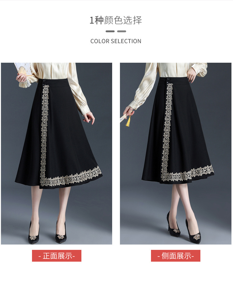 时髦一片式中长款洋气半身裙秋冬款高腰通勤时尚A字裙MYX-6711