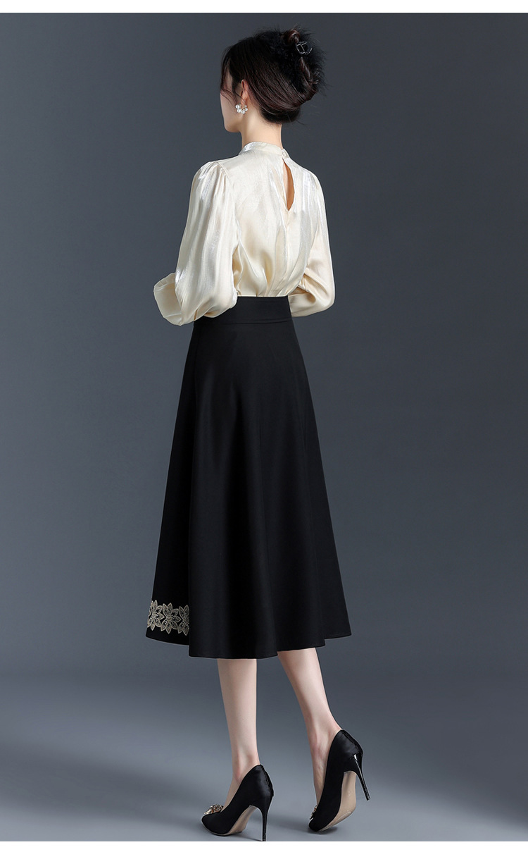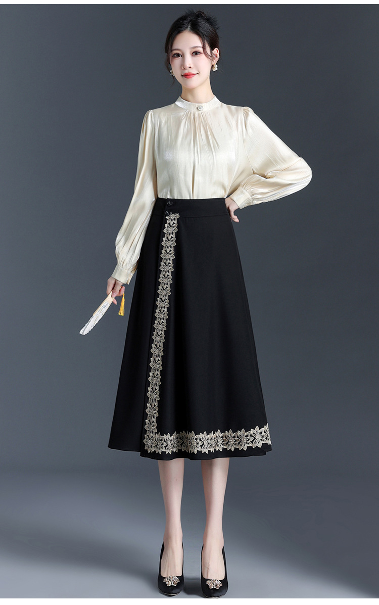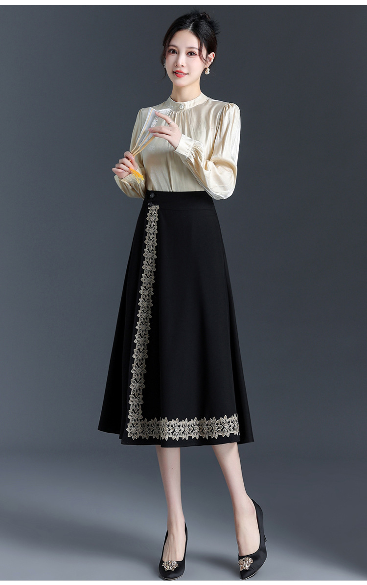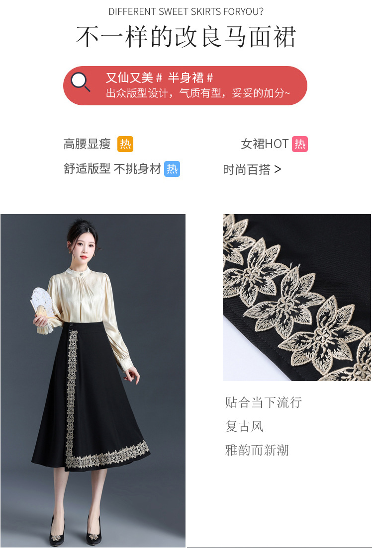 时髦一片式中长款洋气半身裙秋冬款高腰通勤时尚A字裙MYX-6711
