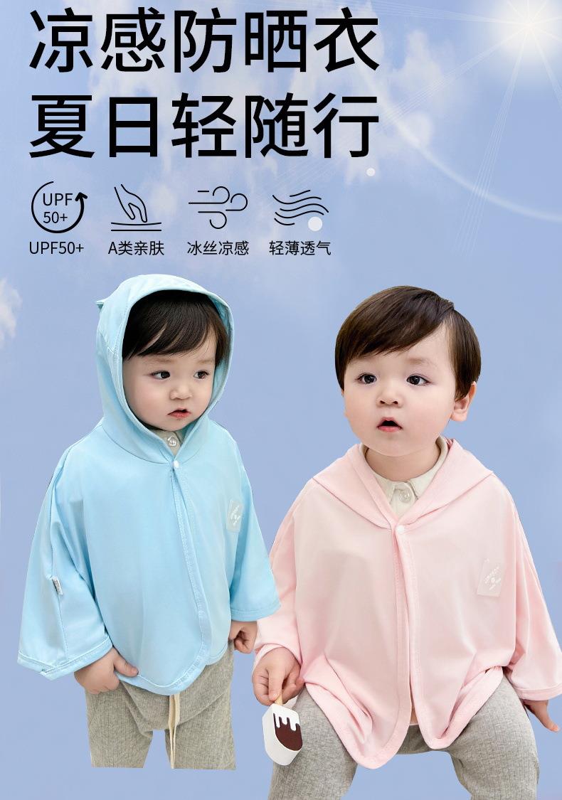 豆点小胖墩新款防紫外线斗篷50+夏季冰丝洋气连帽男女童披风百搭款遮阳80-120