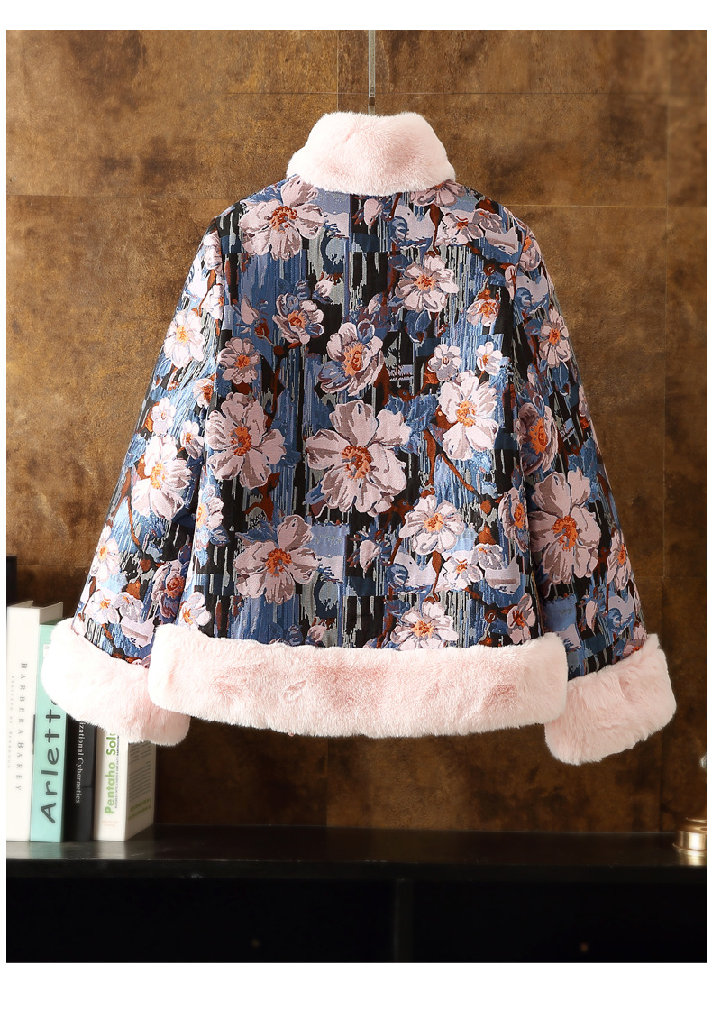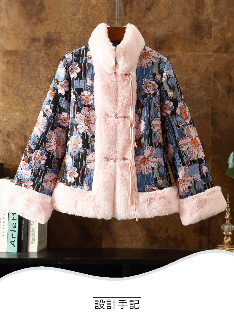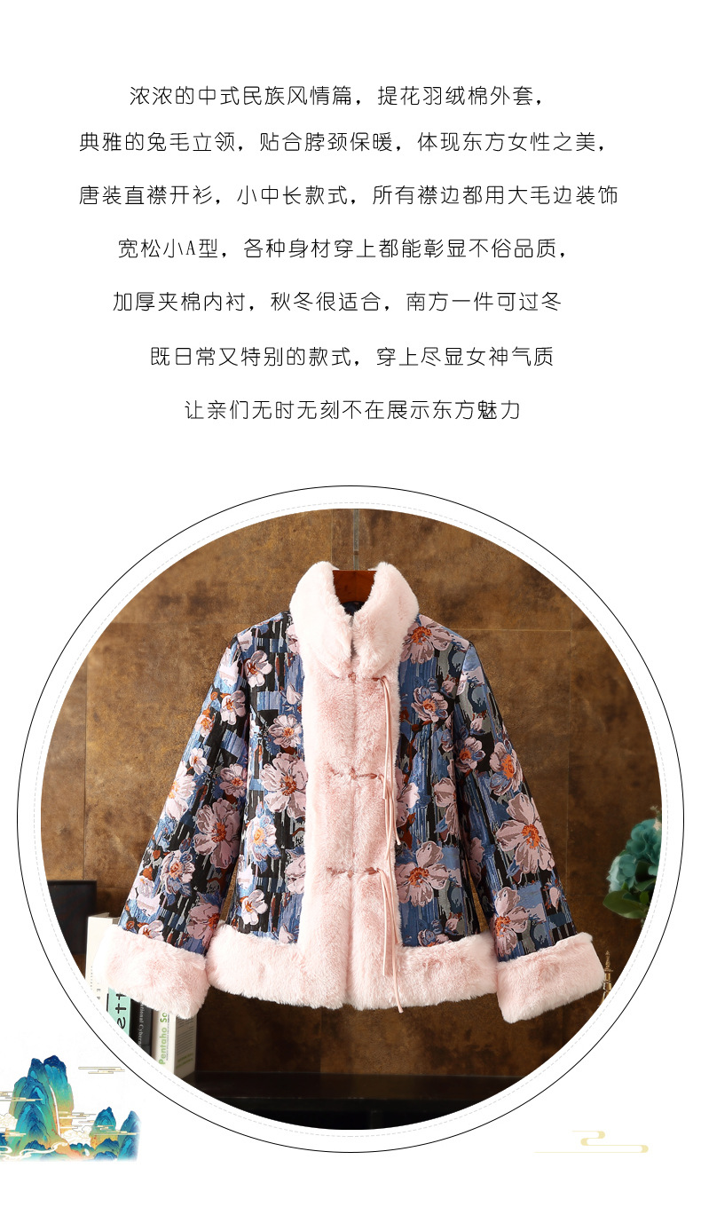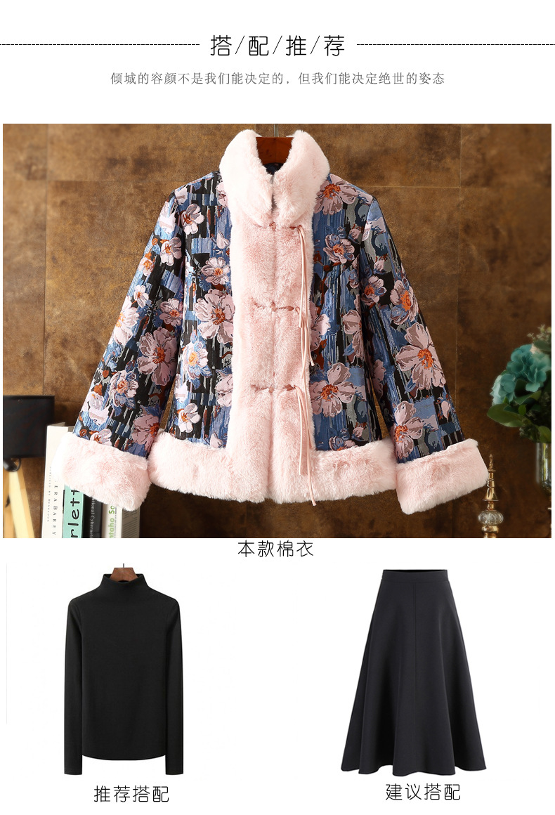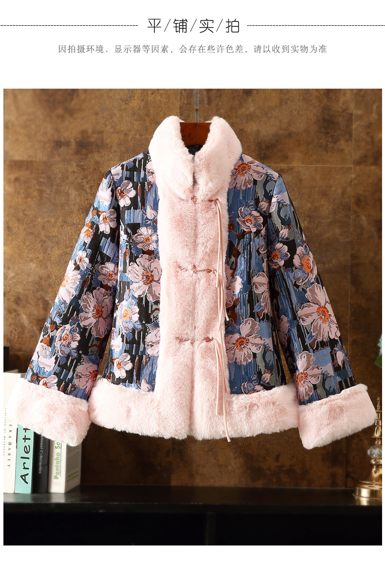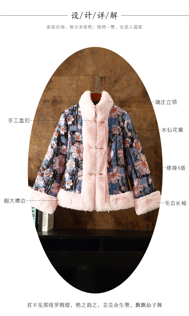 冬季轻奢,名媛兔毛提花改良毛领国风唐装短外套ZSM-221125