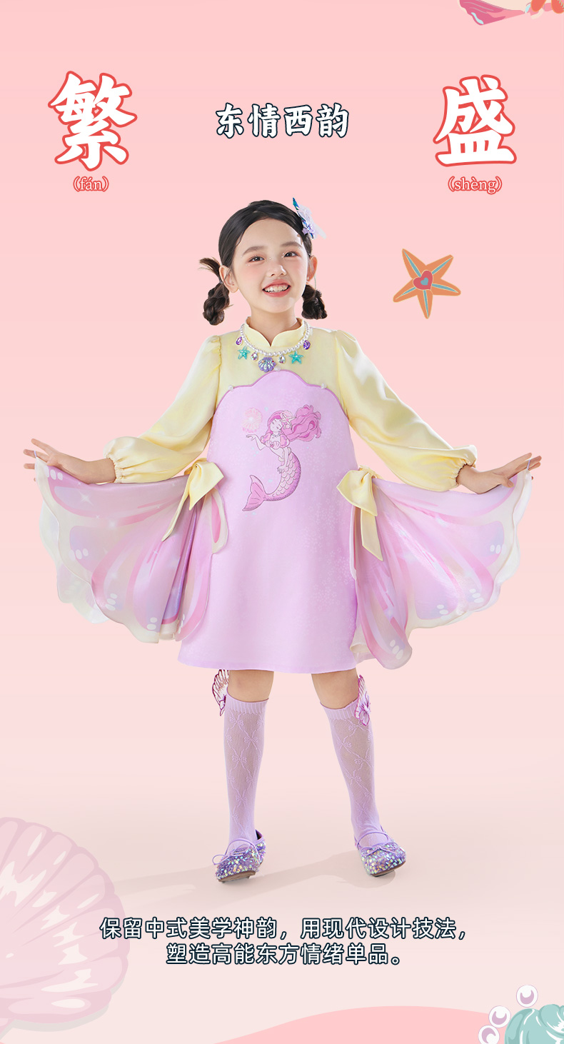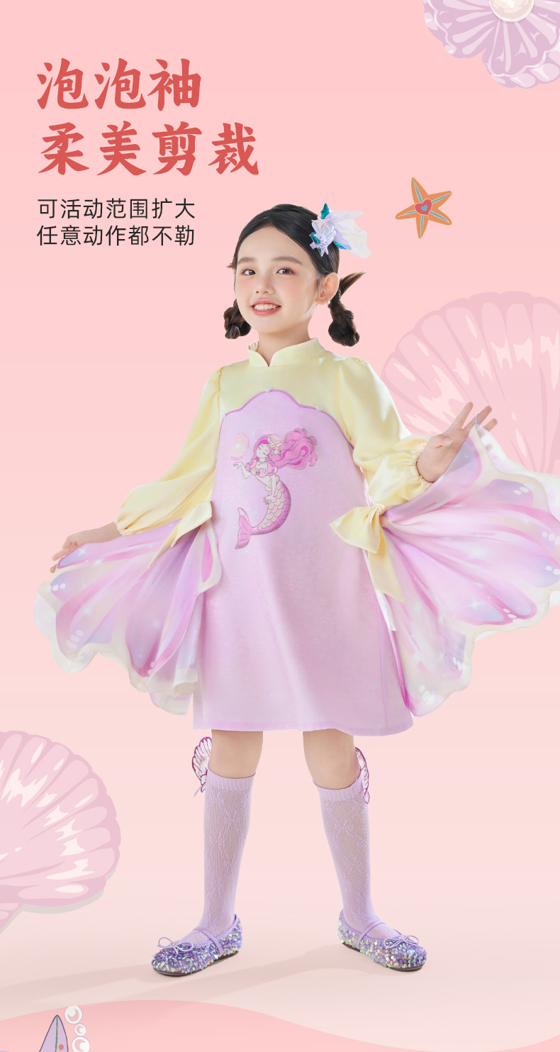 年衣童装女童旗袍连衣裙秋季新款新中式国风女孩公主浪里小仙旗袍裙