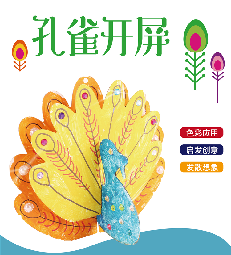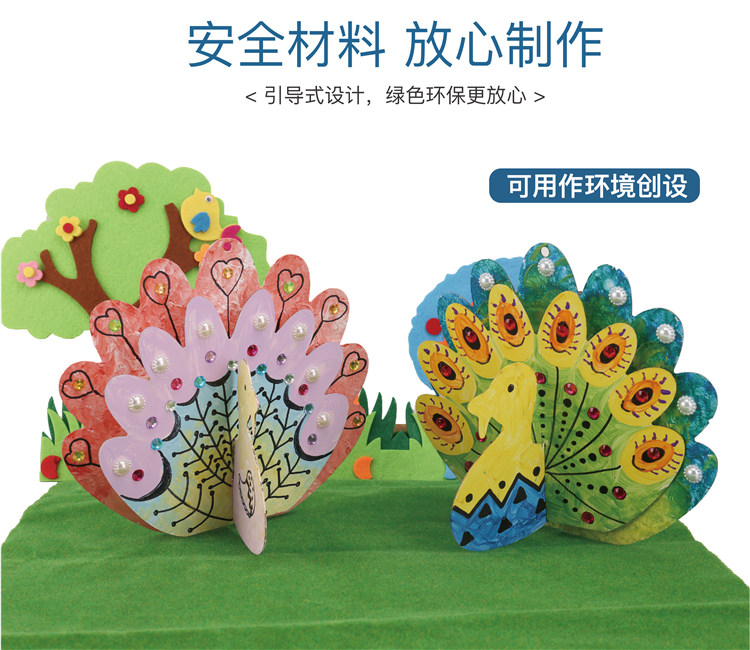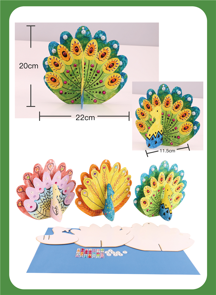 白胚涂色立体孔雀开屏创意材料包幼儿园装饰品手工diy美术绘画 商品图4