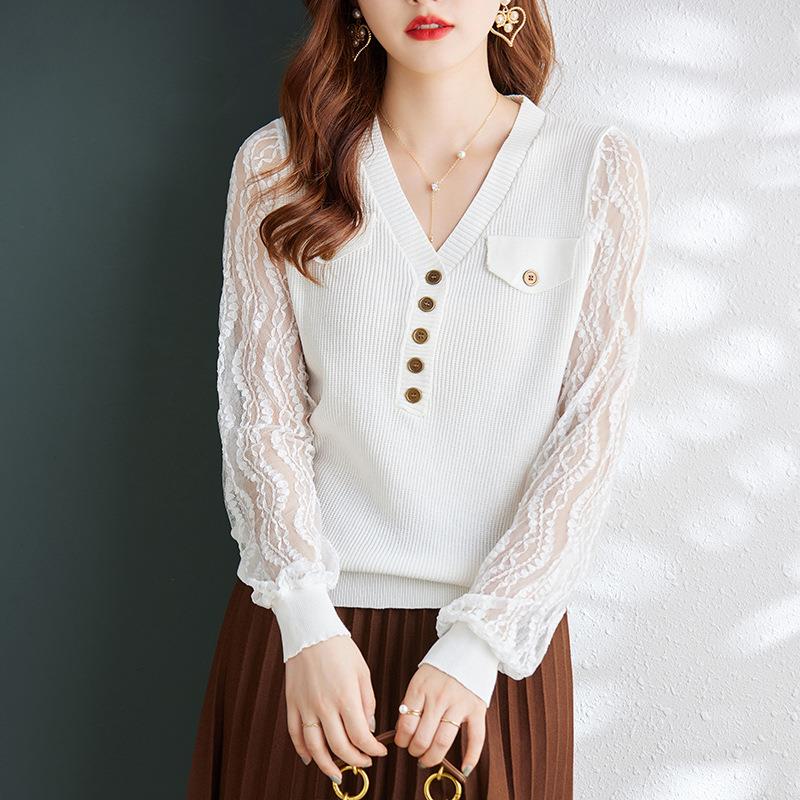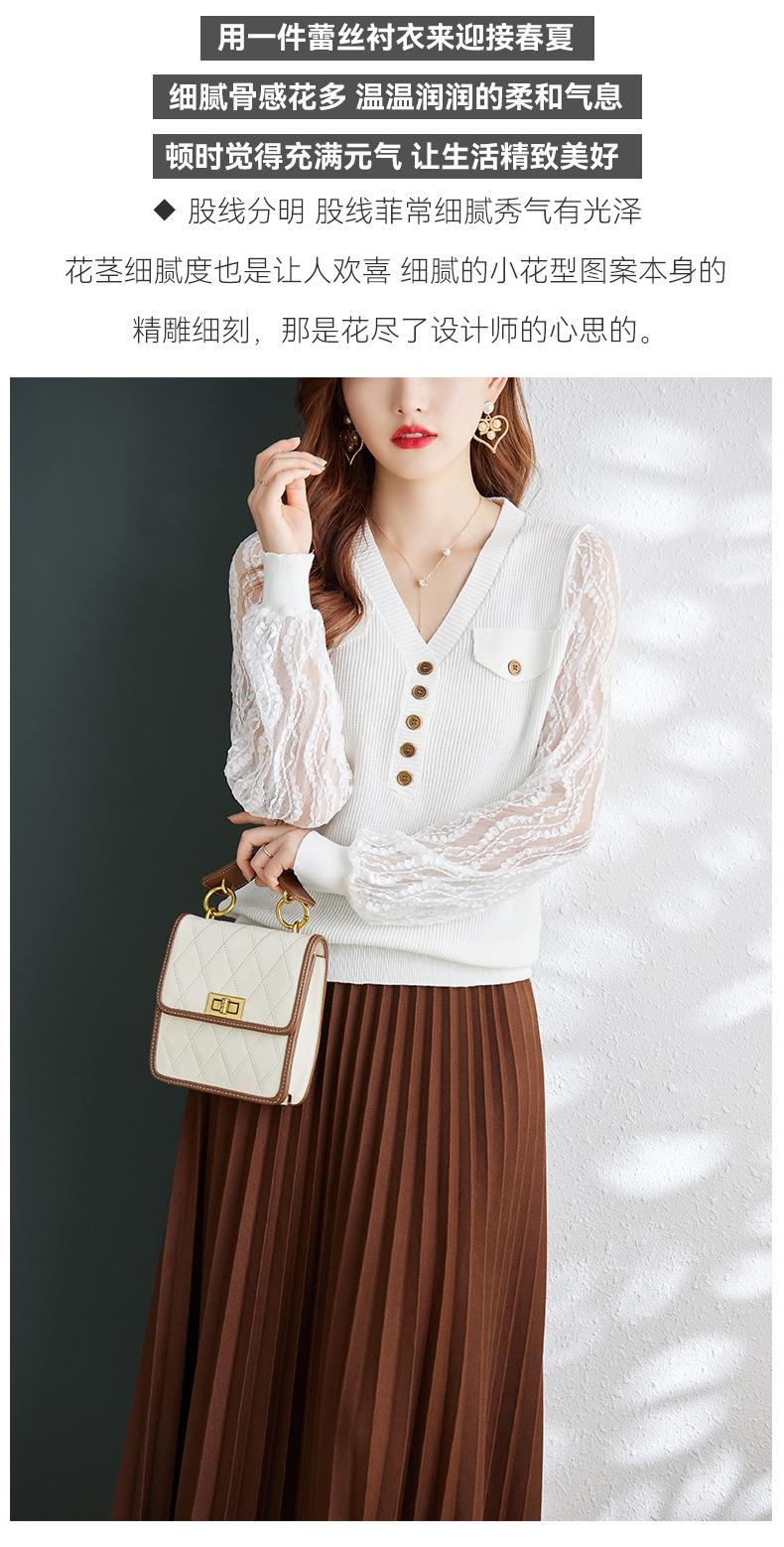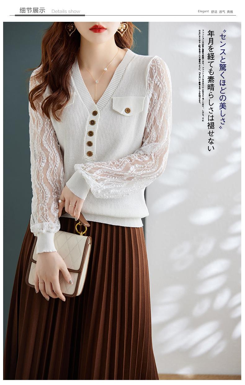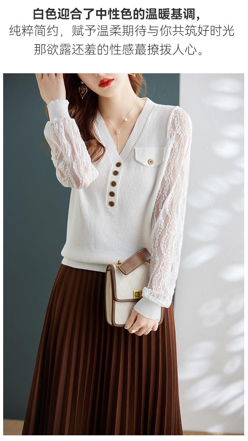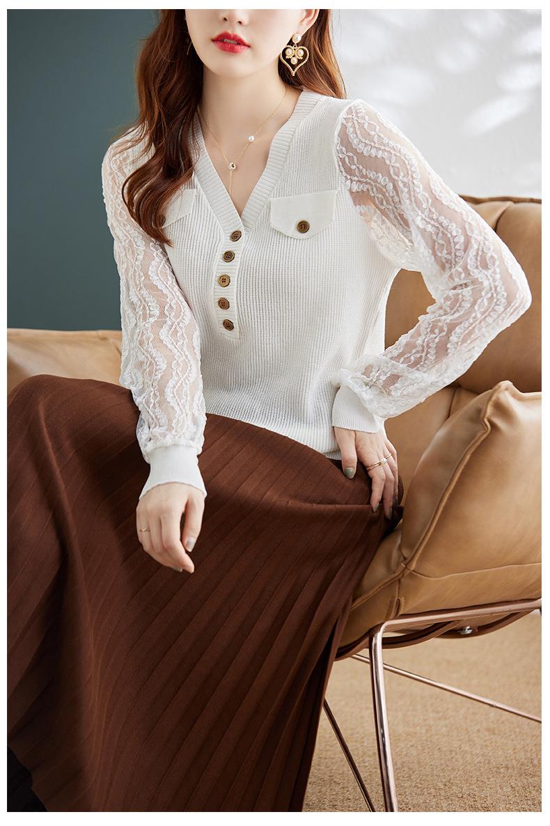 娜璐多 春秋新款设计感小众时尚气质内搭蕾丝拼接长袖针织衫百搭上衣女