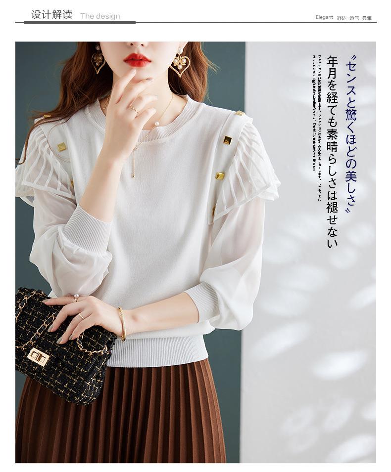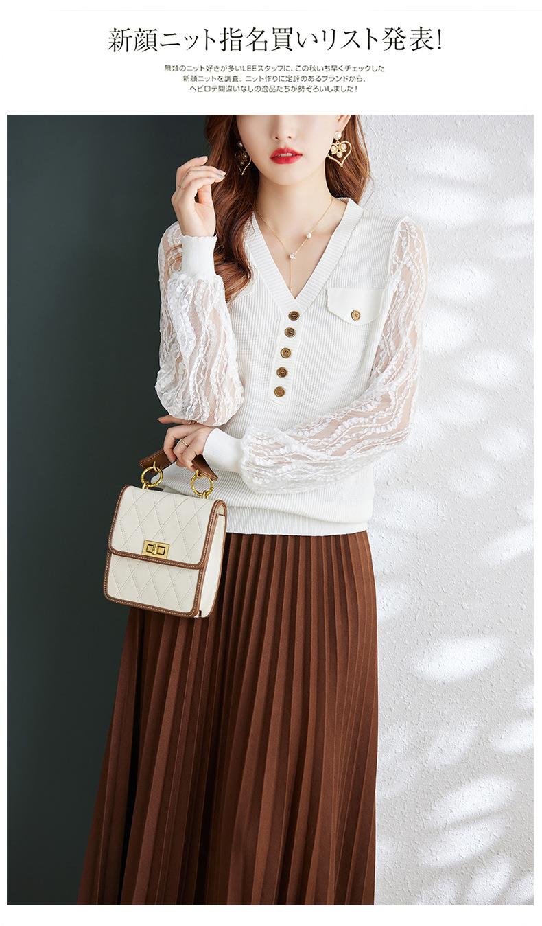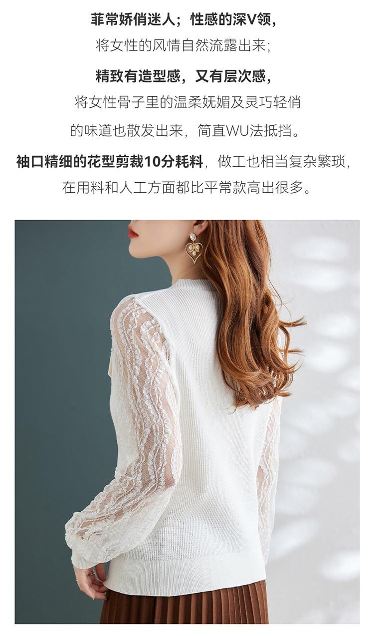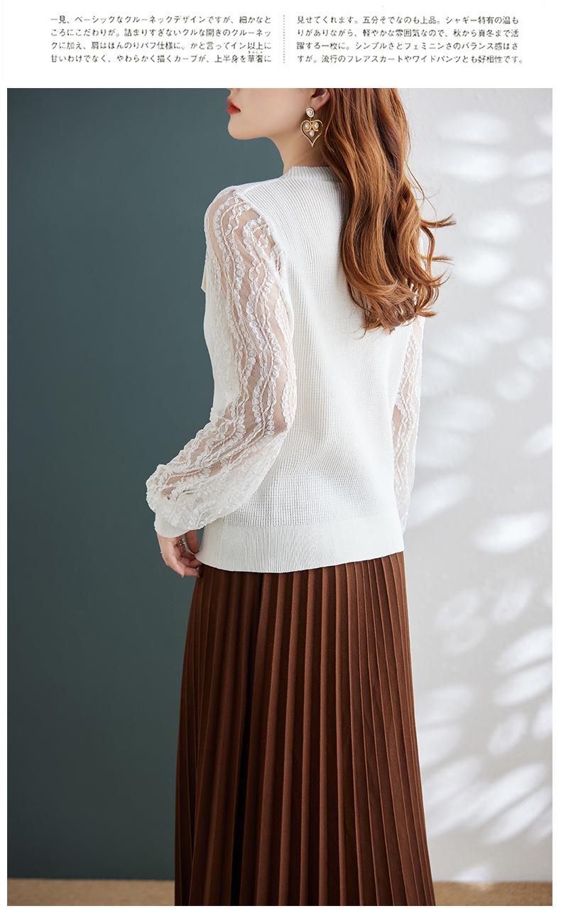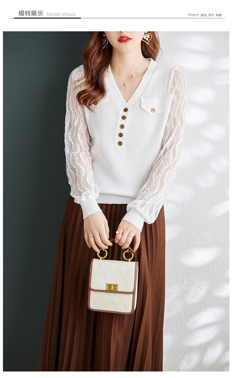 娜璐多 春秋新款设计感小众时尚气质内搭蕾丝拼接长袖针织衫百搭上衣女