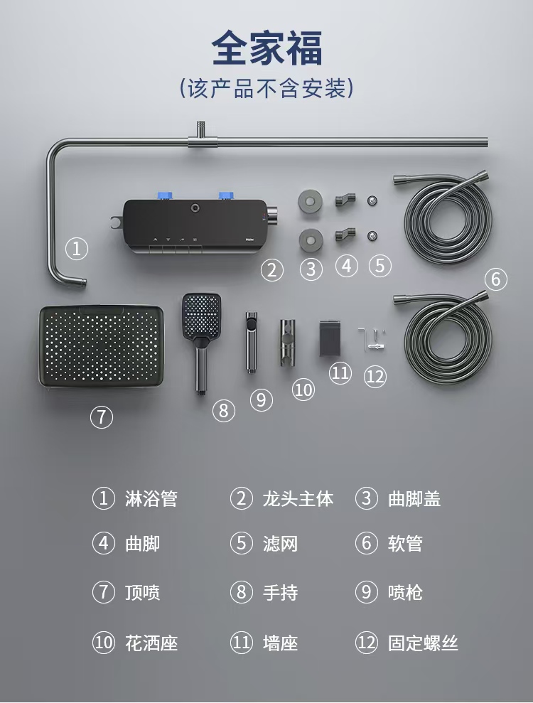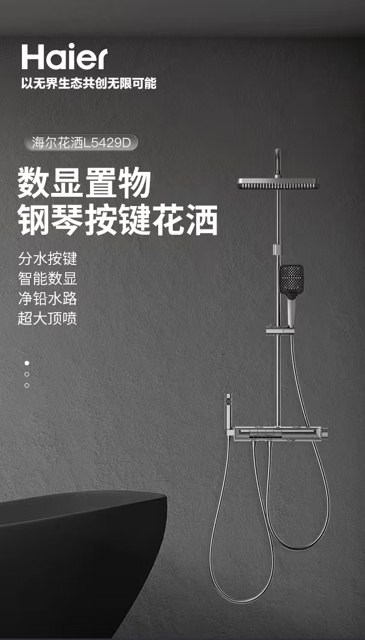 海尔花洒L5429D升级款海尔花洒卫生间四功能钢琴按键超大置物主体智能数显 四功能数显调温淋浴器