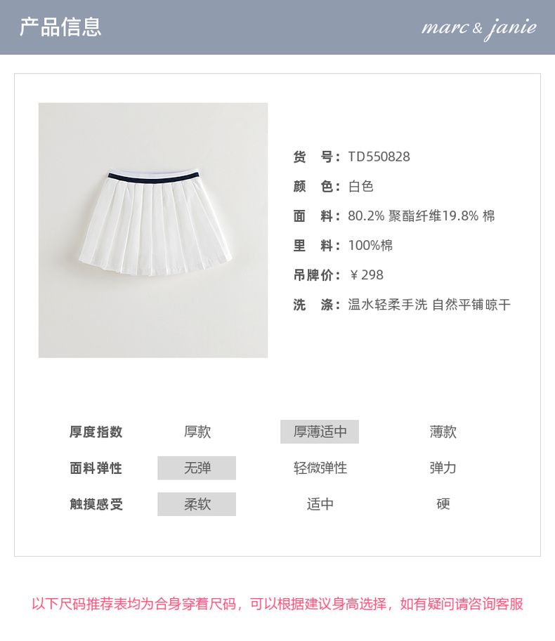 马克珍妮女童百褶运动网球裙裤儿童短裙半身裙2024夏装新款550828