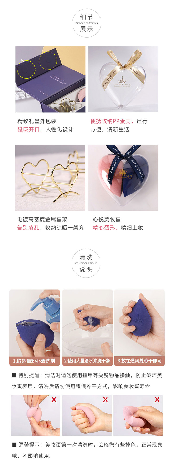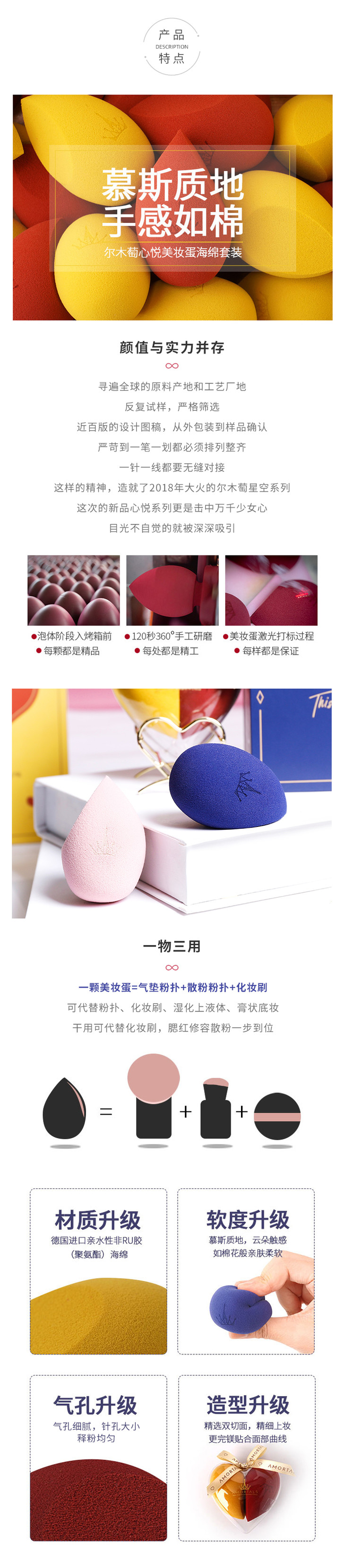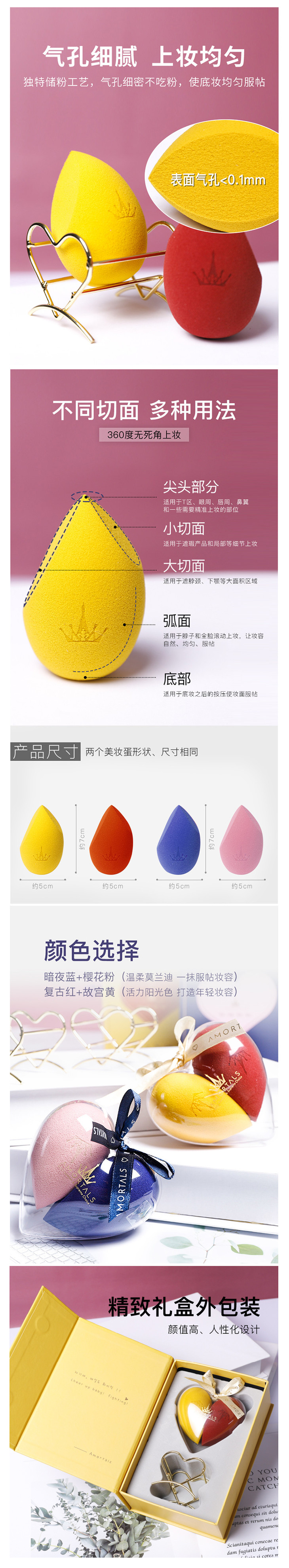 尔木萄 心悦美妆蛋套盒 2只+蛋架/盒 干湿两用海绵美妆蛋 AMRTALS/amrtals