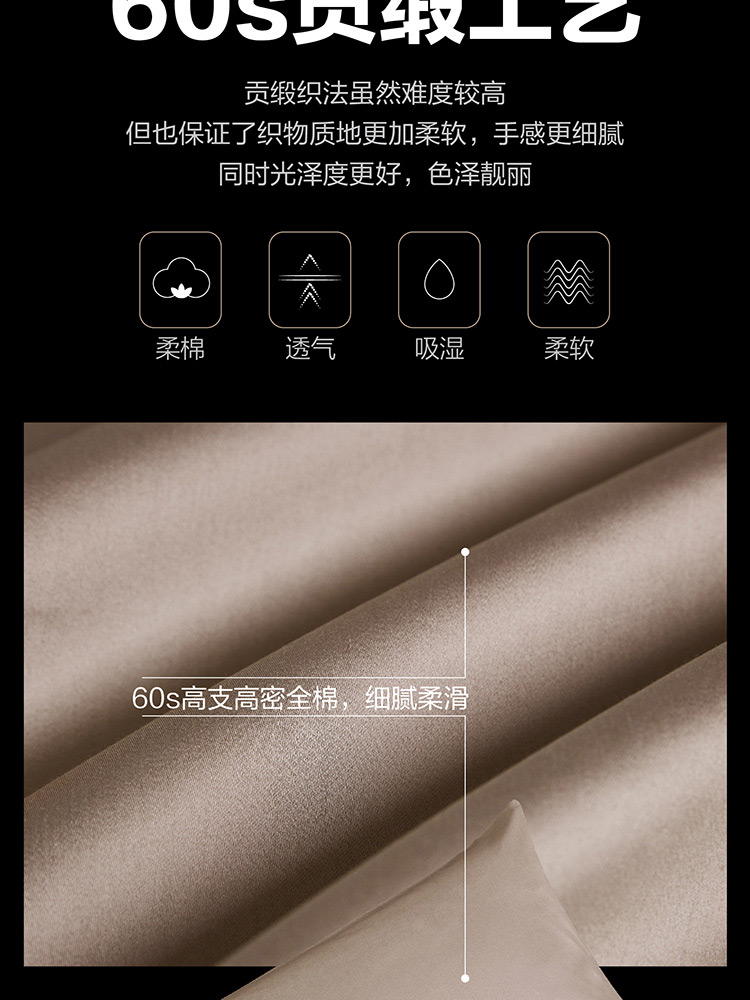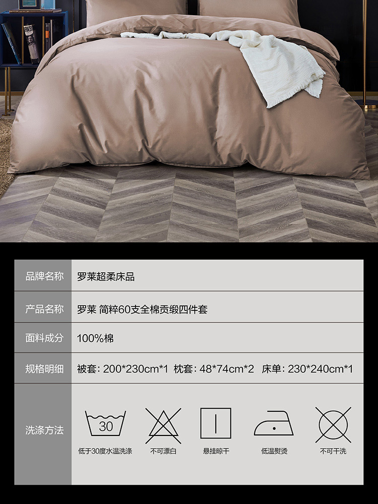 罗莱 简粹60S全棉贡缎四件套(咖啡色)