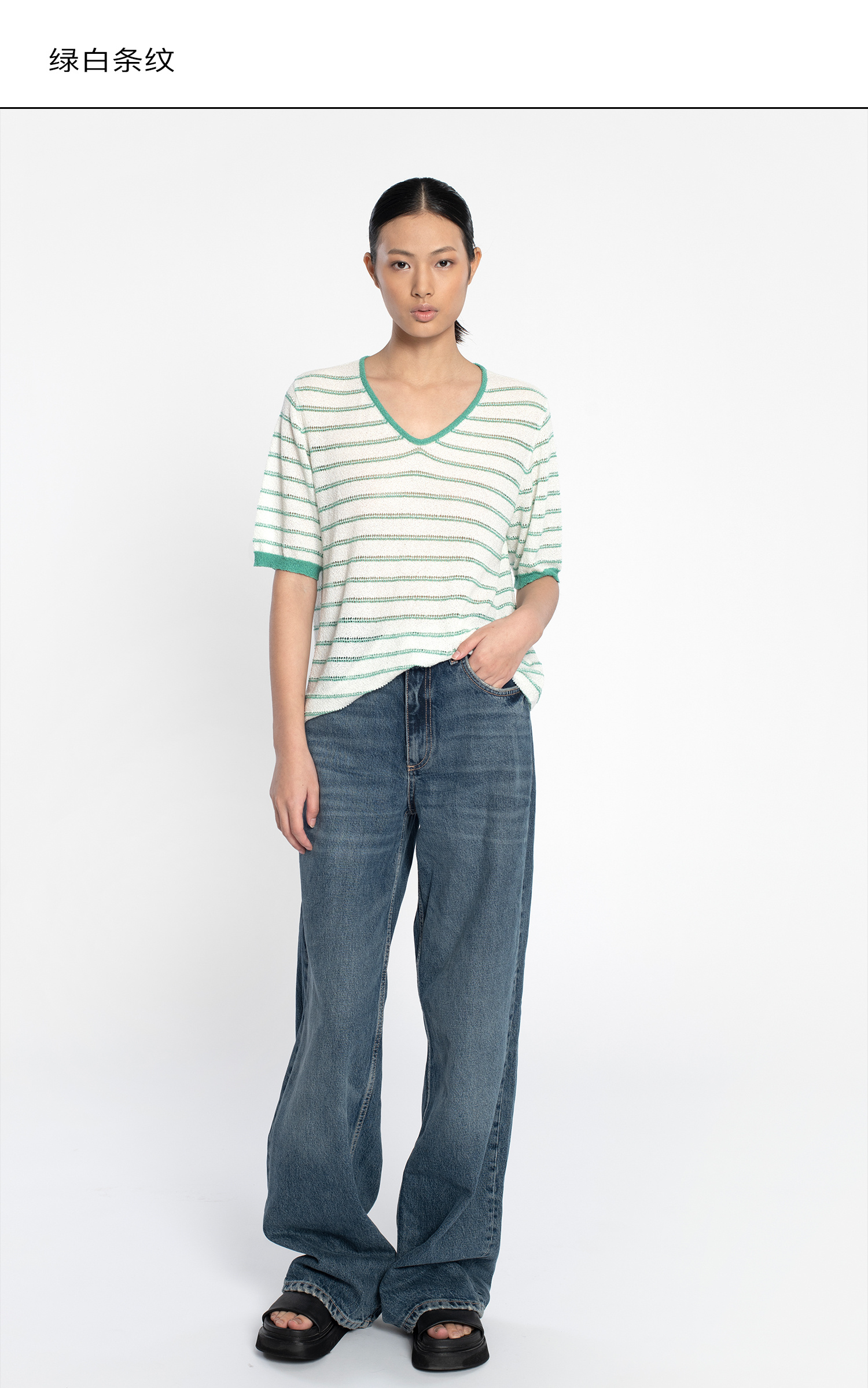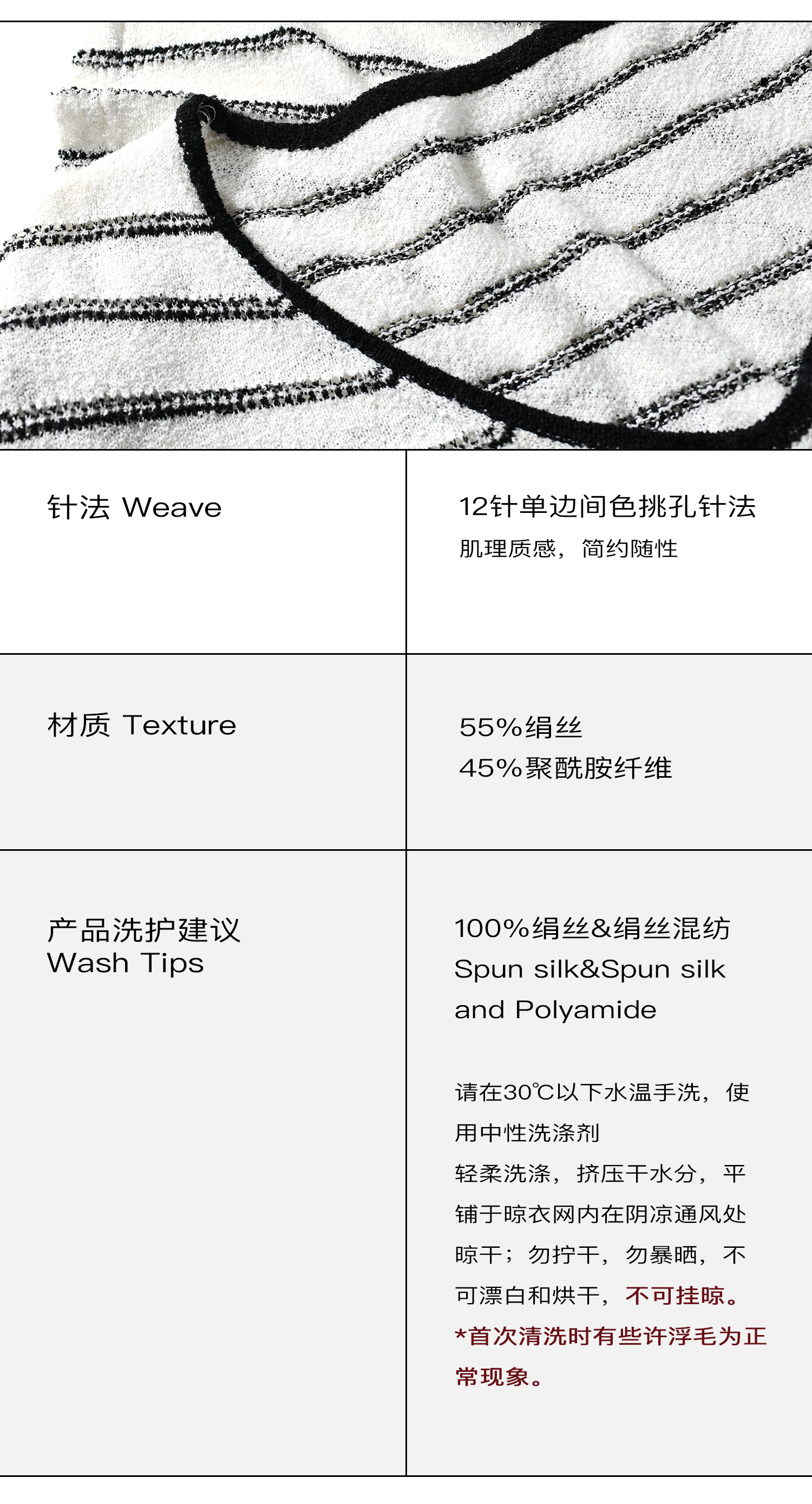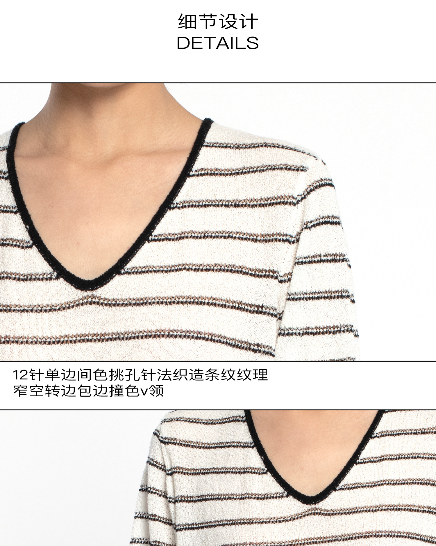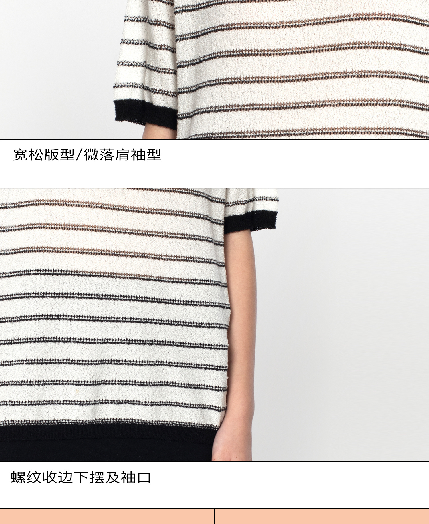 322工房新意短毛绒羊毛圈圈纱条纹针织2023春夏宽松休闲毛衣B012