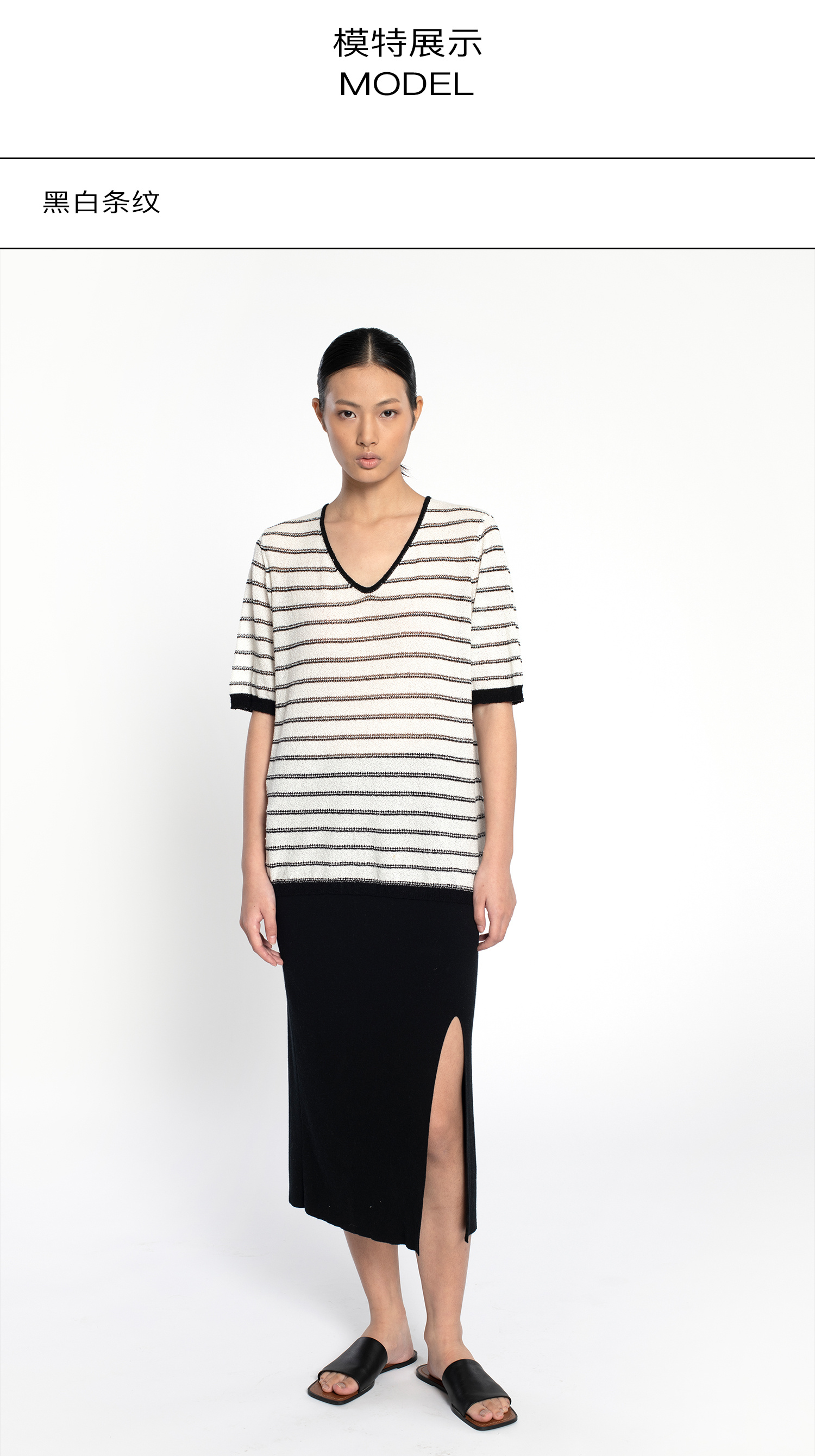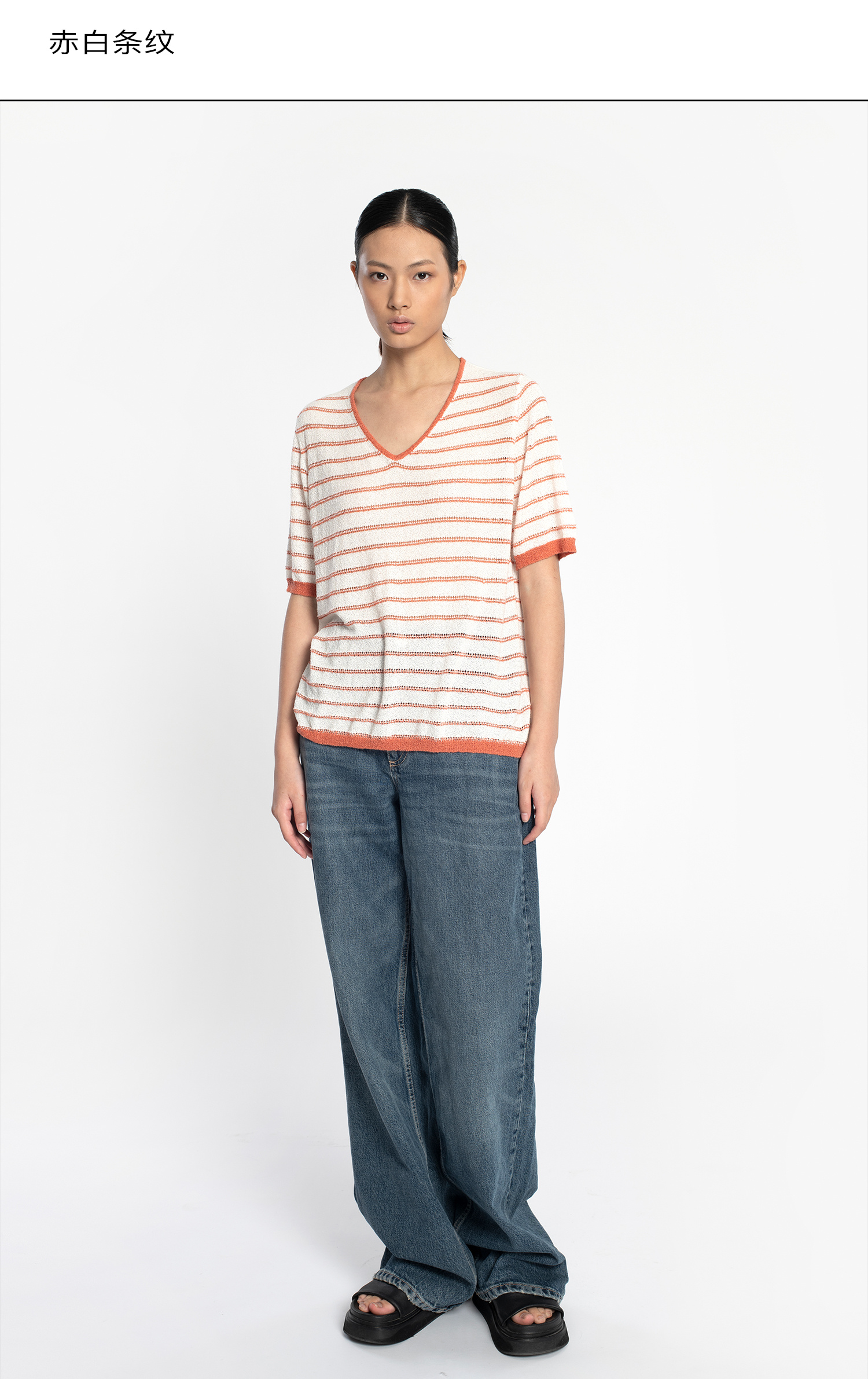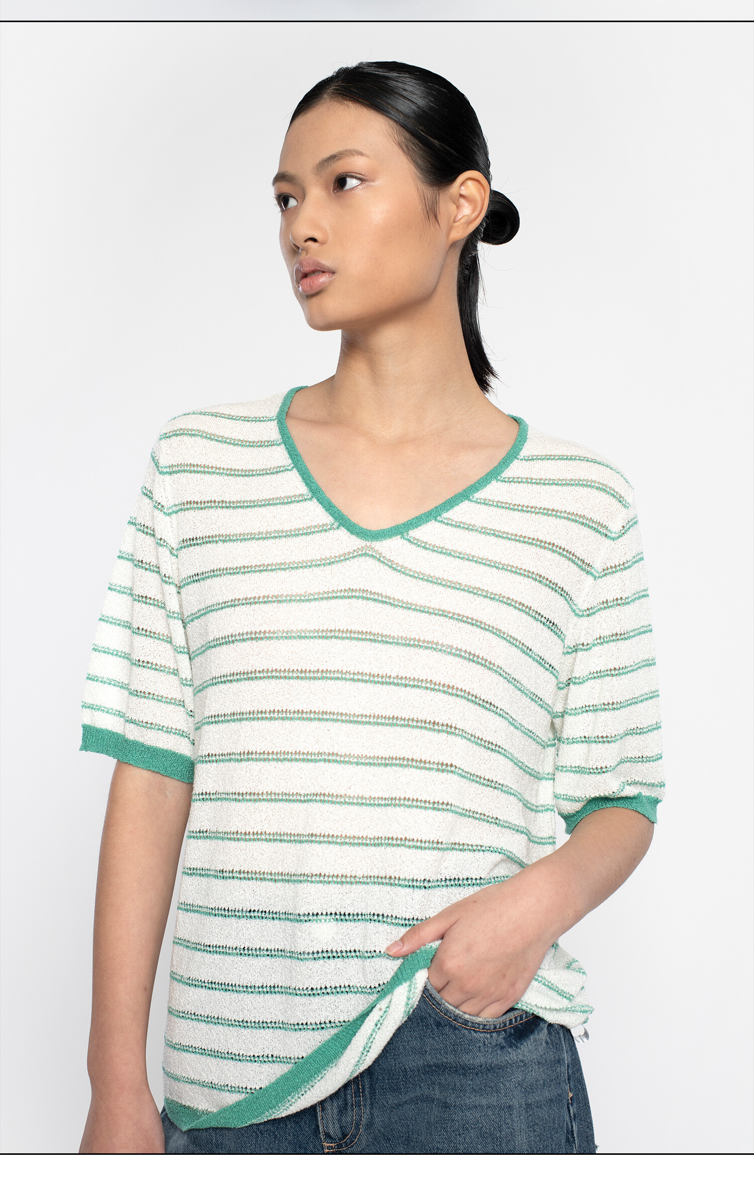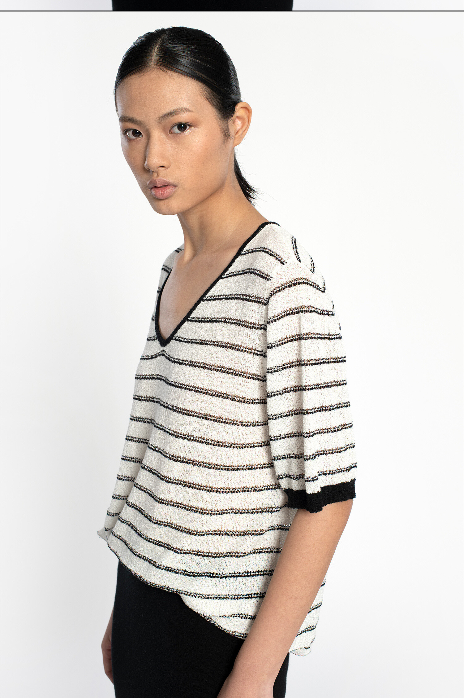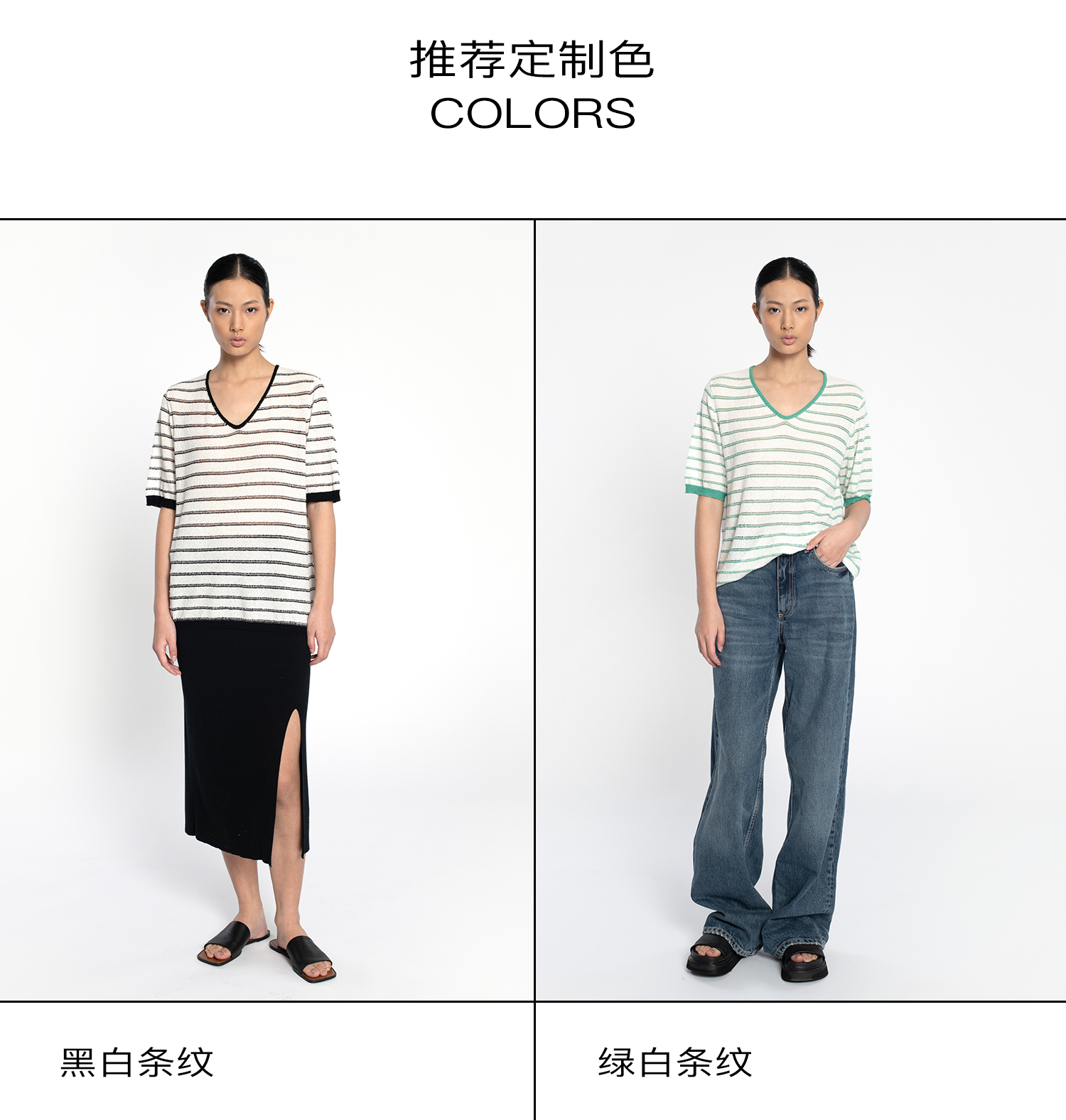 322工房新意短毛绒羊毛圈圈纱条纹针织2023春夏宽松休闲毛衣B012