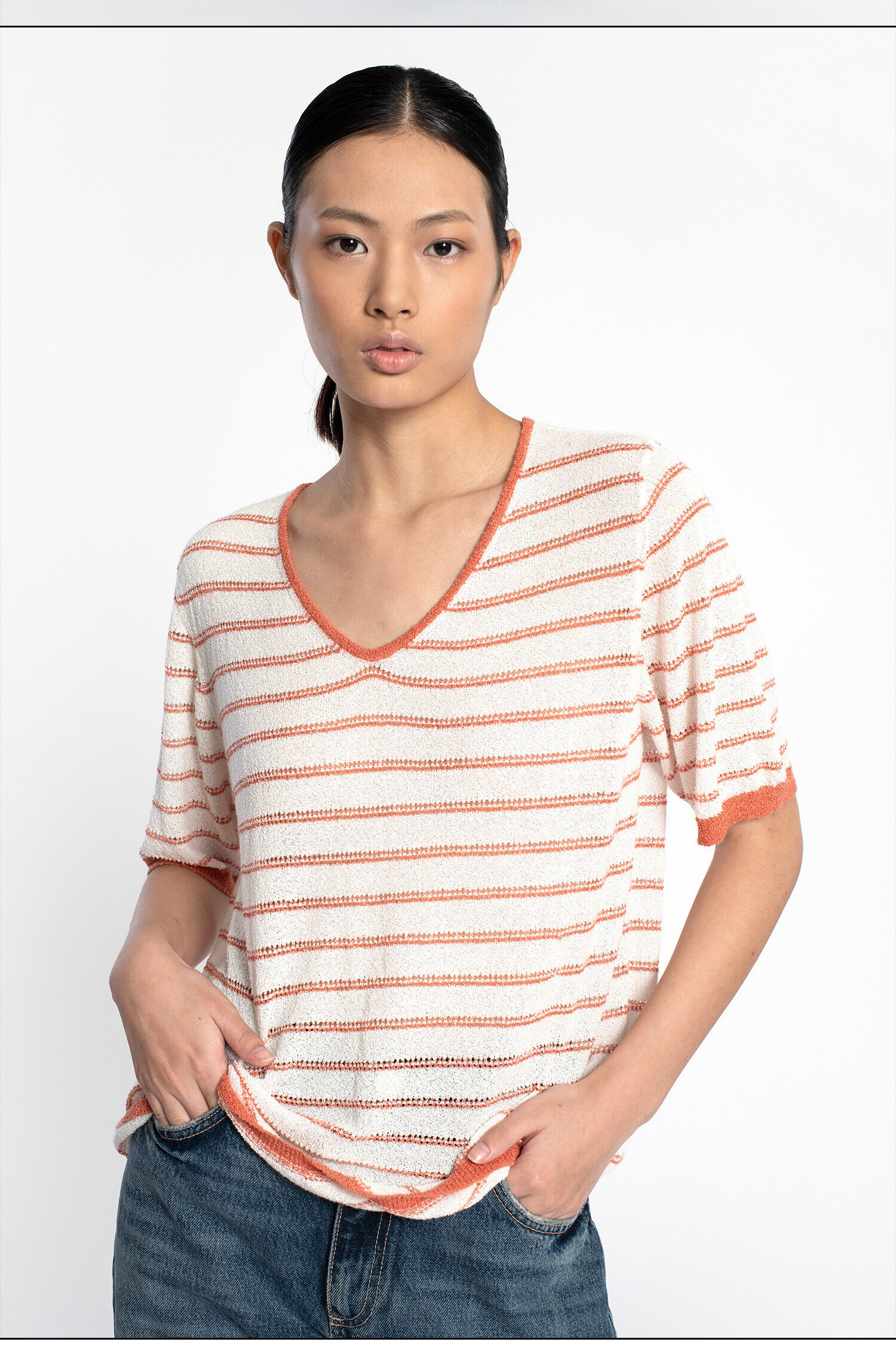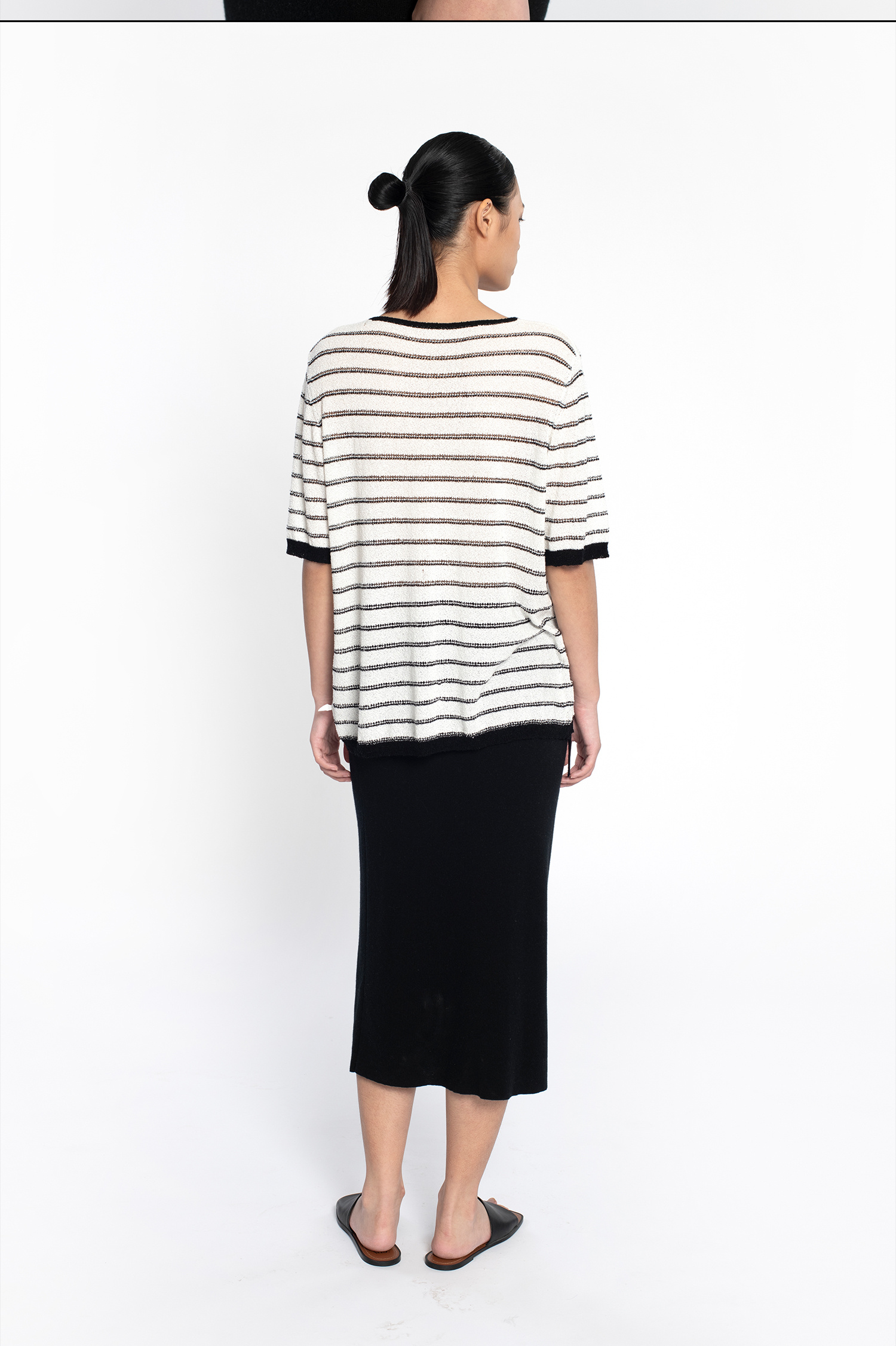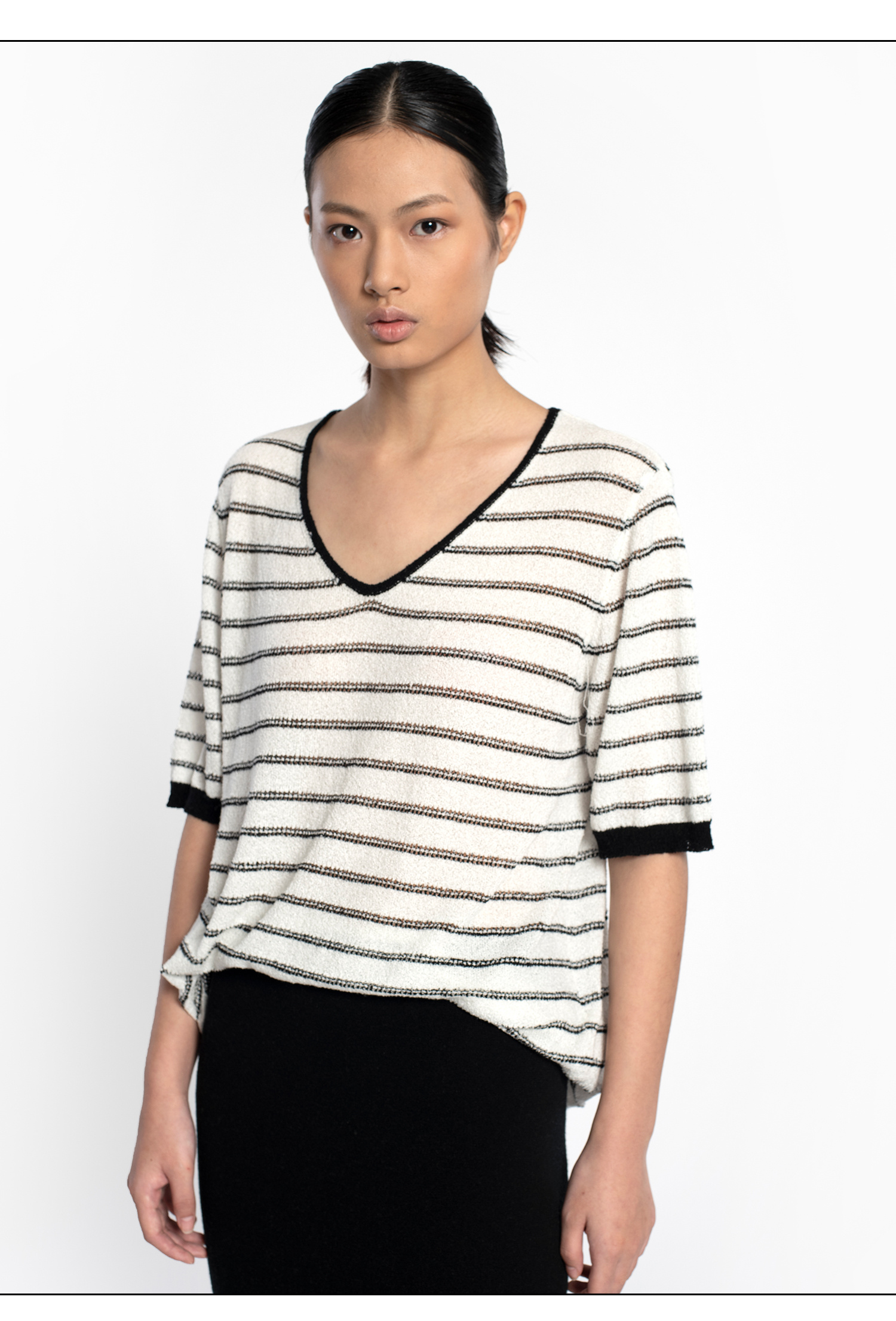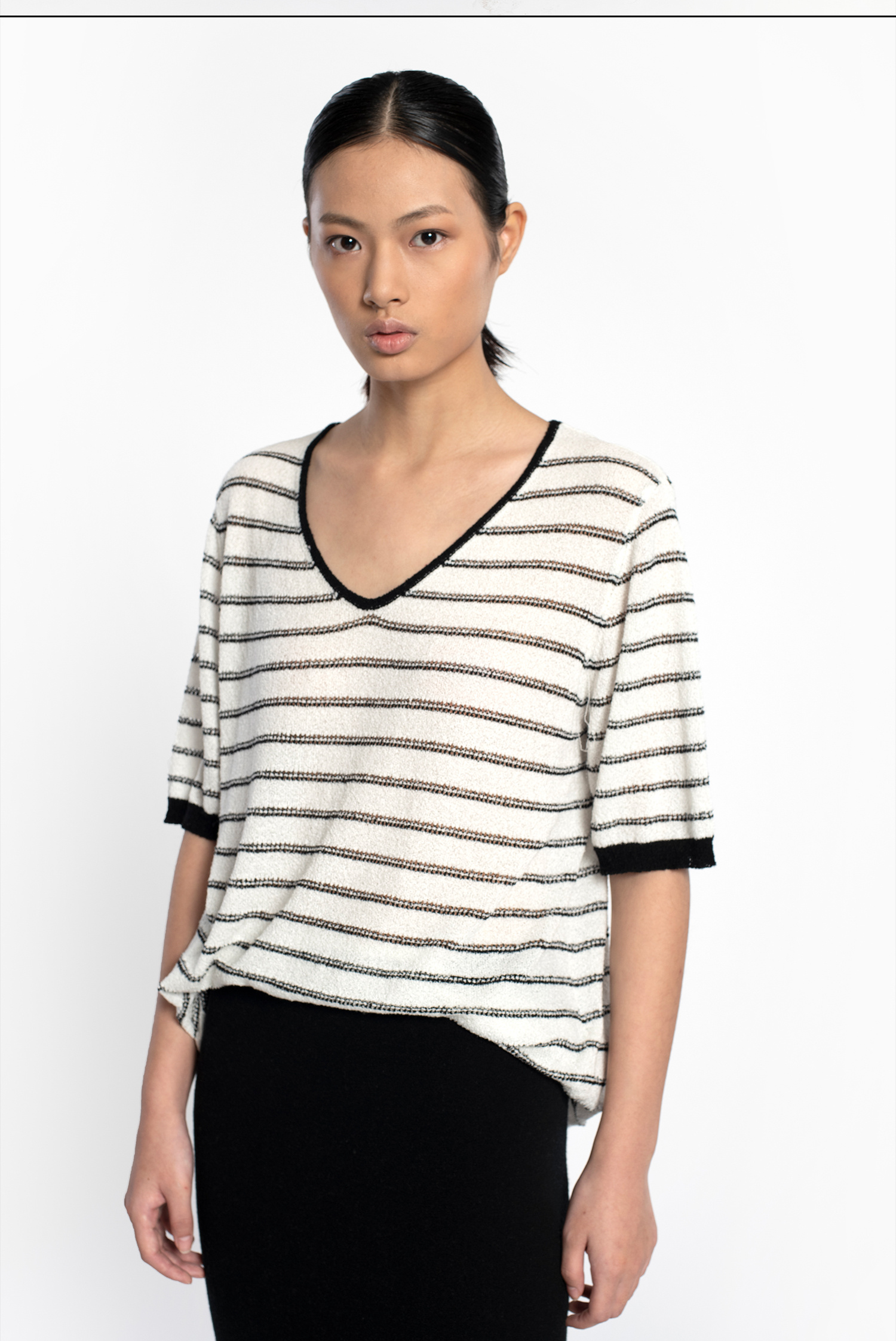 322工房新意短毛绒羊毛圈圈纱条纹针织2023春夏宽松休闲毛衣B012