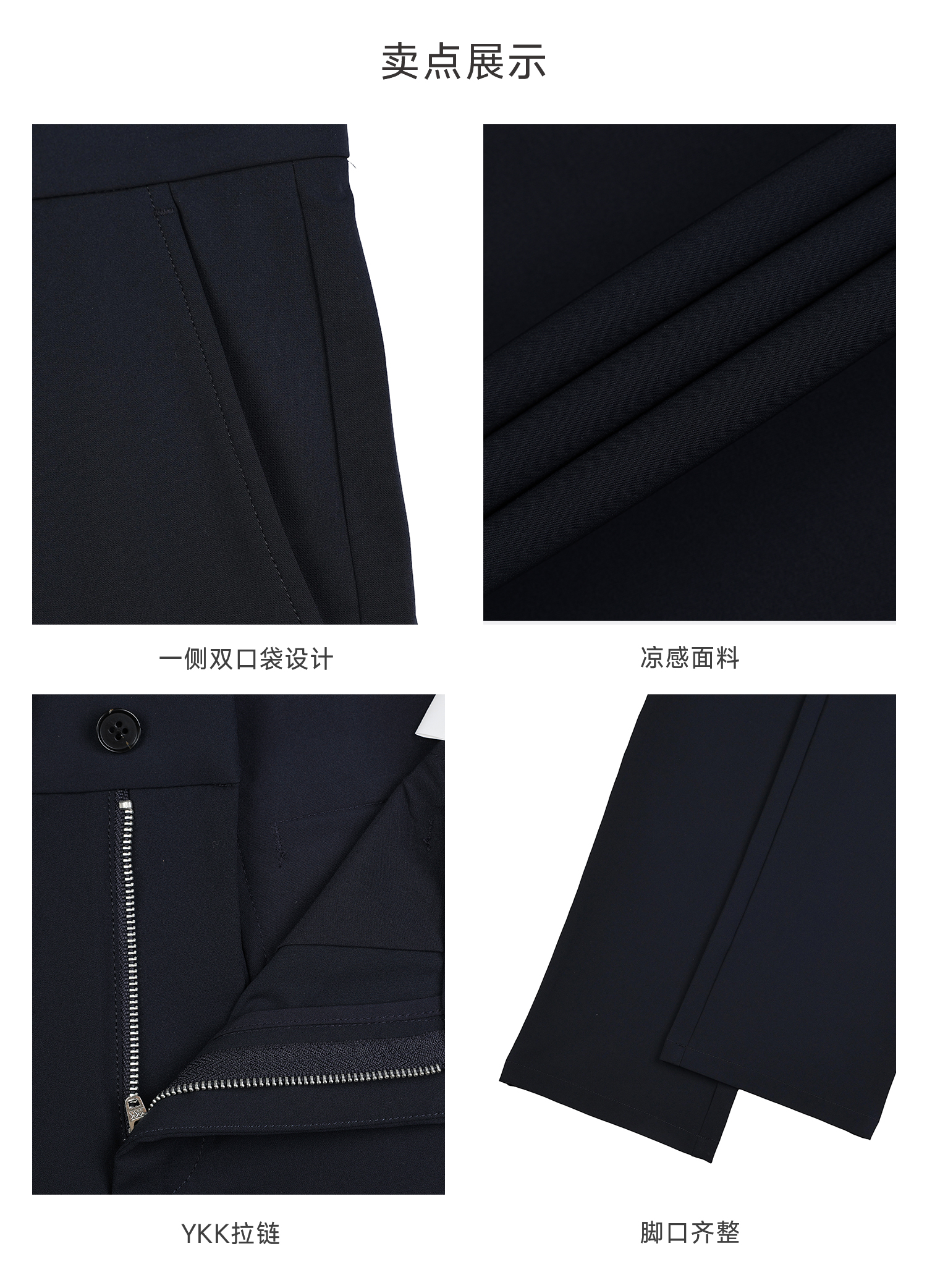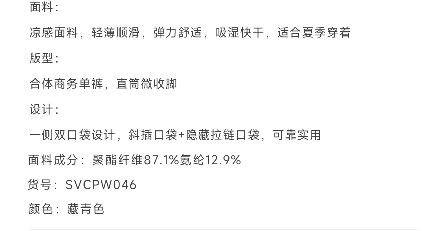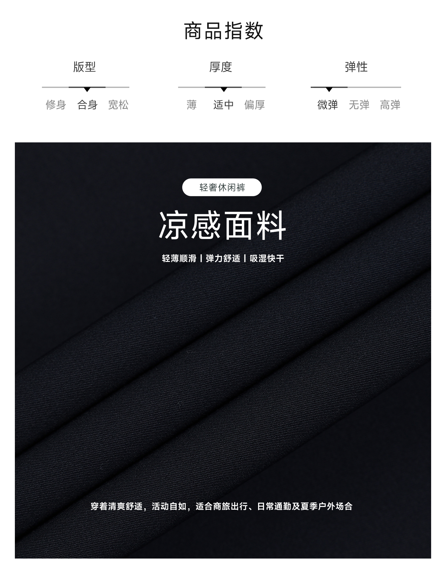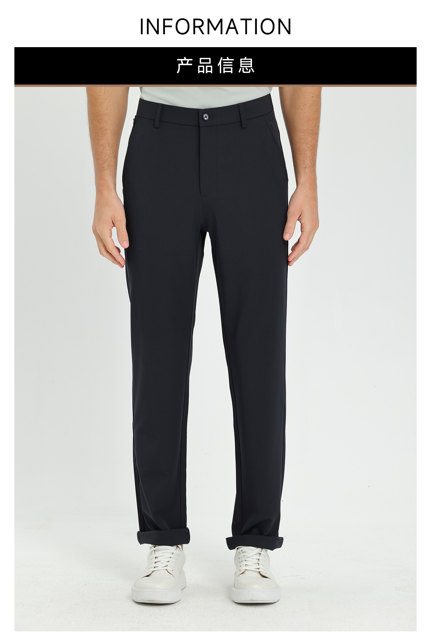callisto藏青凉感弹力直筒微收脚休闲裤