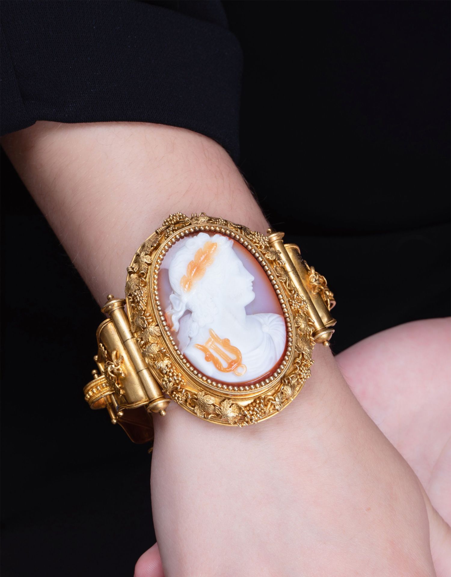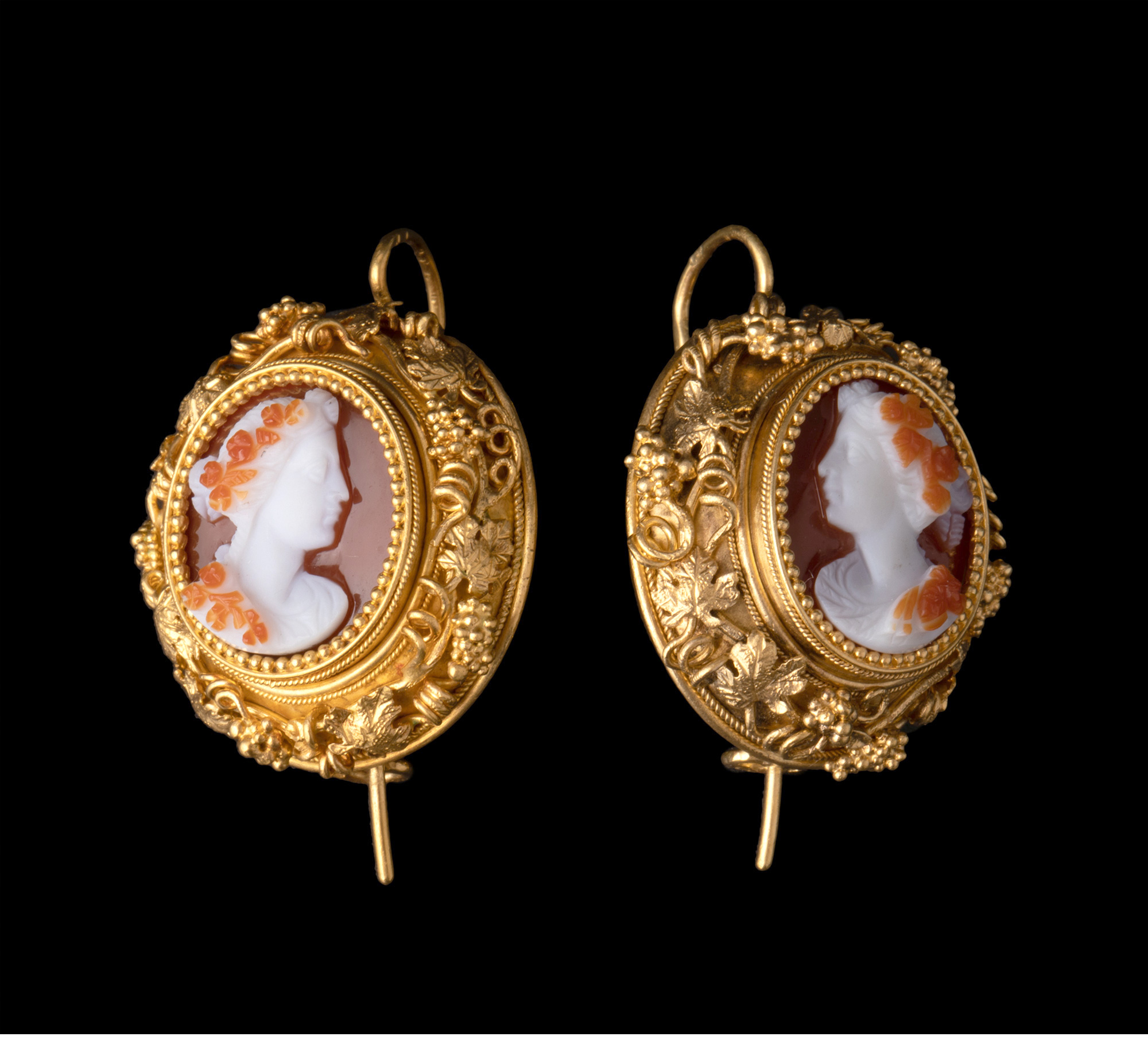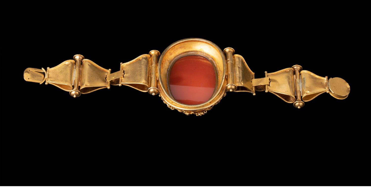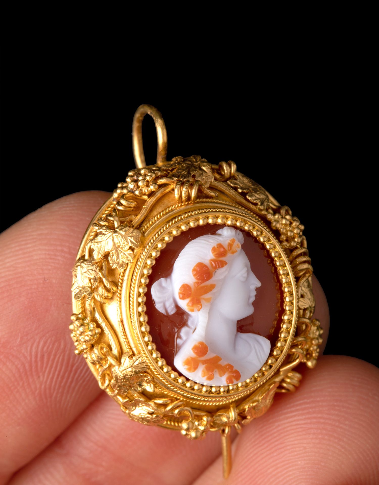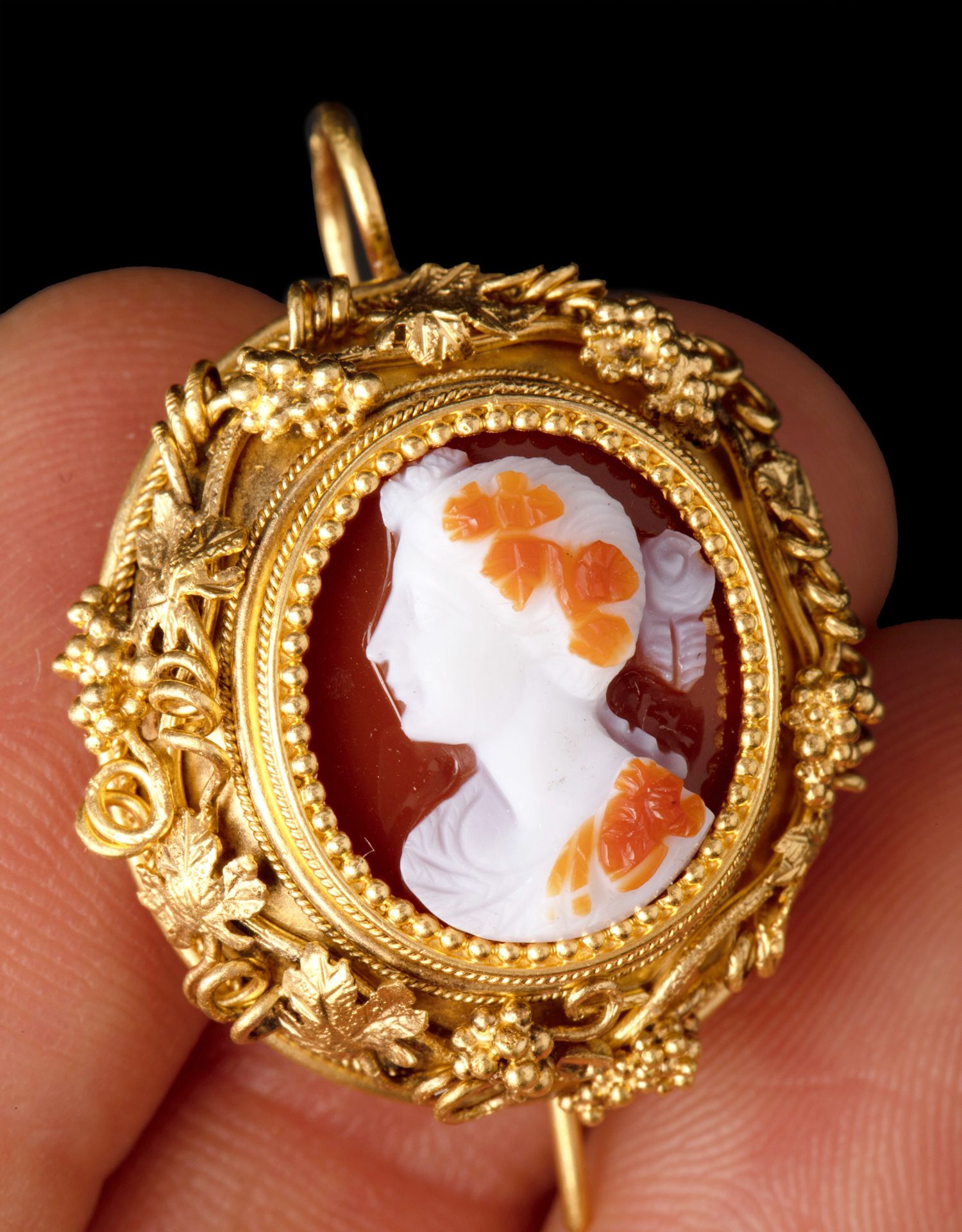独角鹿西洋古董首饰套装18k黄金镶玛瑙Cameo浮雕圆章手镯胸针耳饰