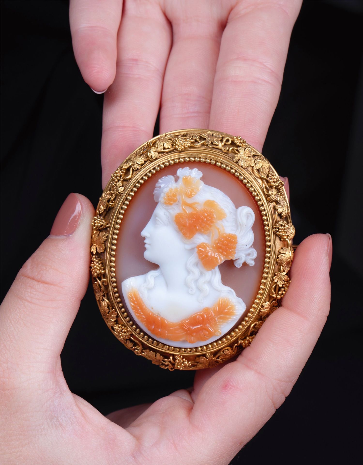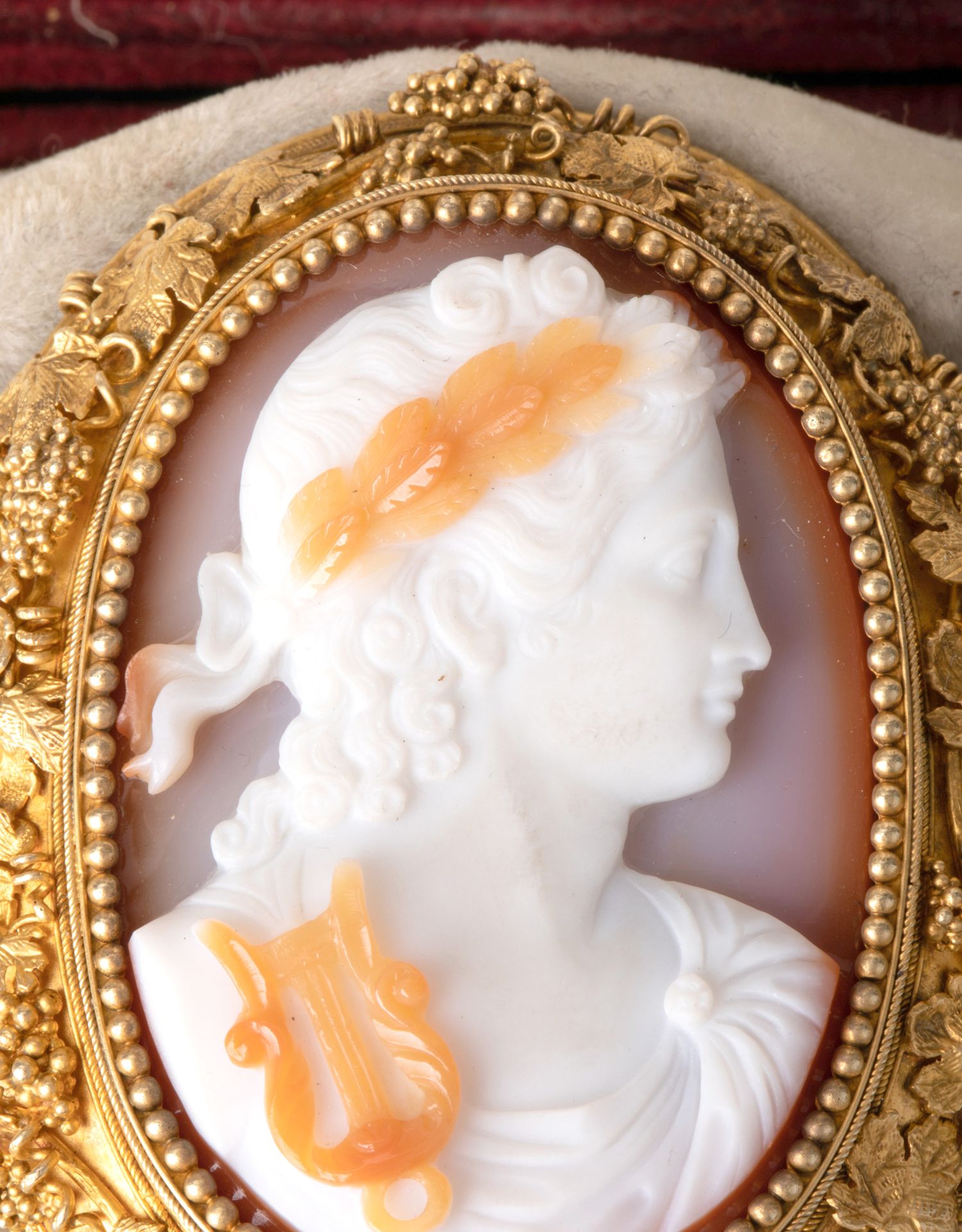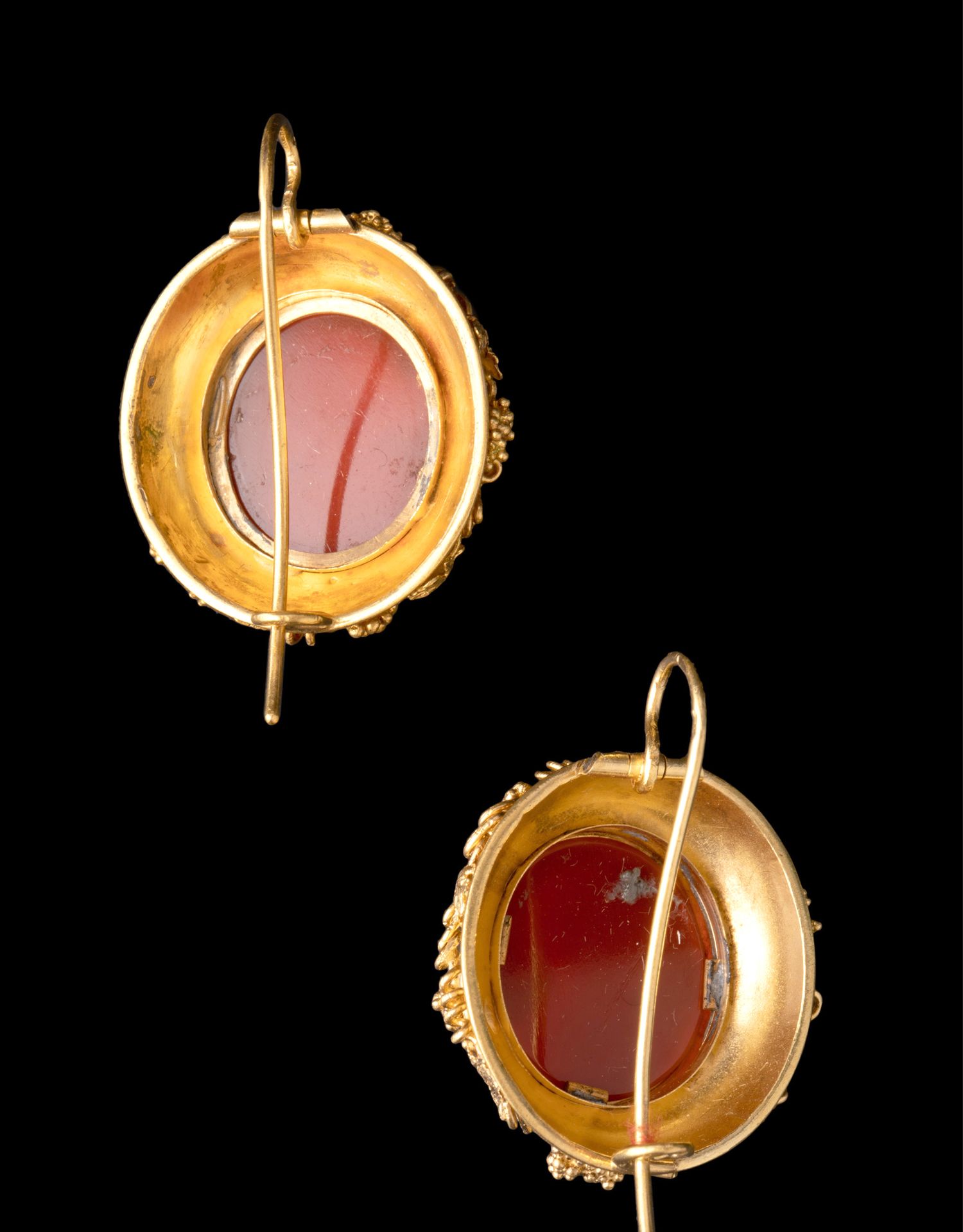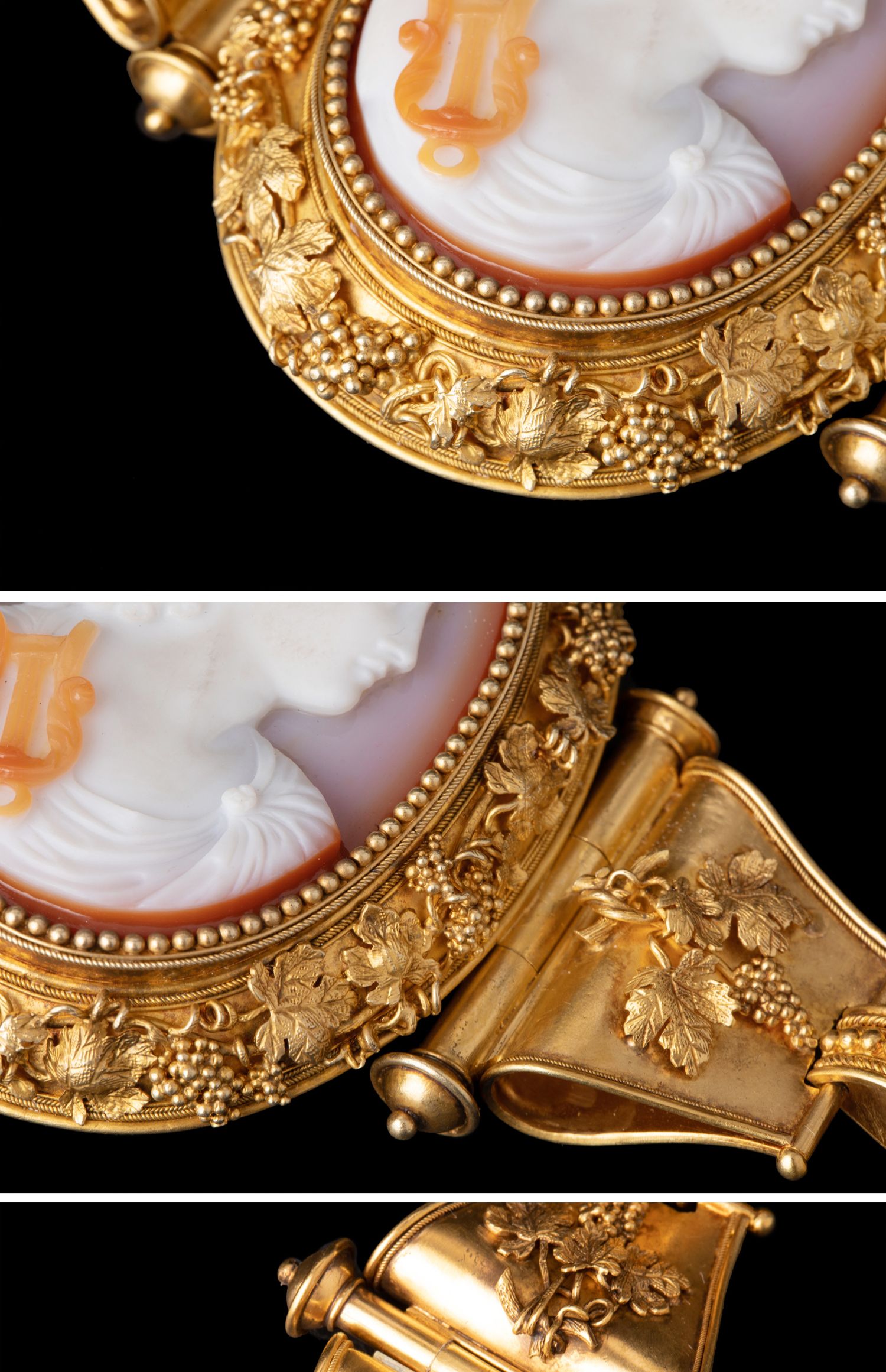 独角鹿西洋古董首饰套装18k黄金镶玛瑙Cameo浮雕圆章手镯胸针耳饰
