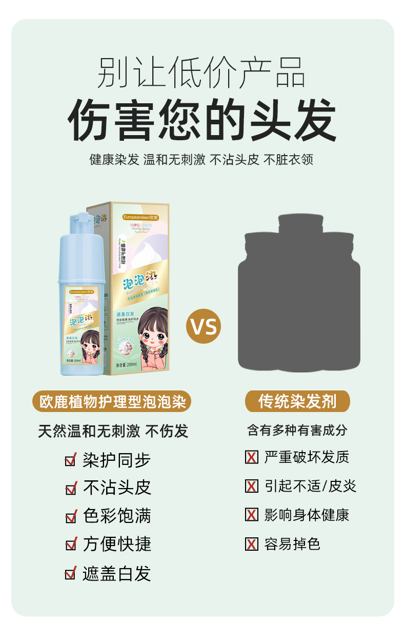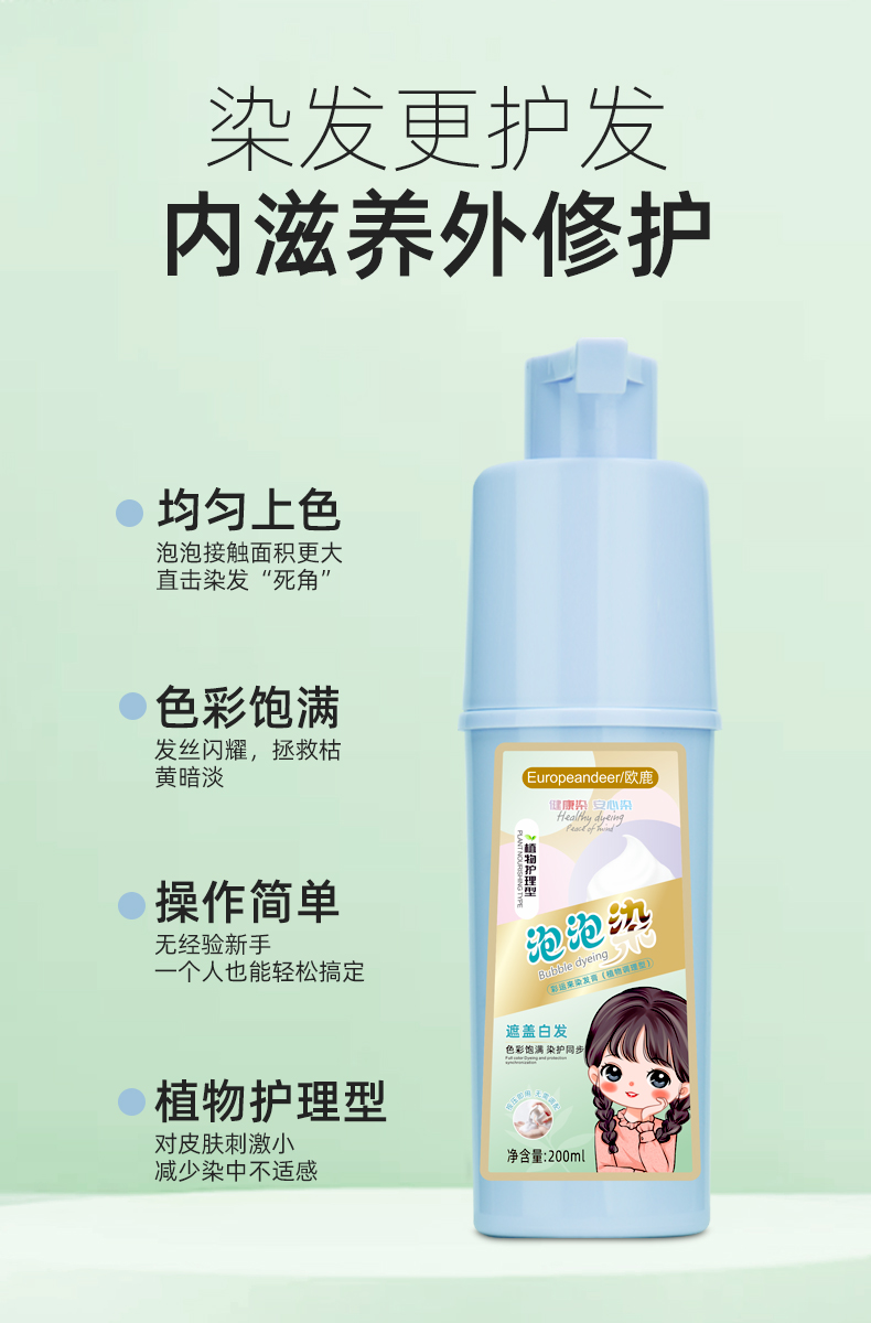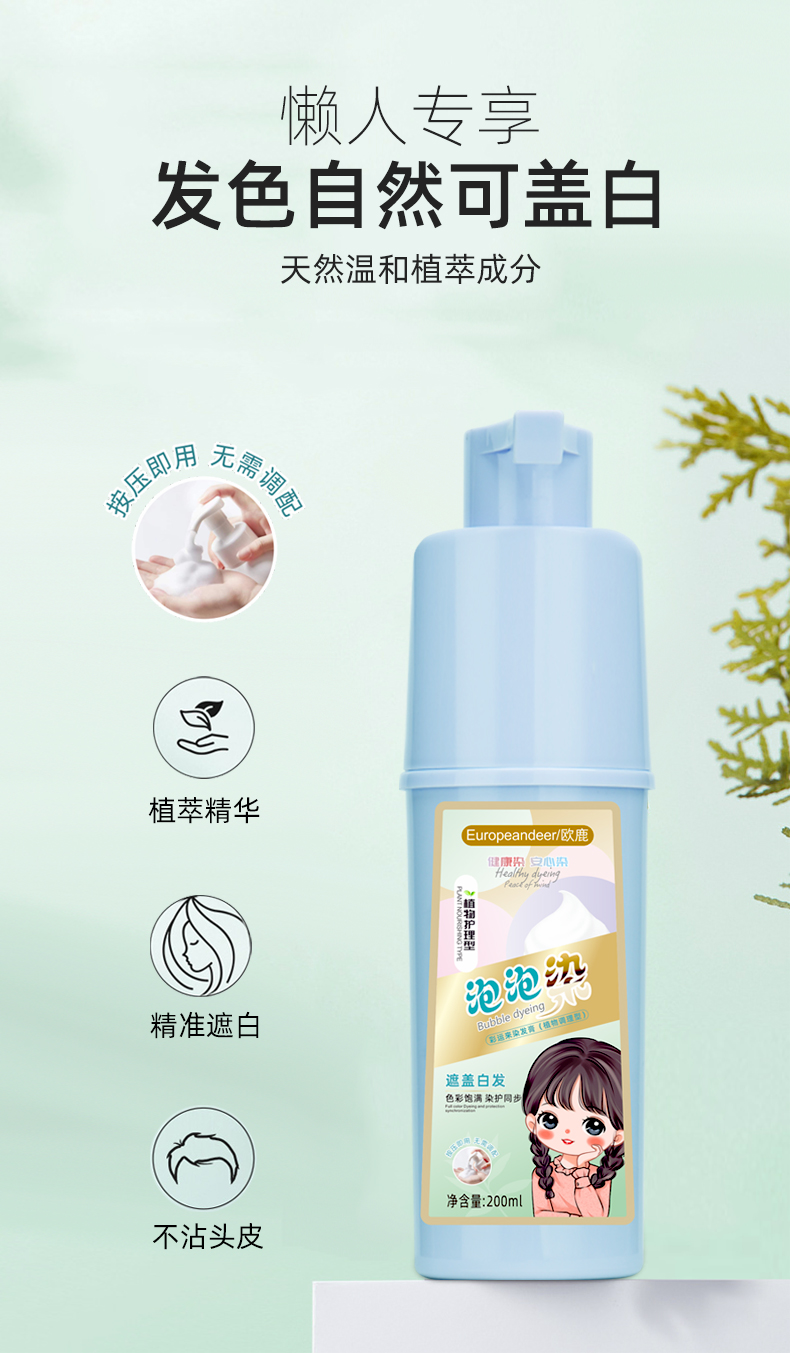 植物护理型泡泡染 温和不刺激 轻松染发 固色持久 方便快捷 200ML/瓶