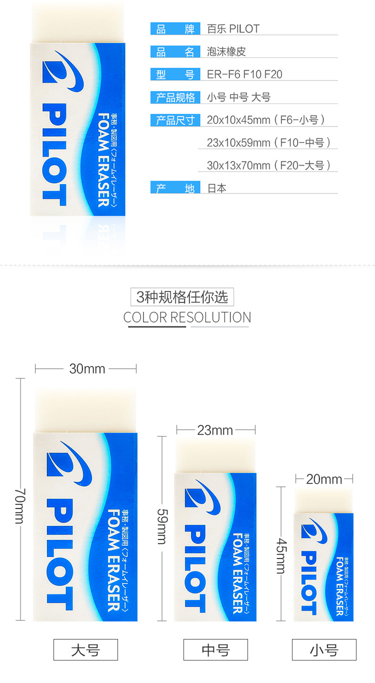 日本百乐(PILOT)泡沫橡皮/干净/学生超净橡皮擦 中号 ER-F10原装进口