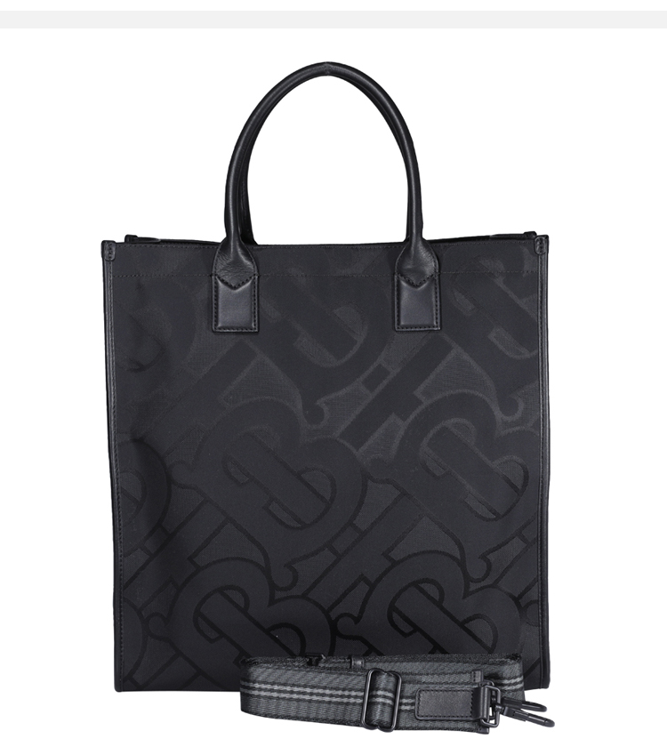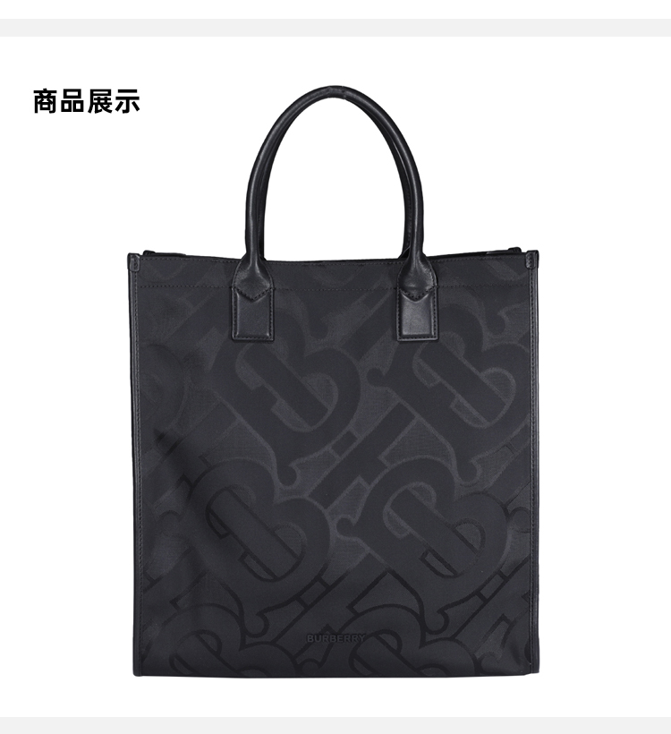 BURBERRY 博柏利 专属标识再生聚酯纤维提花托特包 男士手提包 黑色 8043691 A1189