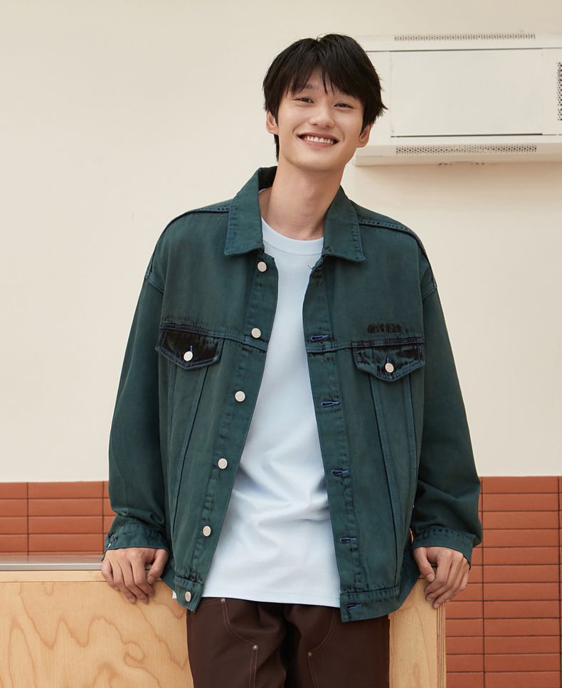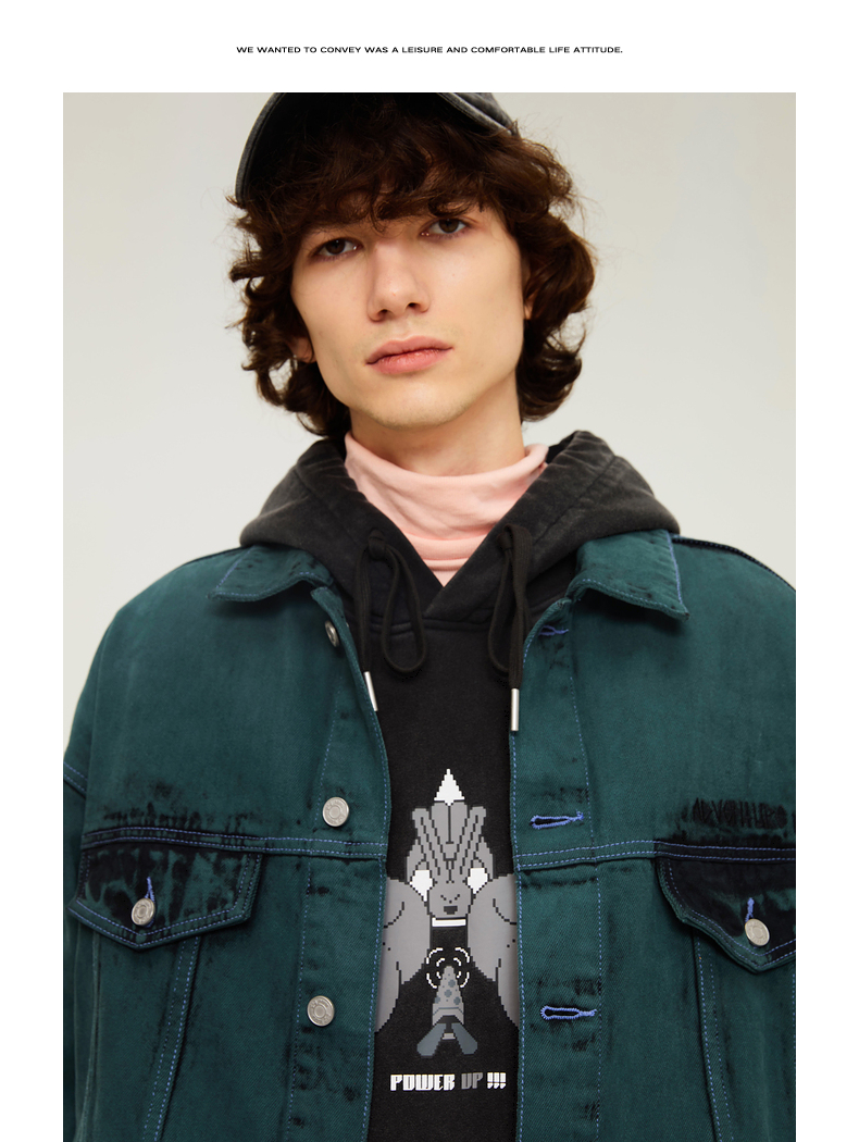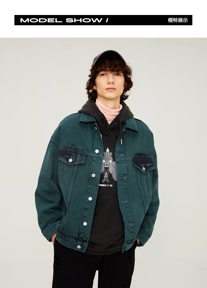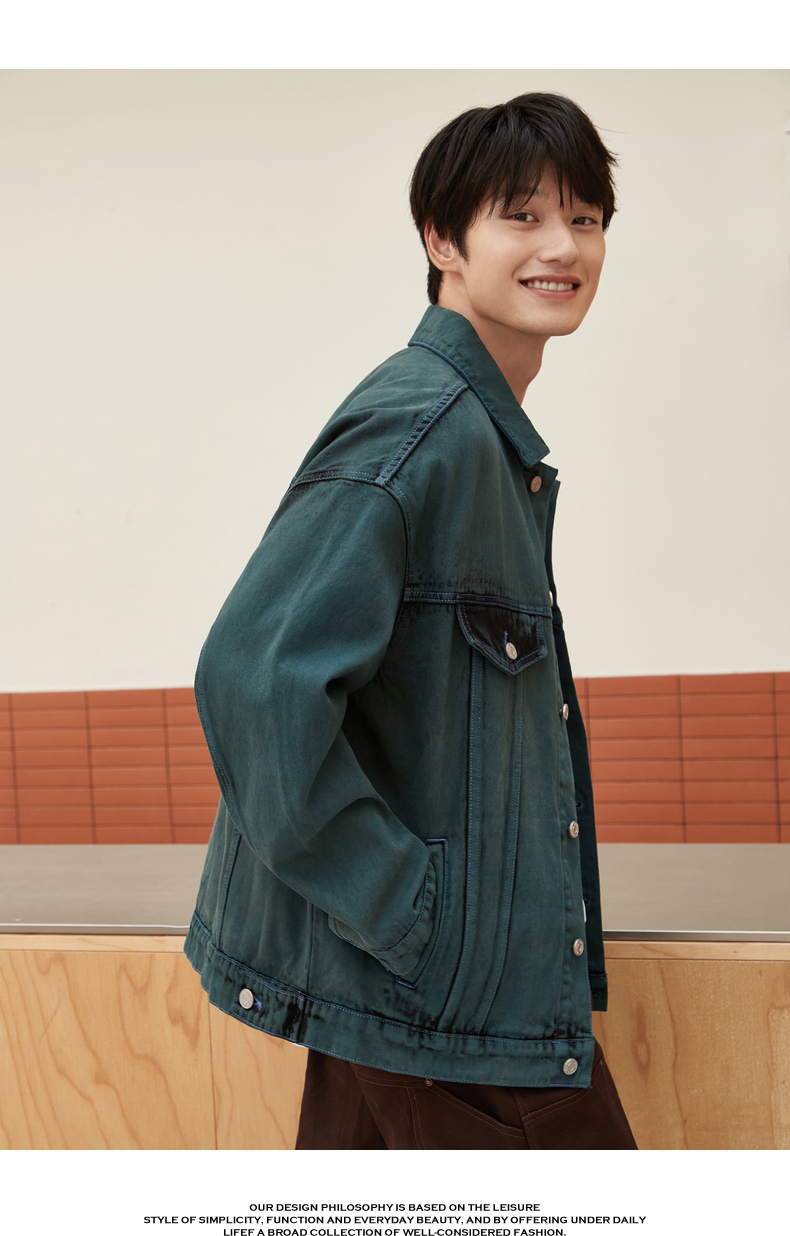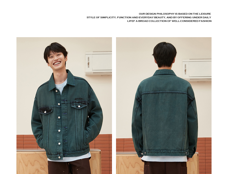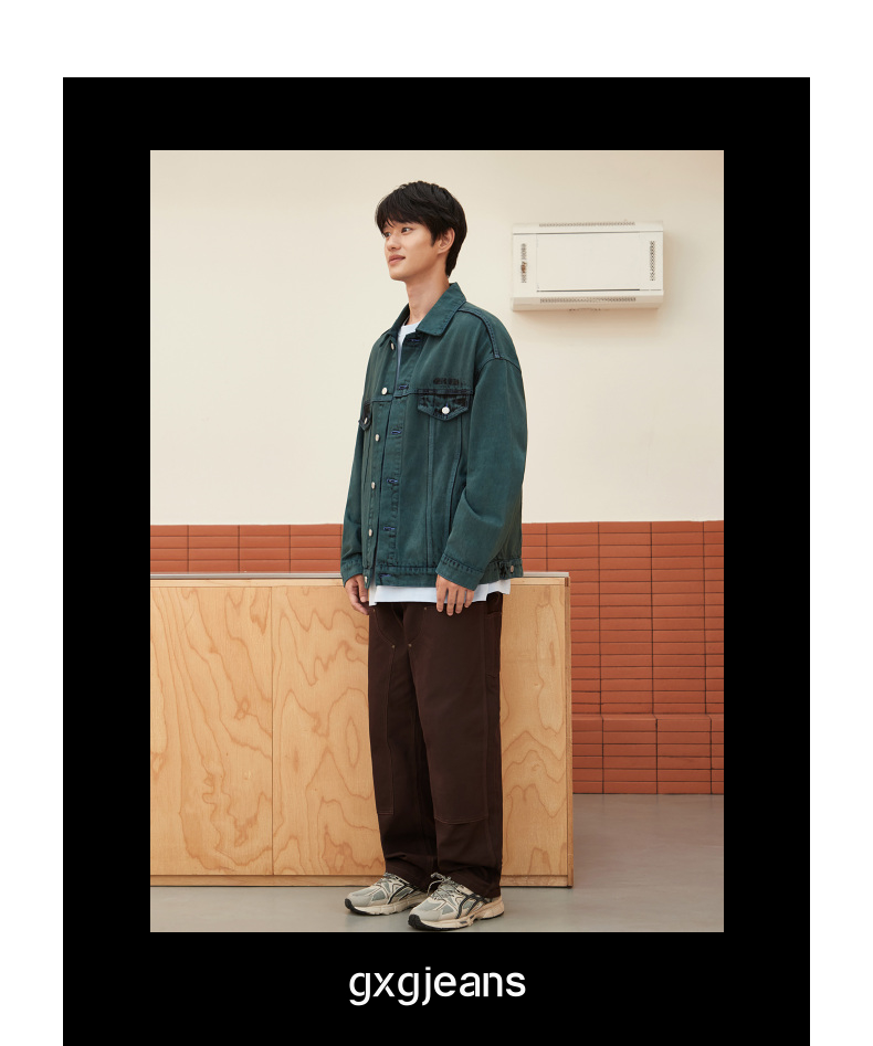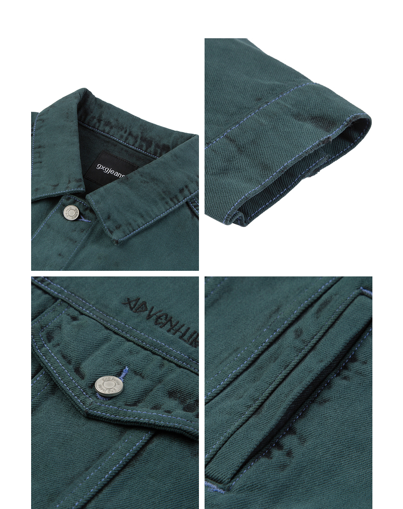gxgjeans男装秋季墨绿色翻领夹克刺绣上衣牛仔夹克外套男JE1210068L