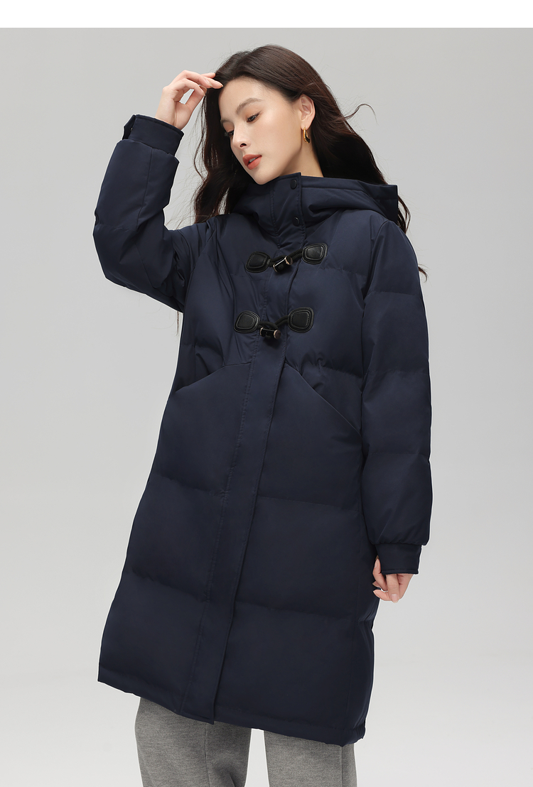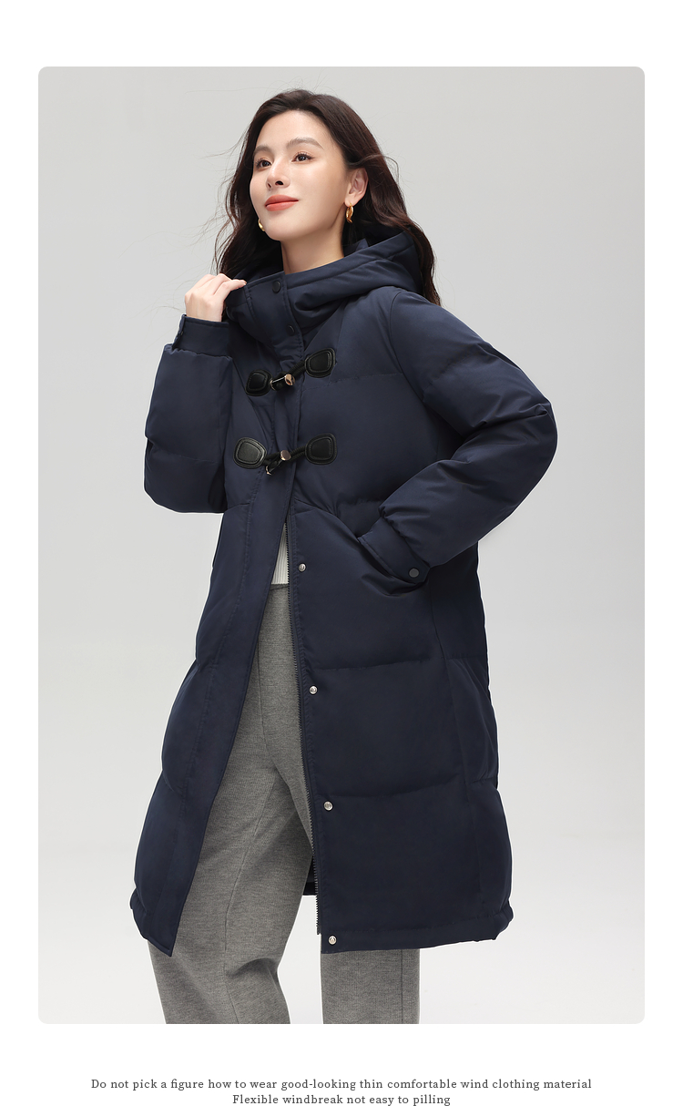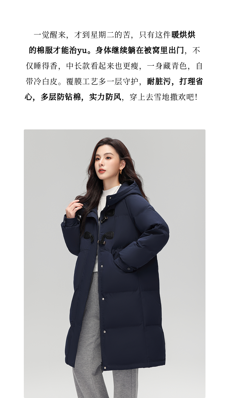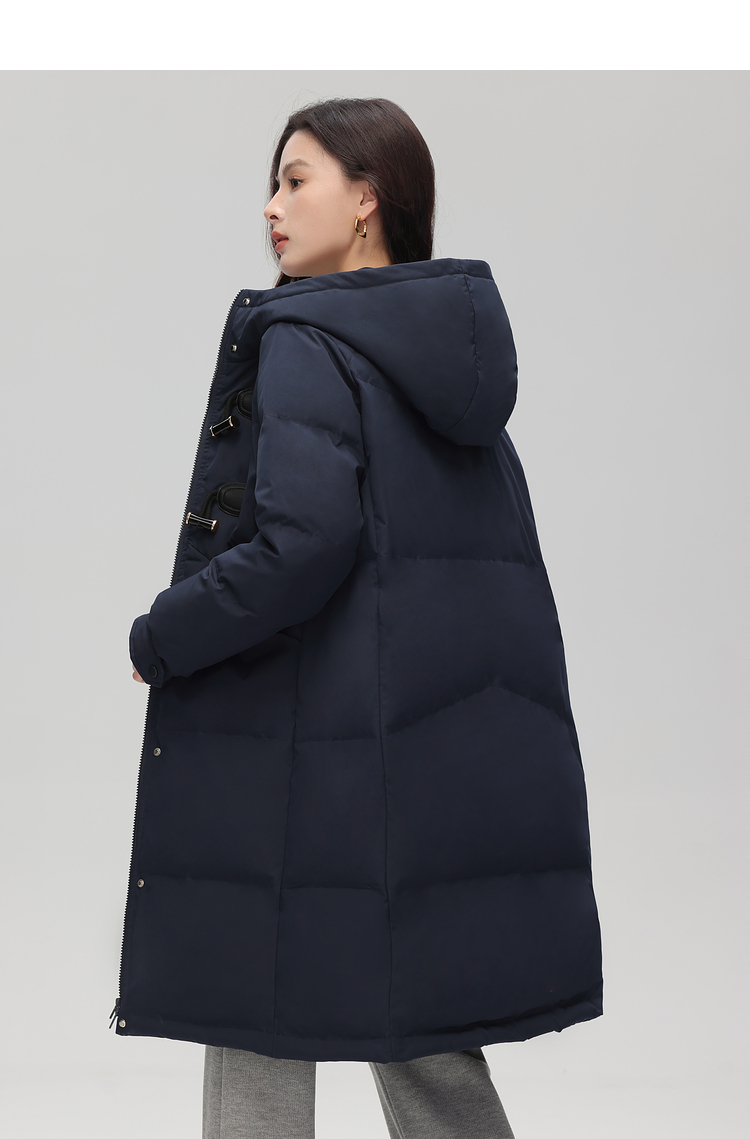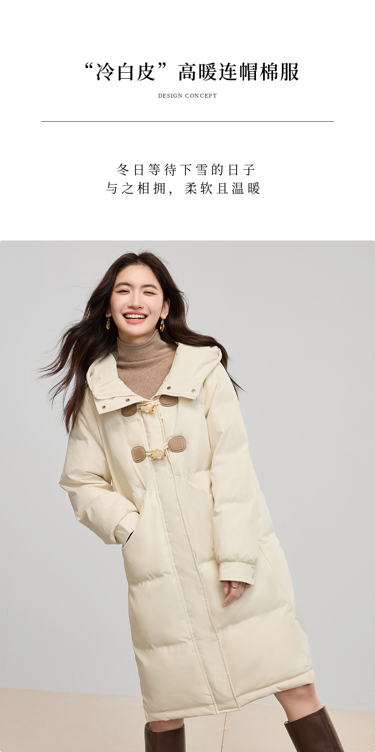 【年终特卖】熙世界牛角扣羽绒棉服女冬季2025年新款中长款连帽棉衣棉袄厚外套