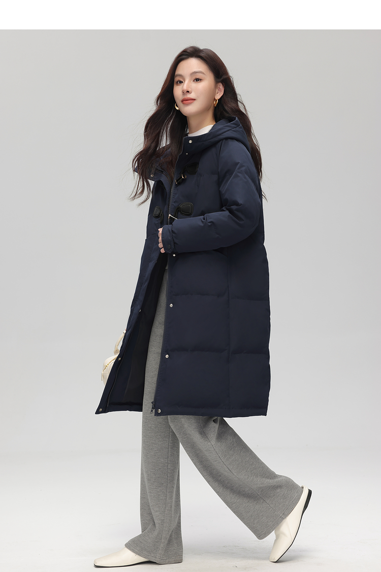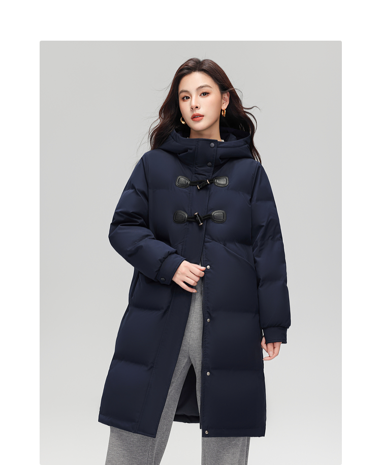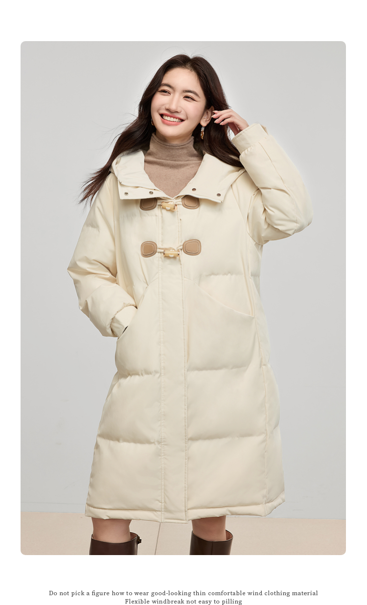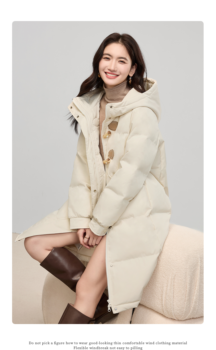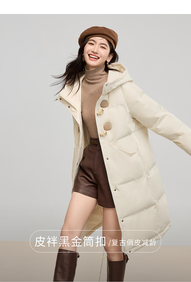 【年终特卖】熙世界牛角扣羽绒棉服女冬季2025年新款中长款连帽棉衣棉袄厚外套