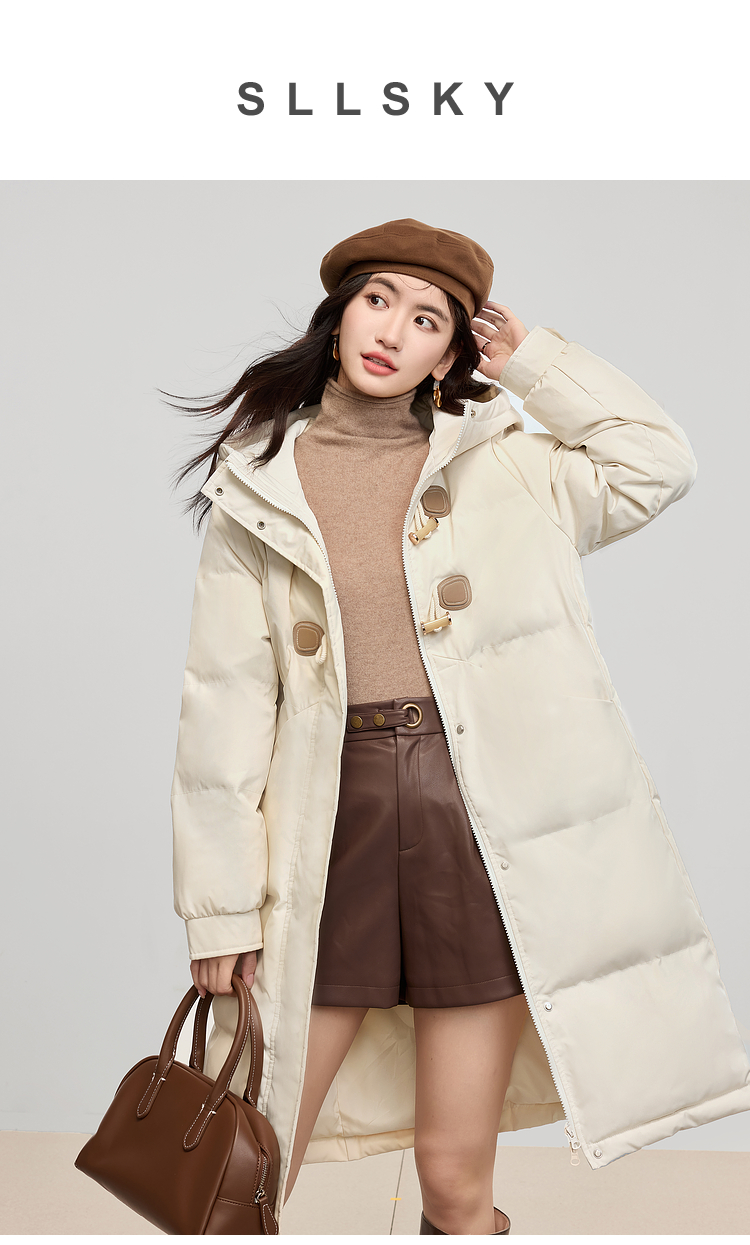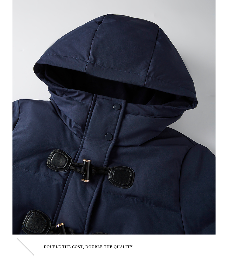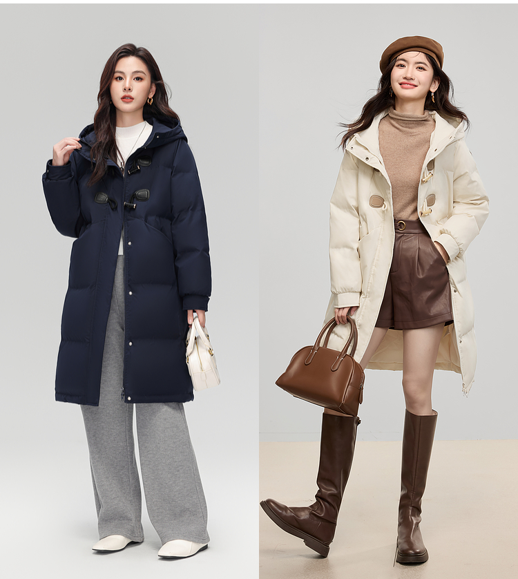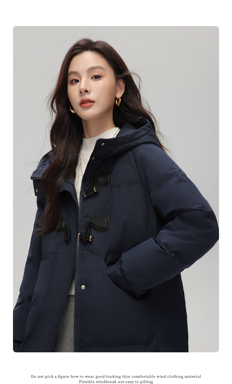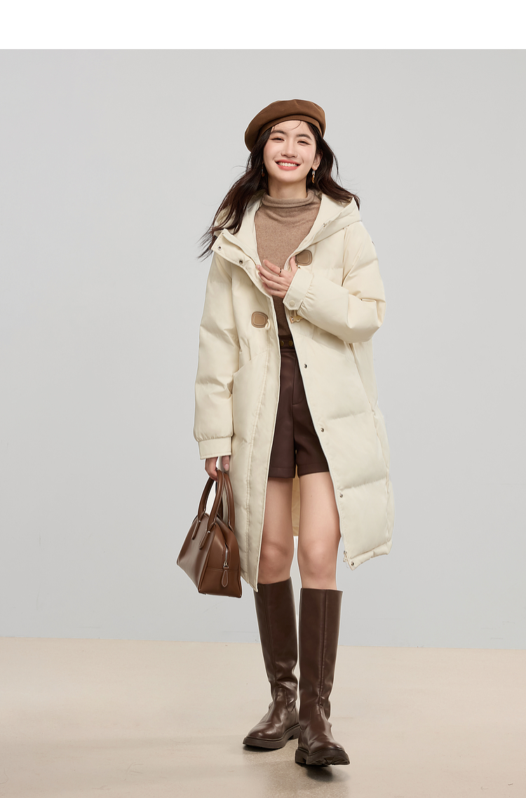 【年终特卖】熙世界牛角扣羽绒棉服女冬季2025年新款中长款连帽棉衣棉袄厚外套