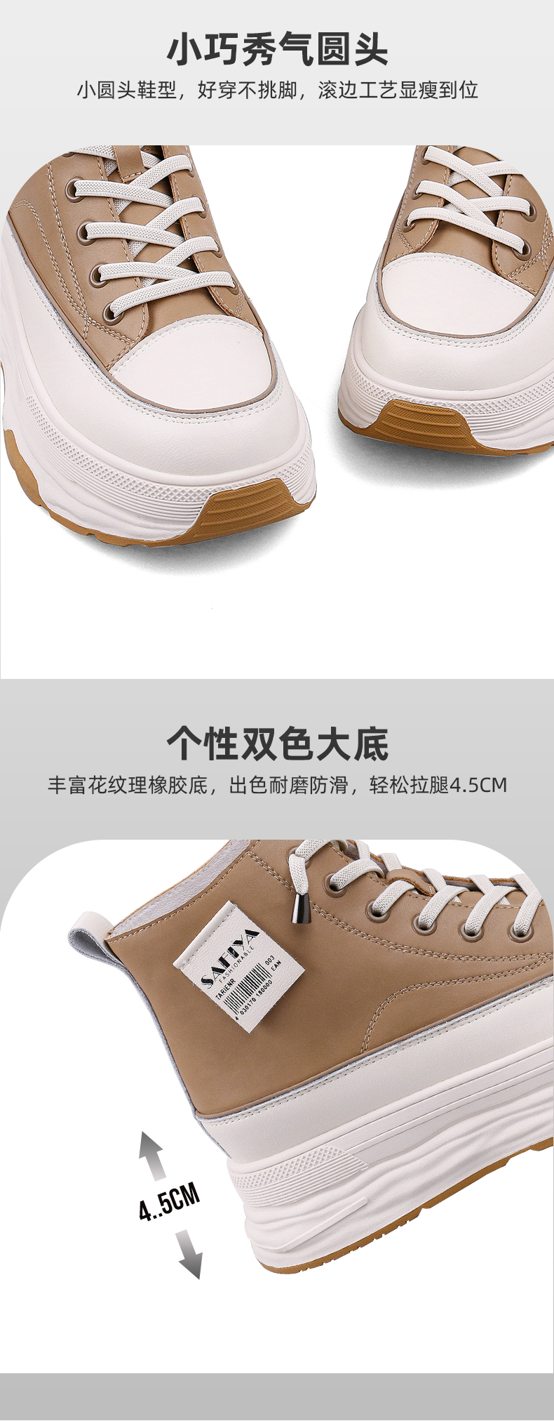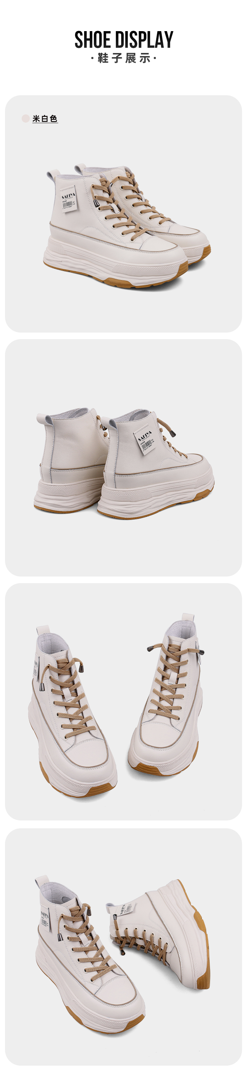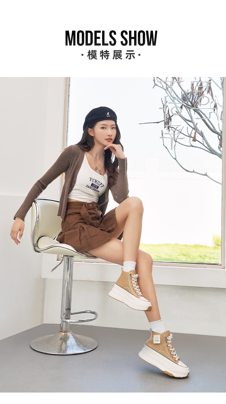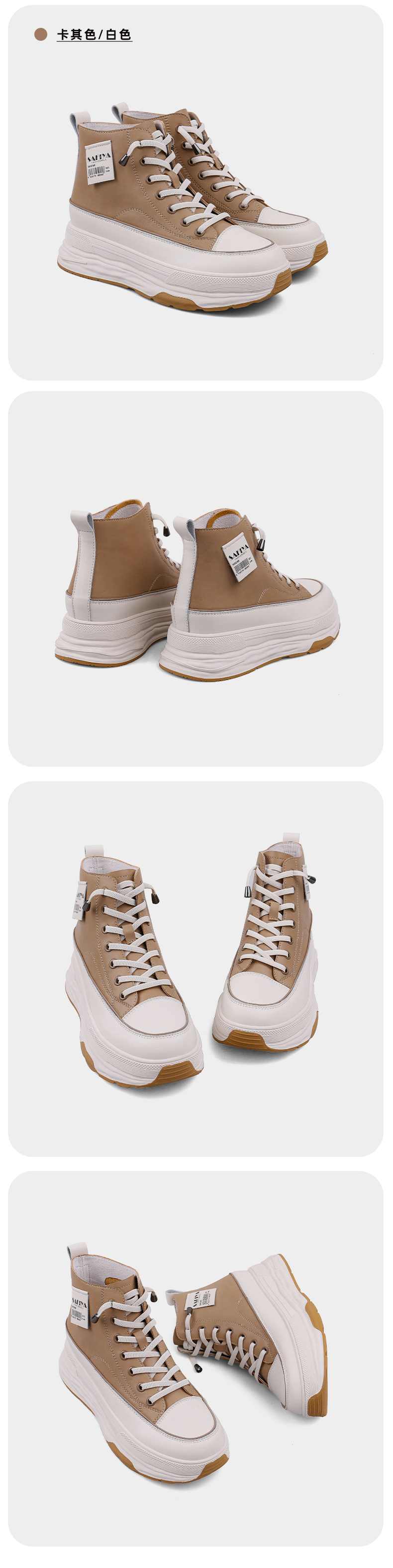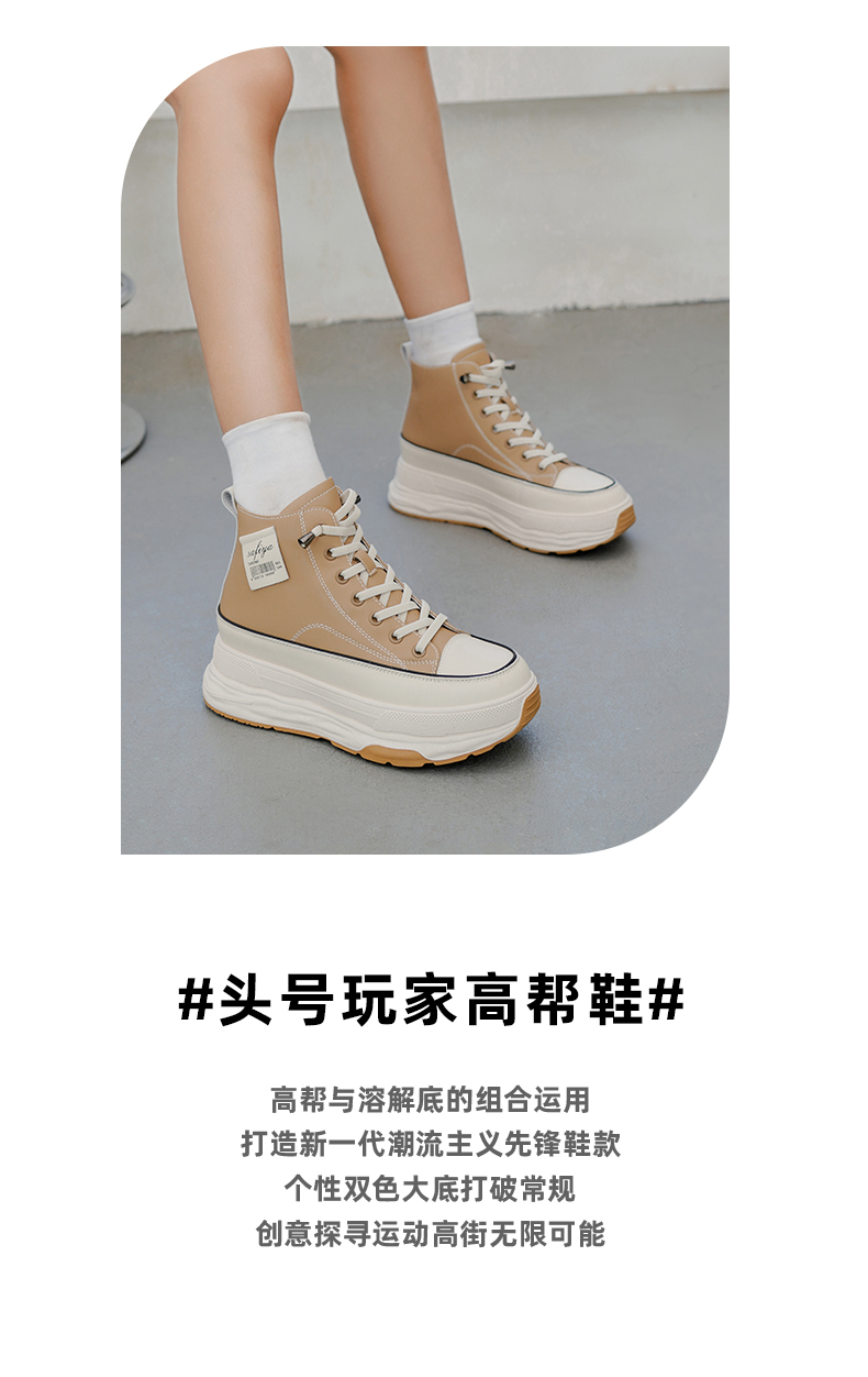 Safiya/索菲娅 网红百搭休闲2022冬季新款小个子厚底系带高帮鞋 SF24116183