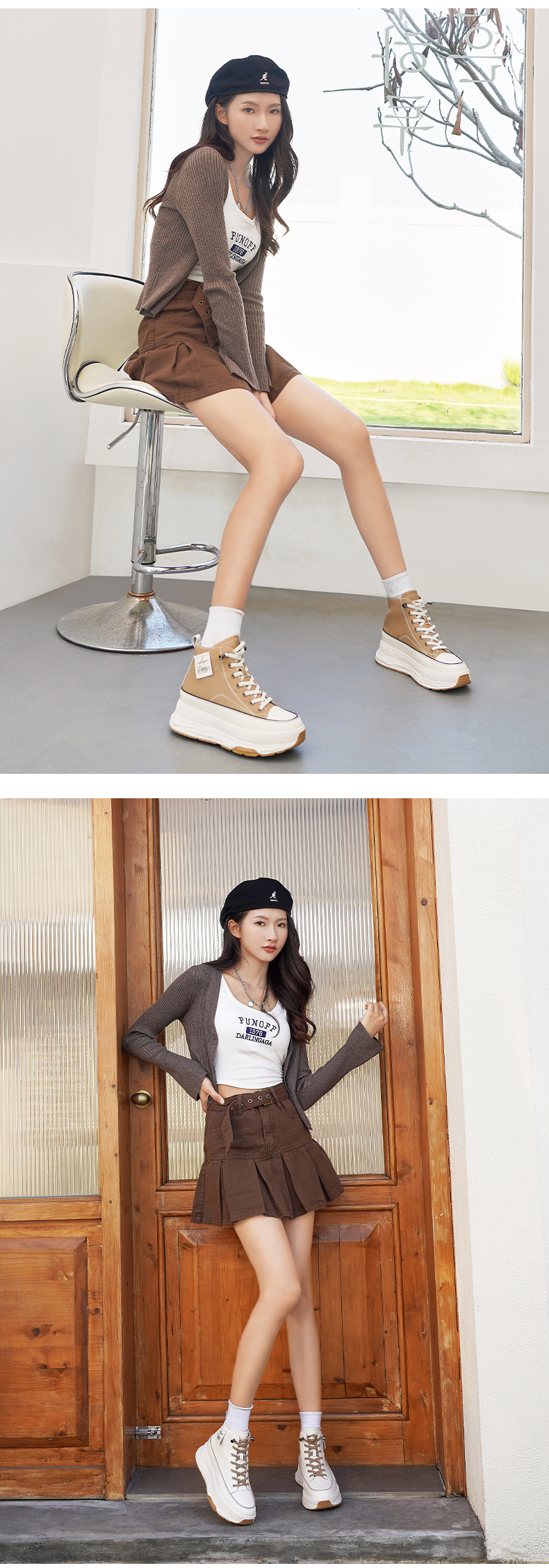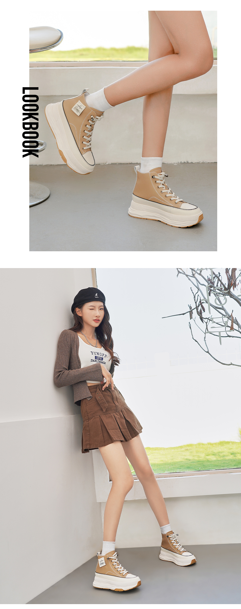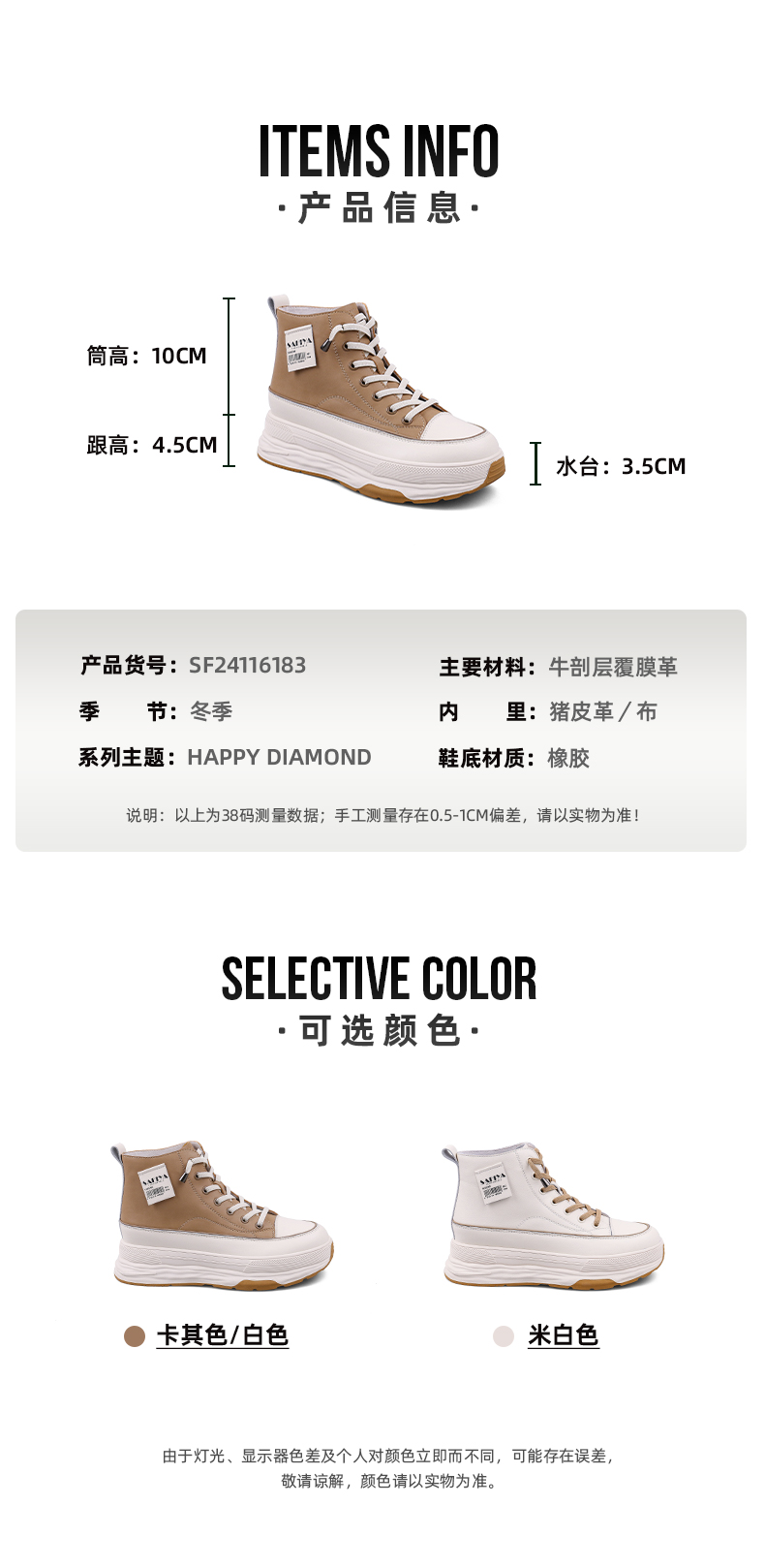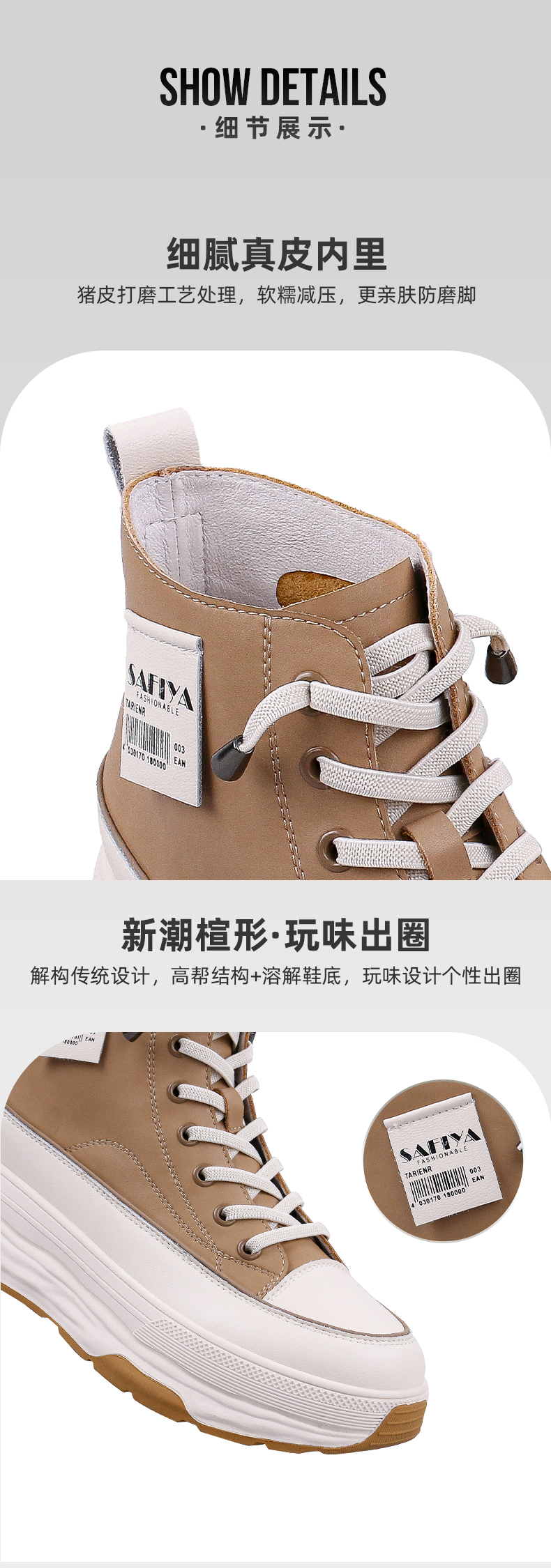 Safiya/索菲娅 网红百搭休闲2022冬季新款小个子厚底系带高帮鞋 SF24116183