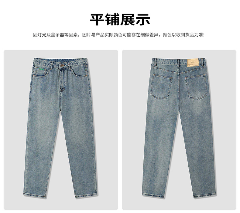 GXG男装【棉混纺水洗】春季复古猫须耐磨宽松直筒休闲男式牛仔裤K&C