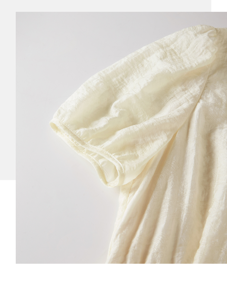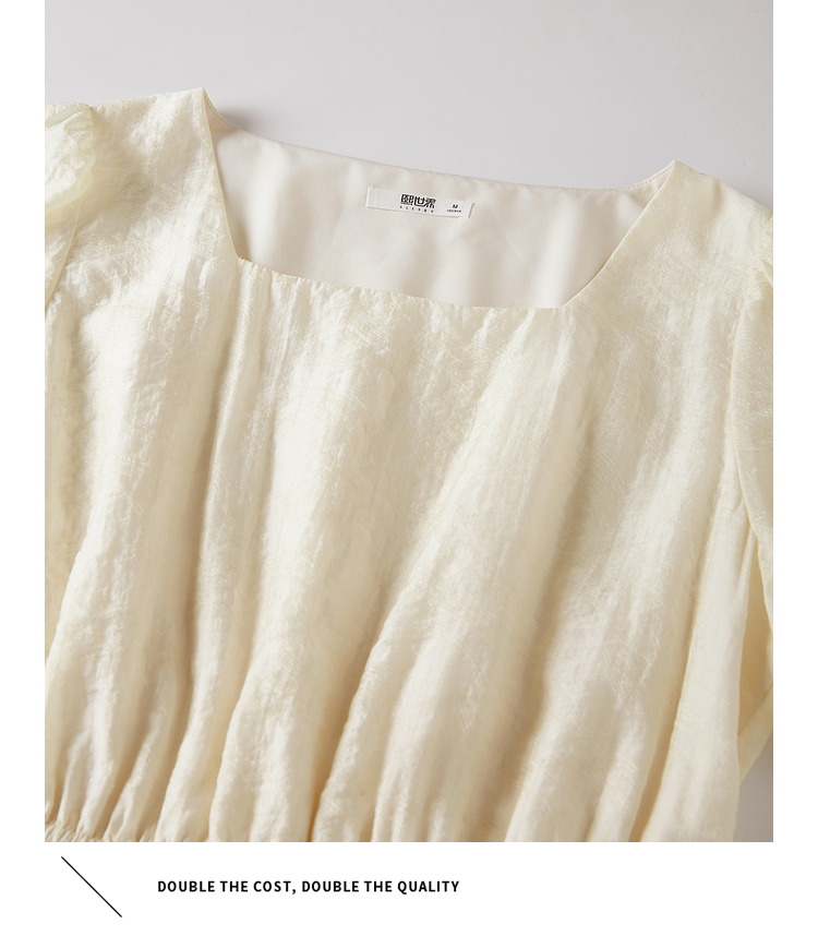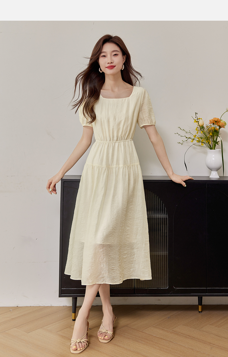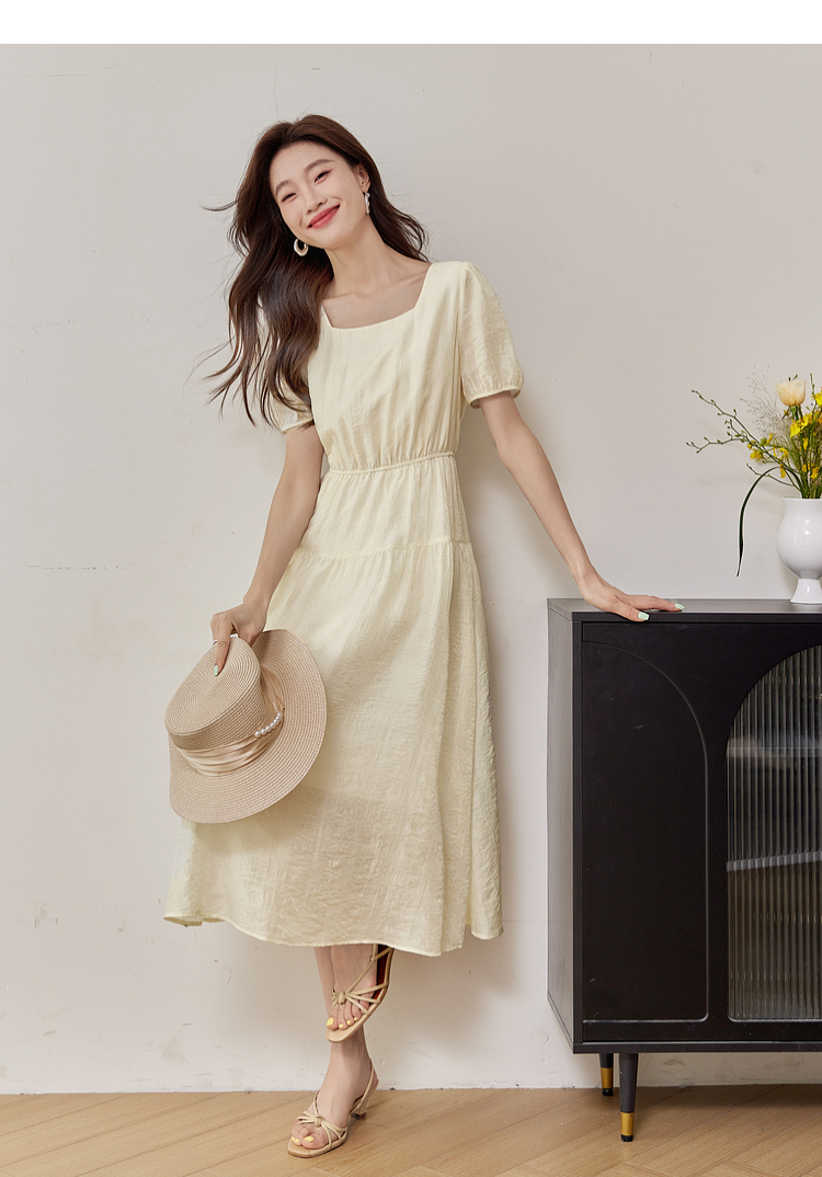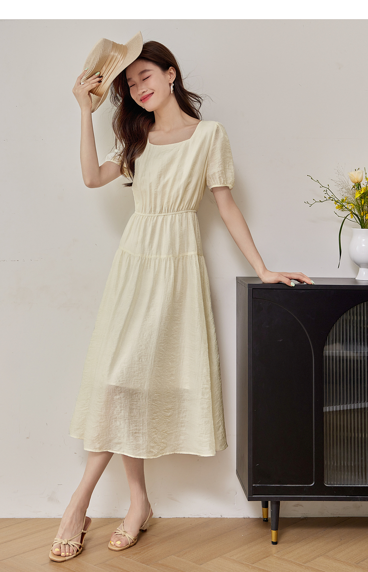 【专属特价】熙世界高级感法式天丝连衣裙夏新款收腰显瘦泡泡袖方领a字裙子
