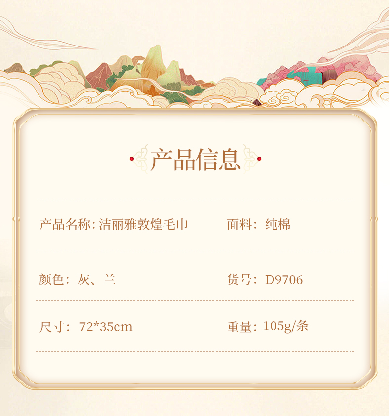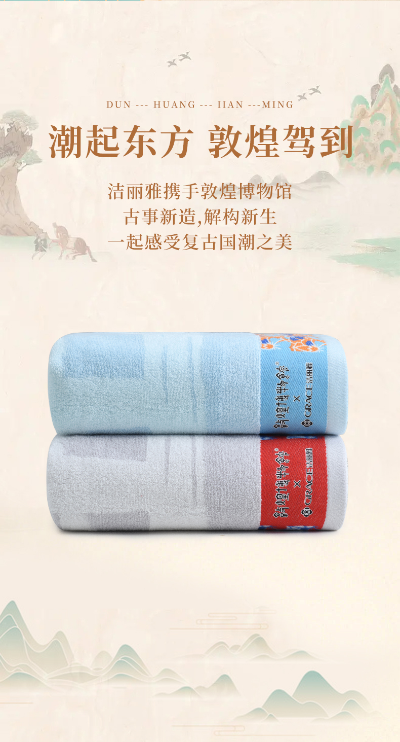 洁丽雅纯棉敦煌联名款毛巾速干成人家用吸水柔软面巾全棉2024新款