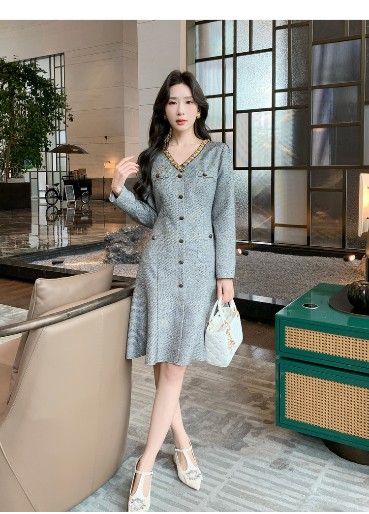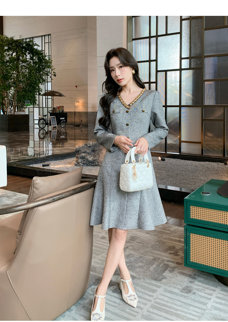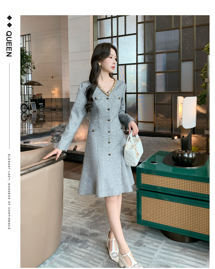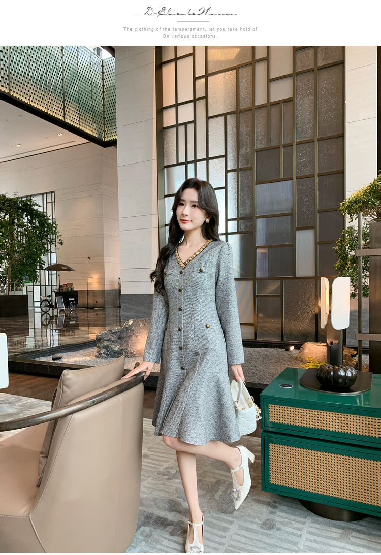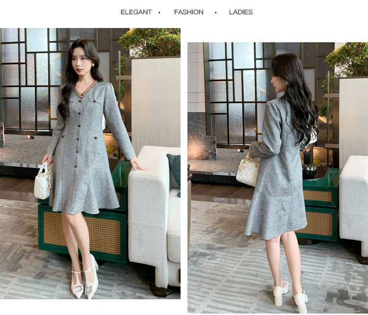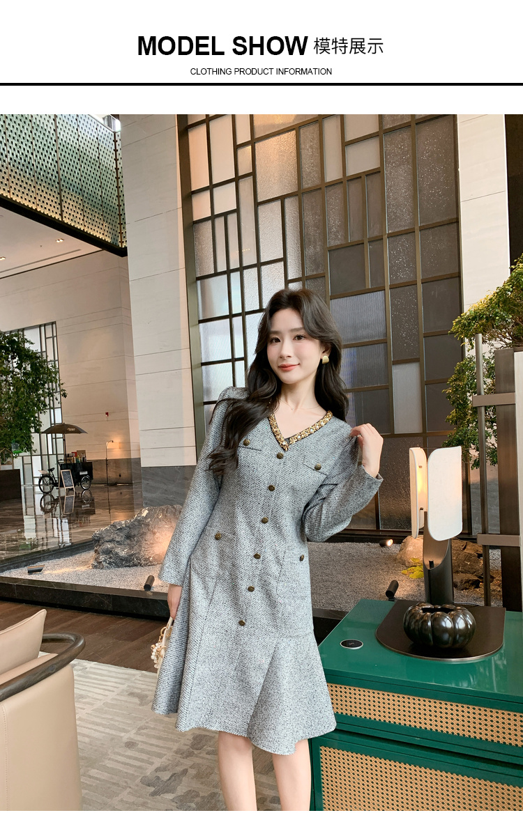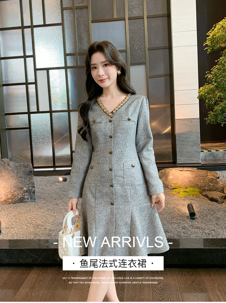 奢姿2024年秋季新款大码女装V领气质裙子胖妹妹鱼尾法式连衣裙9943891568