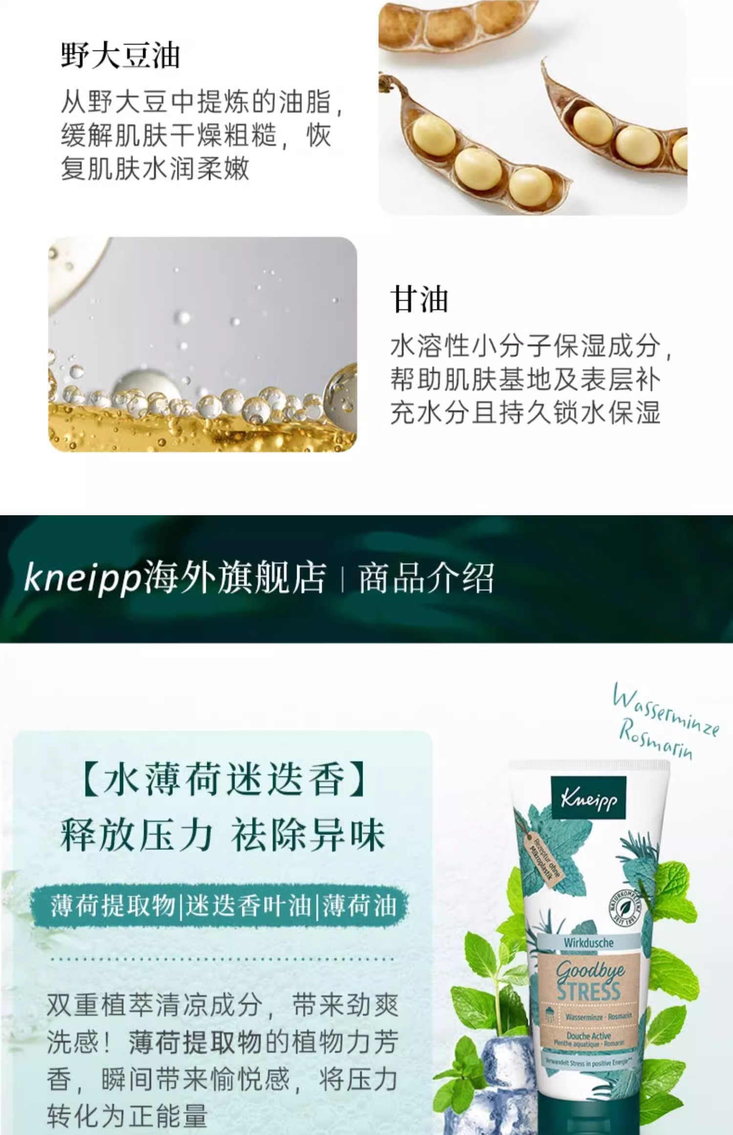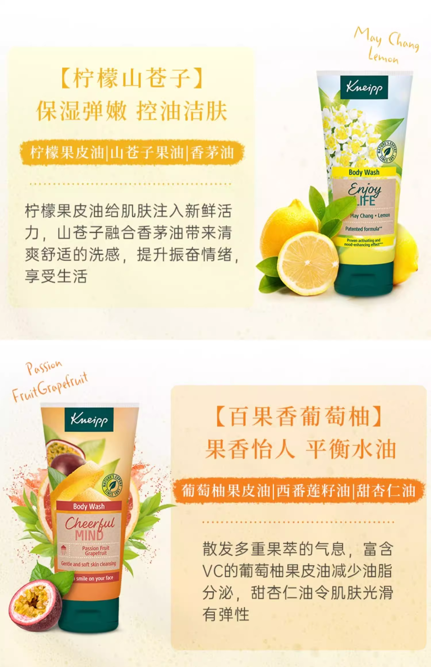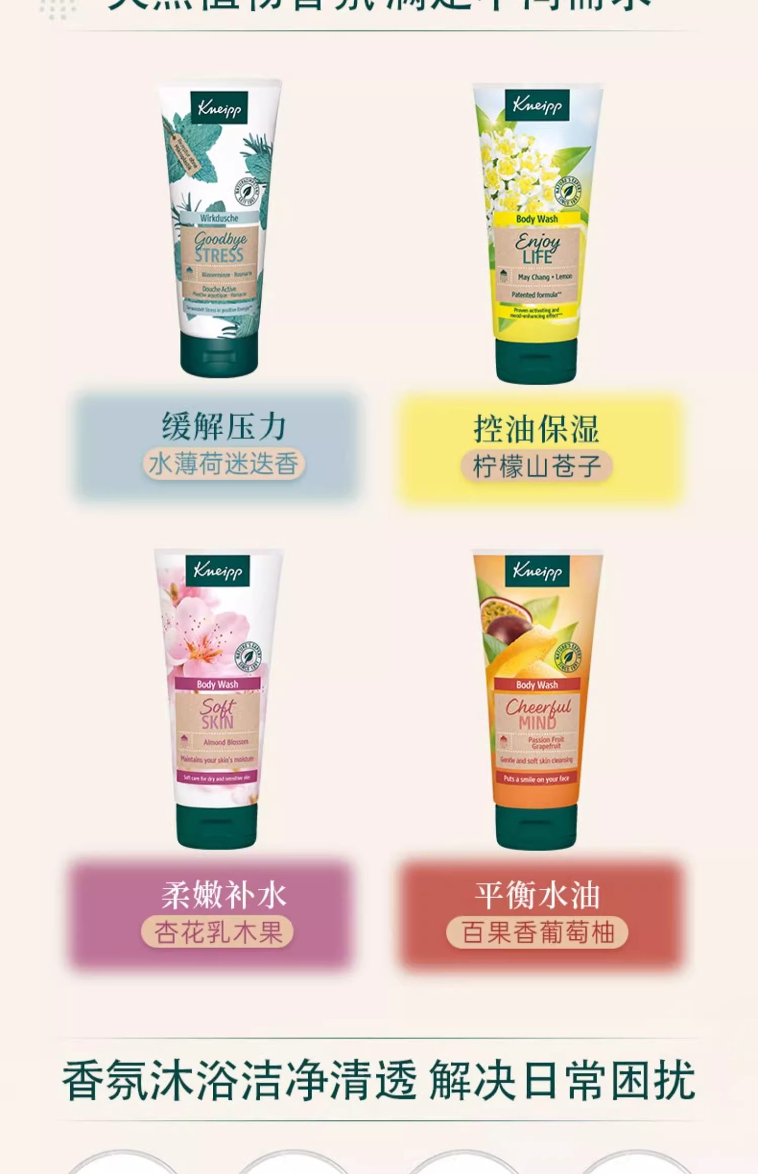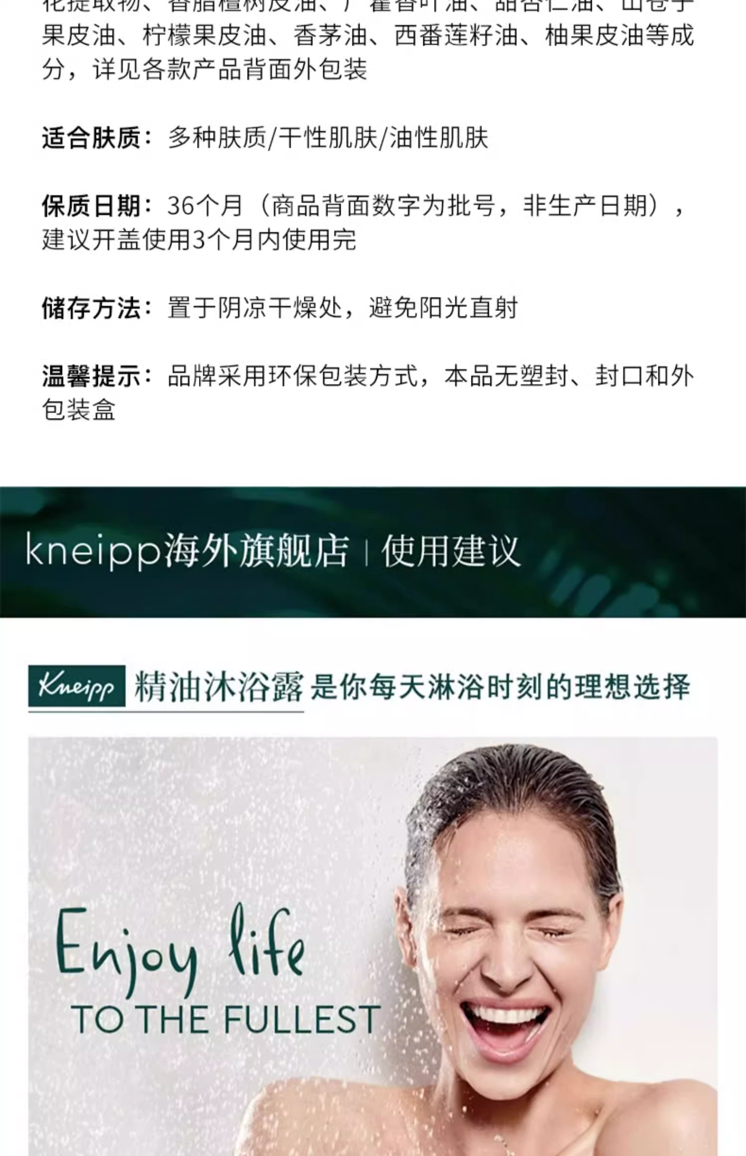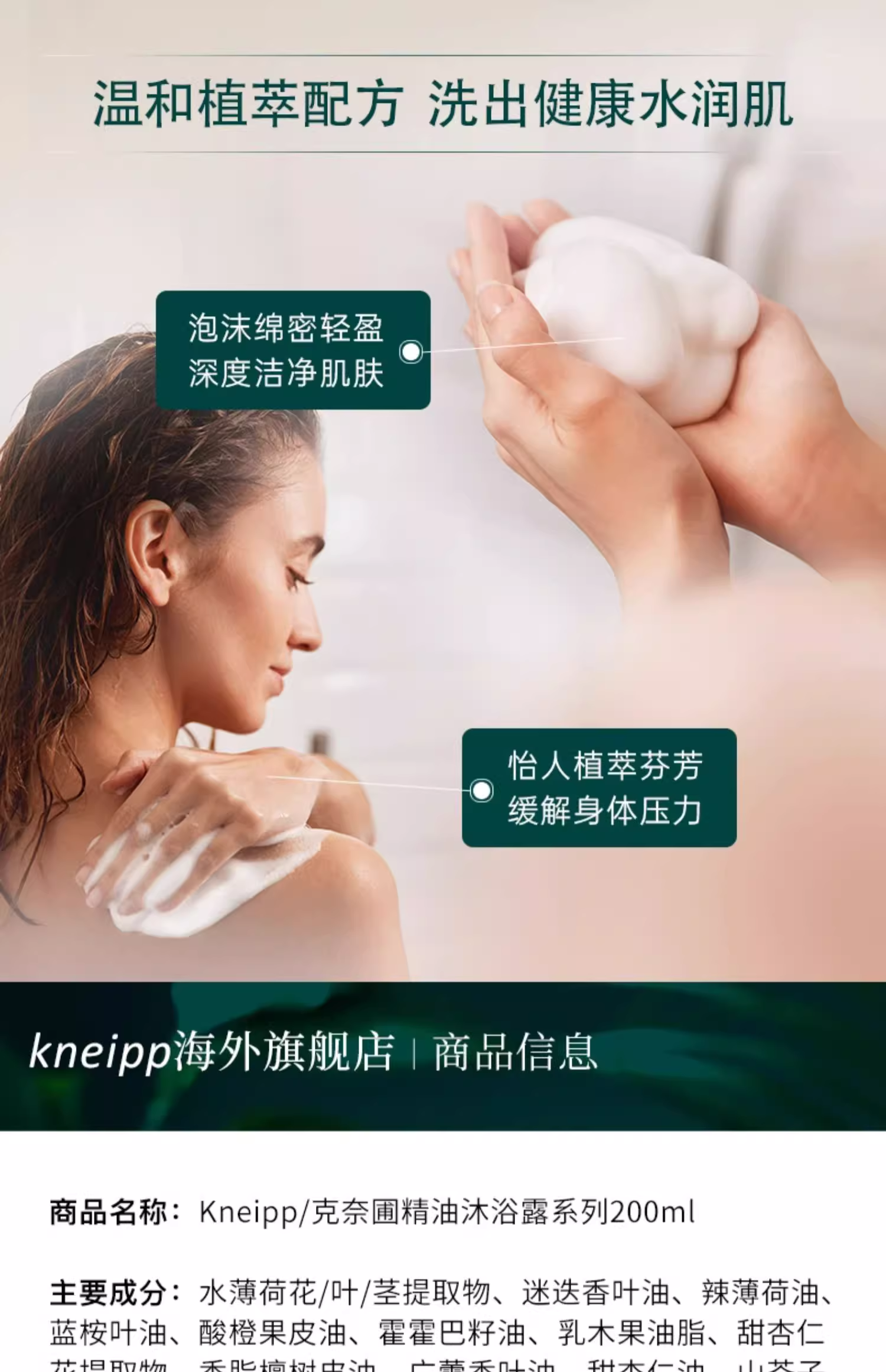 【章小蕙专享】德国Kneipp克奈圃精油沐浴露天然植物持久留香保湿滋润清洁200ml*2支装