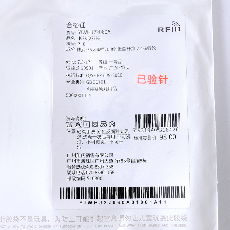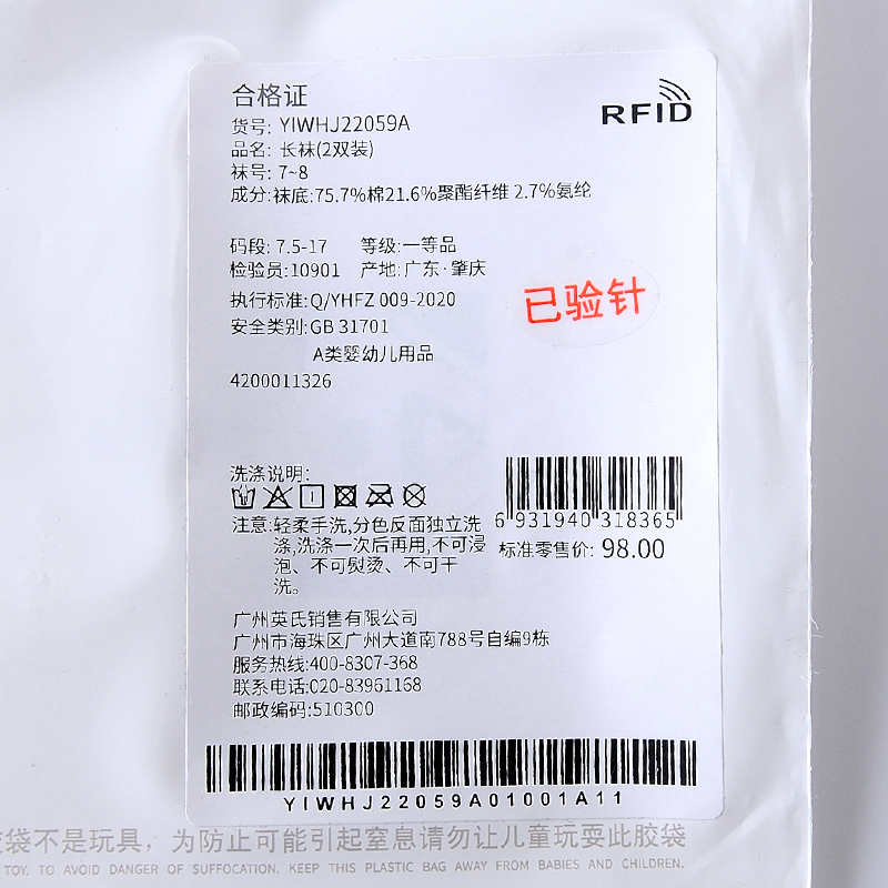 英氏2022春季新款男女童花边膝上长筒袜子长袜YIWHJ22059A YIWHJ22060A