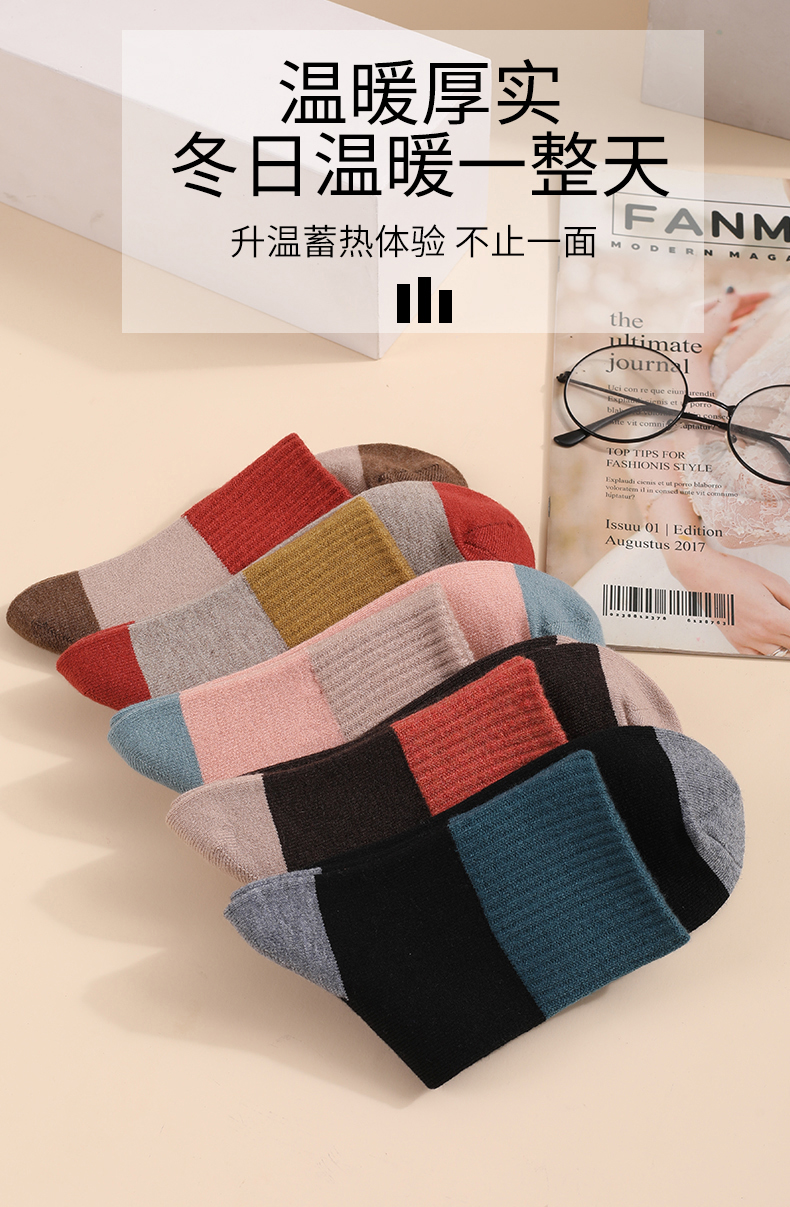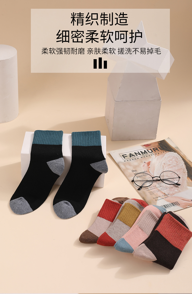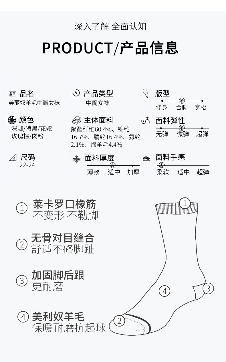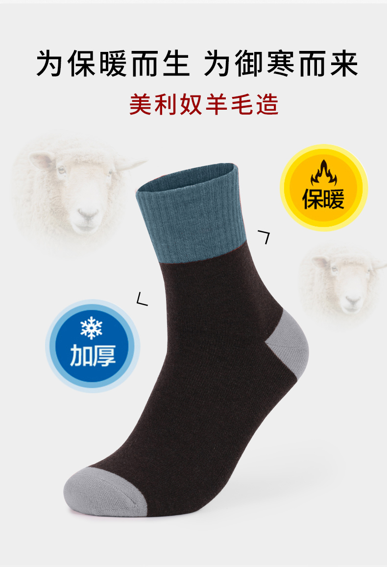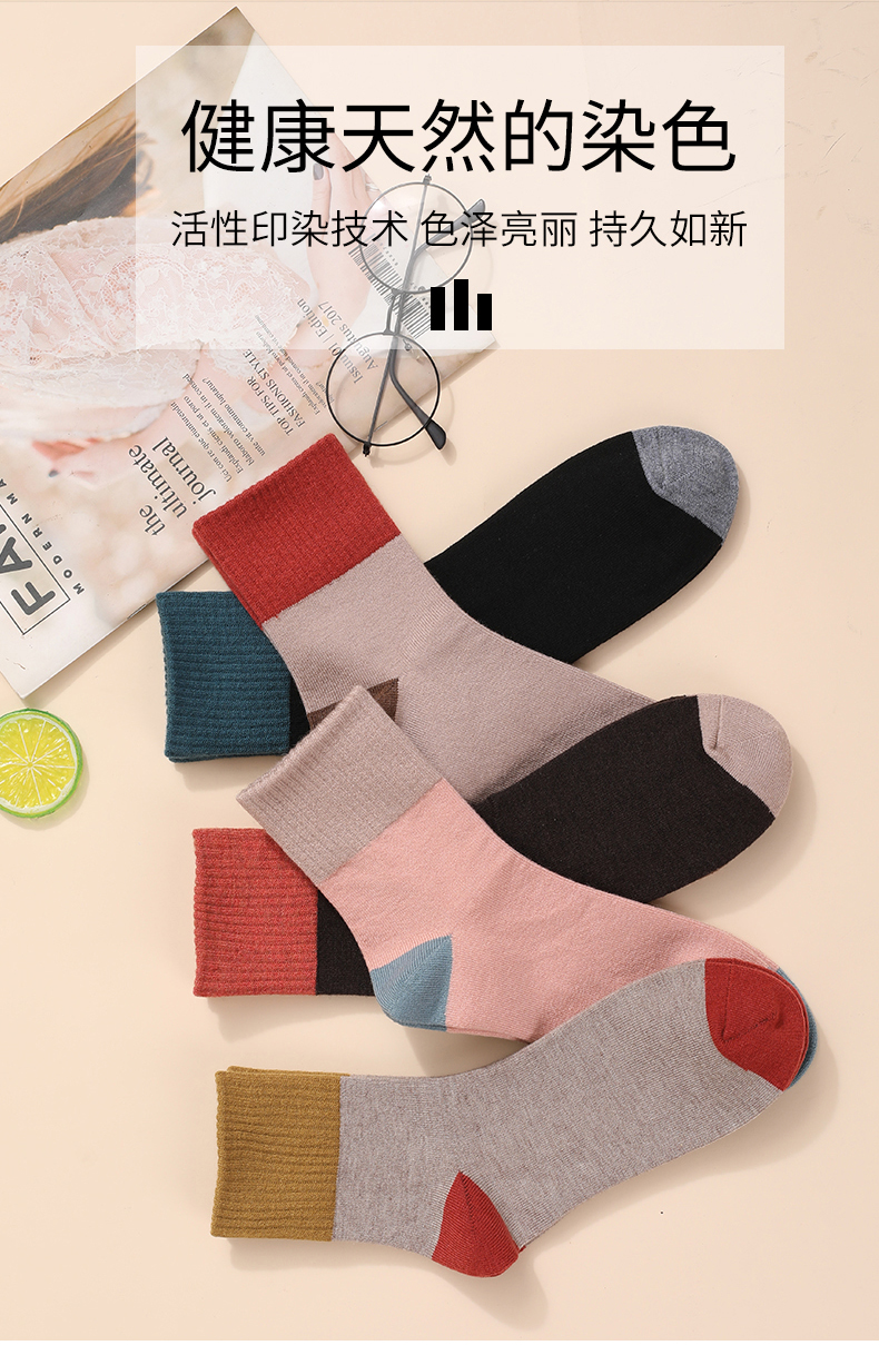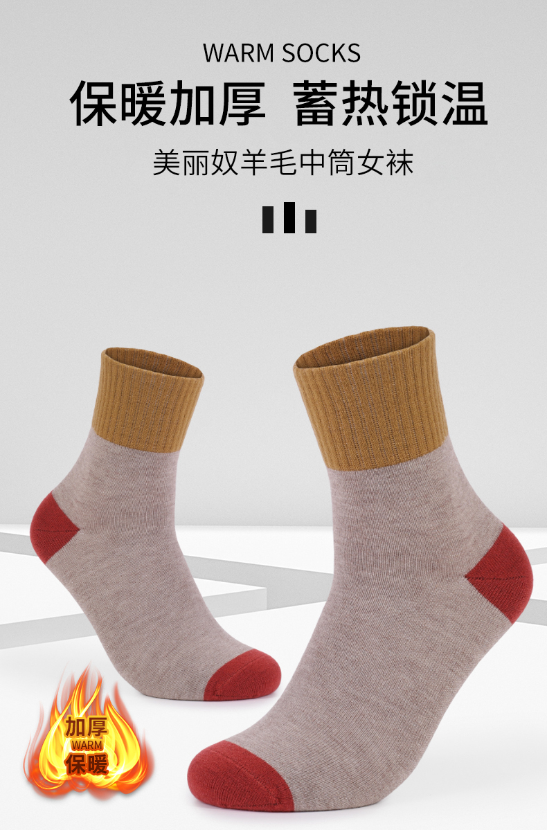 洁丽雅4双装美丽奴羊毛中筒女袜亲肤保暖简约柔软舒适袜子女