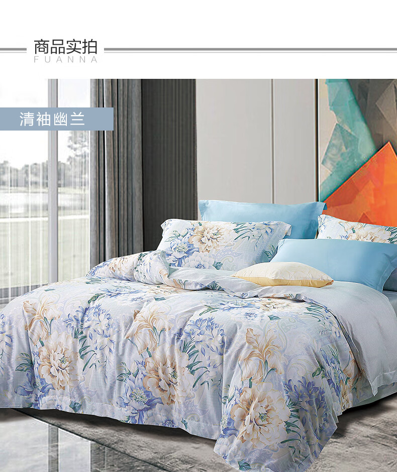 【纯棉】富安娜(FUANNA)床上用品纯棉床单四件套清袖幽兰203*229cm XHR