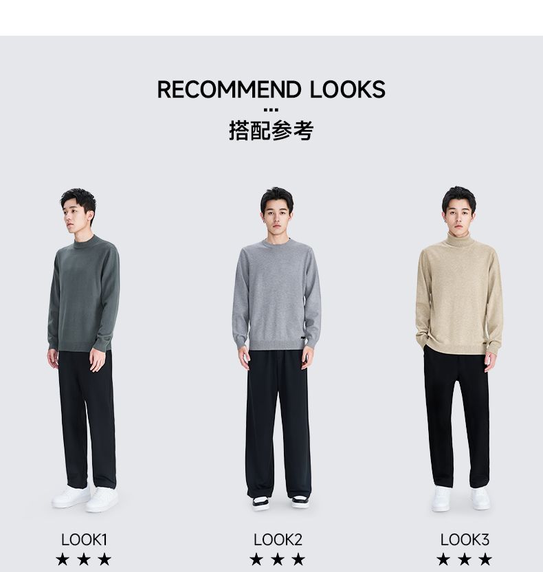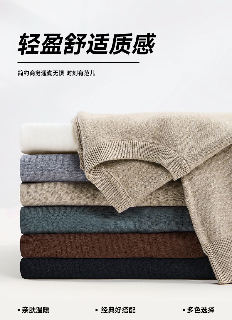 回力毛衣男2025春秋新款圆领半高领毛线衣保暖内搭针织黑色打底衫