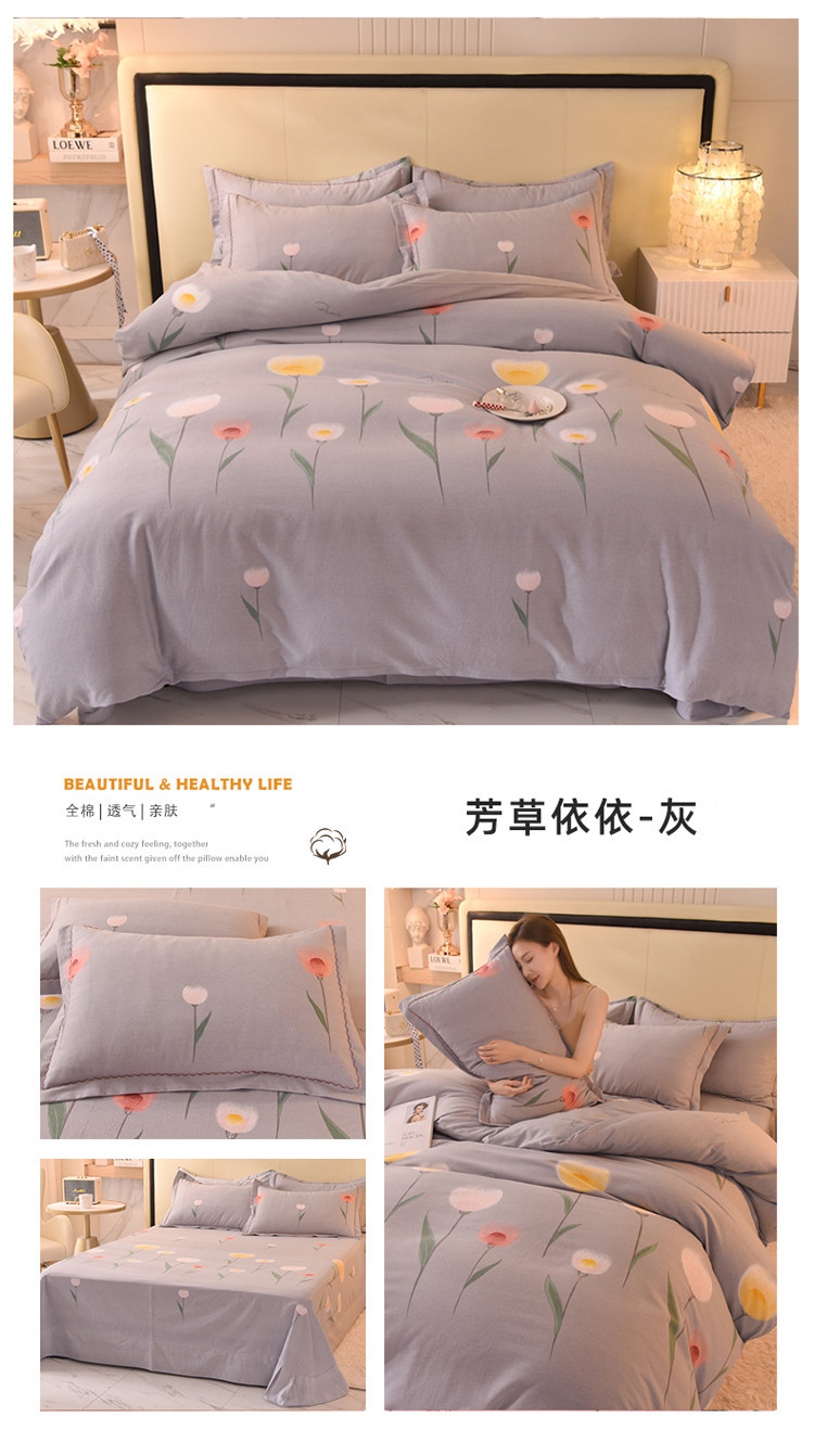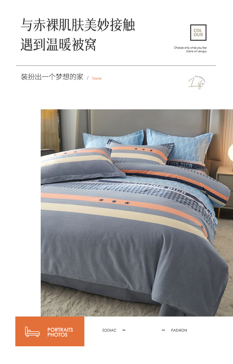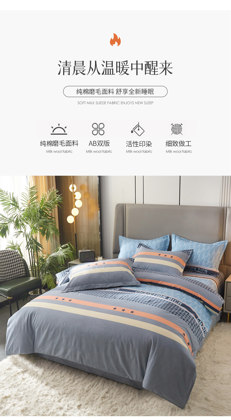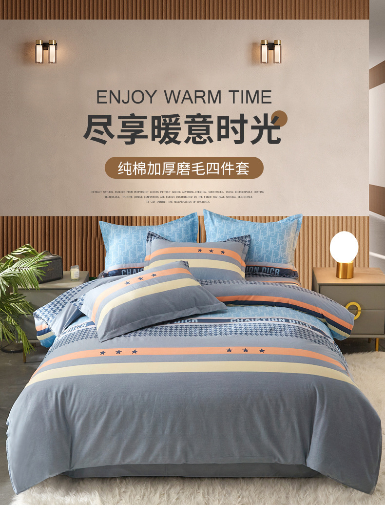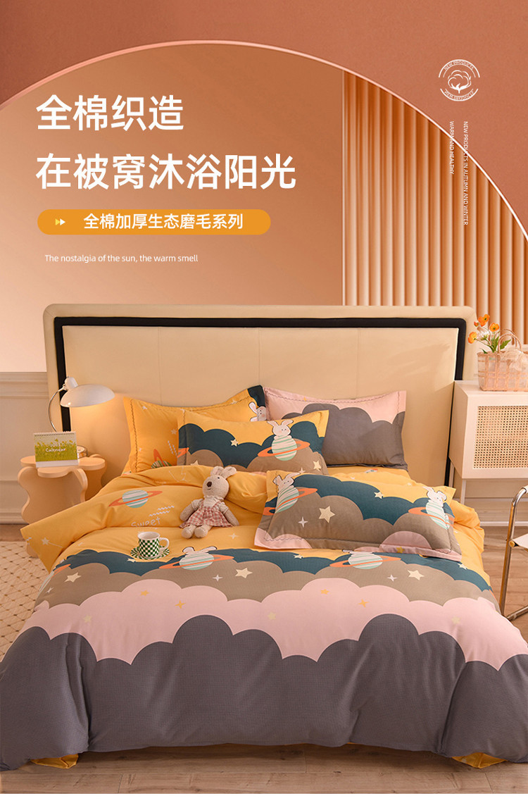 【60支纯棉加厚生态磨毛四件套】升级喷气面料 简约风秋冬三件套 全棉织造 温暖居家好物 在被窝沐浴阳光