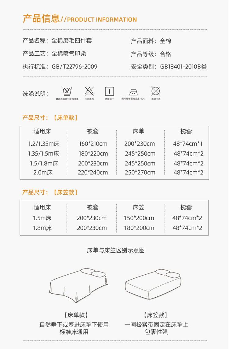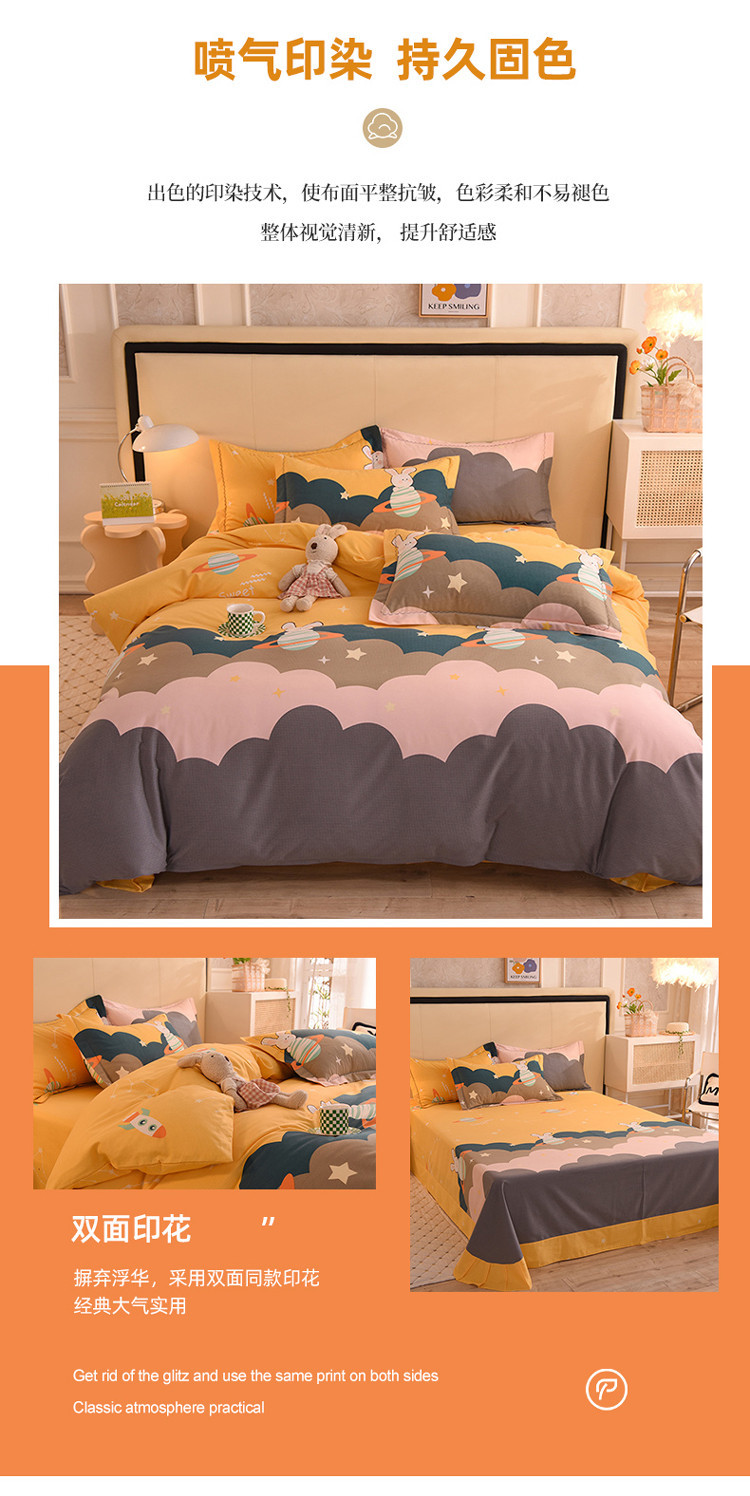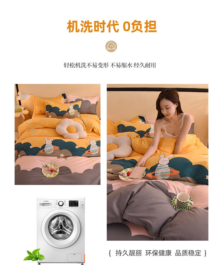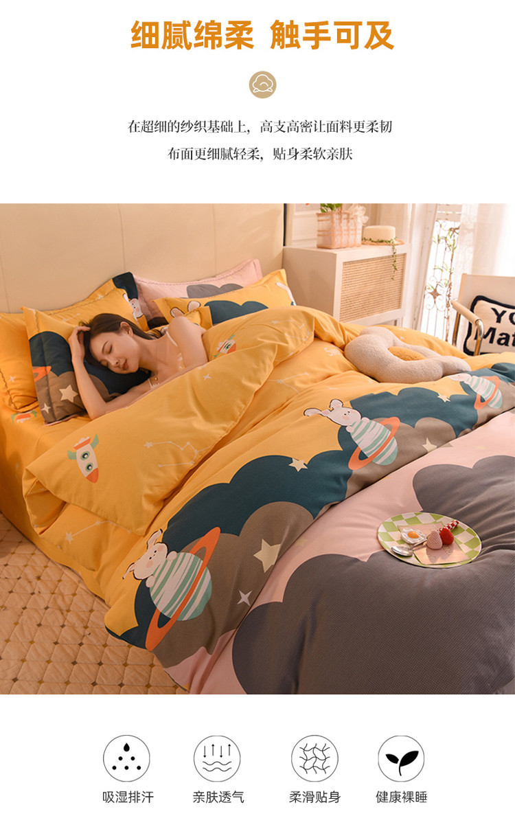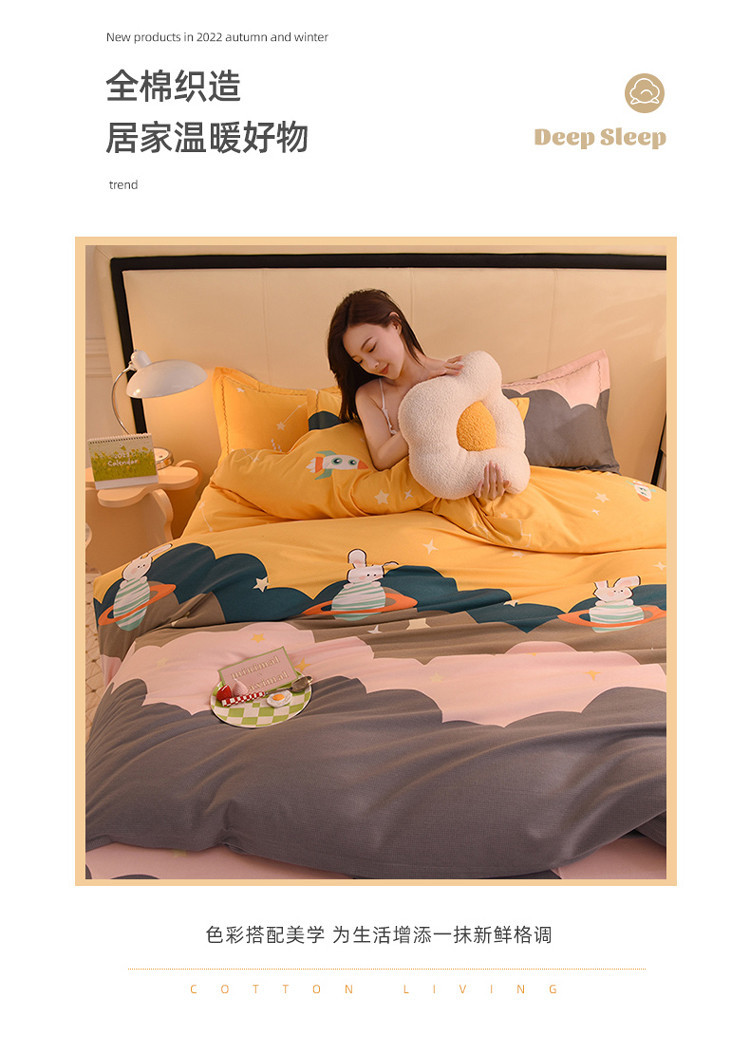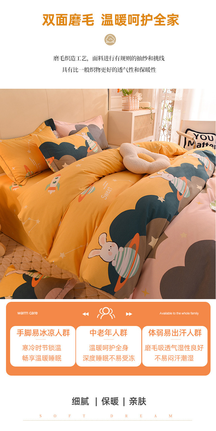 【60支纯棉加厚生态磨毛四件套】升级喷气面料 简约风秋冬三件套 全棉织造 温暖居家好物 在被窝沐浴阳光