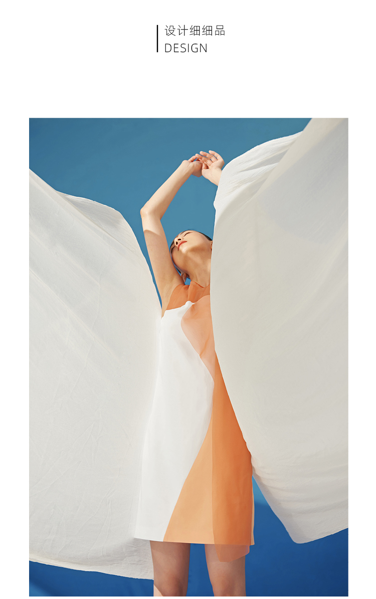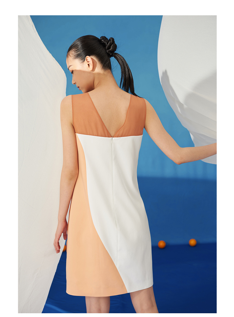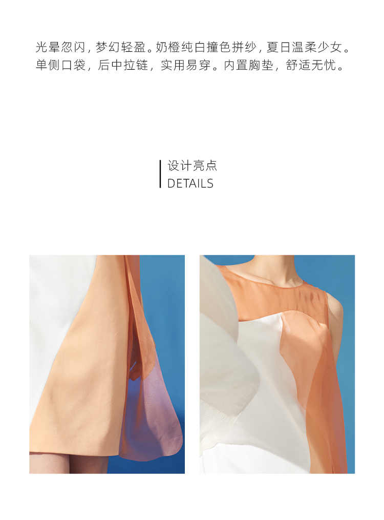 【橘子海】少女感多层拼纱撞色遮肉直筒连衣裙/0000715